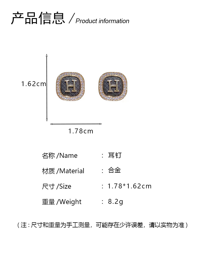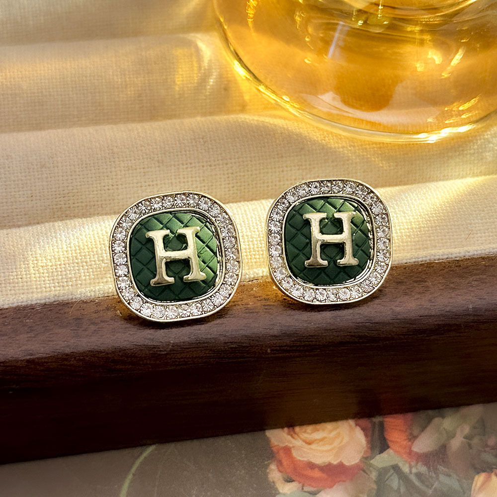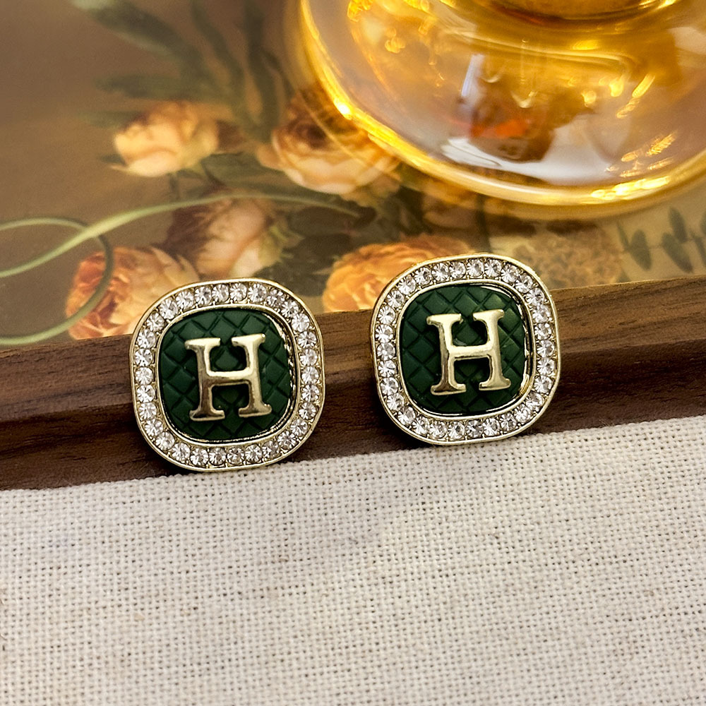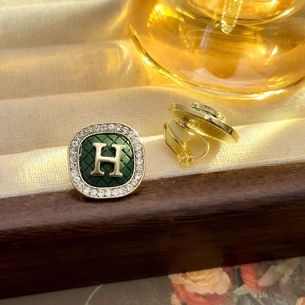 Pendientes de letras H geométricas con incrustaciones de diamantes de fragancia pequeña, pendientes de alta calidad indoloros sin agujeros para las orejas, pendientes de temperamento de moda de lujo ligero