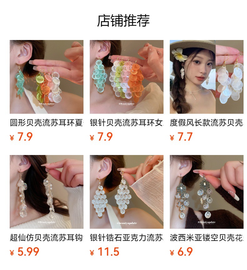 Pendientes de borla de concha geométrica redonda, estilo de vacaciones junto al mar, gancho para la oreja, pendientes de todo fósforo de moda, sentido de clase alta de nicho