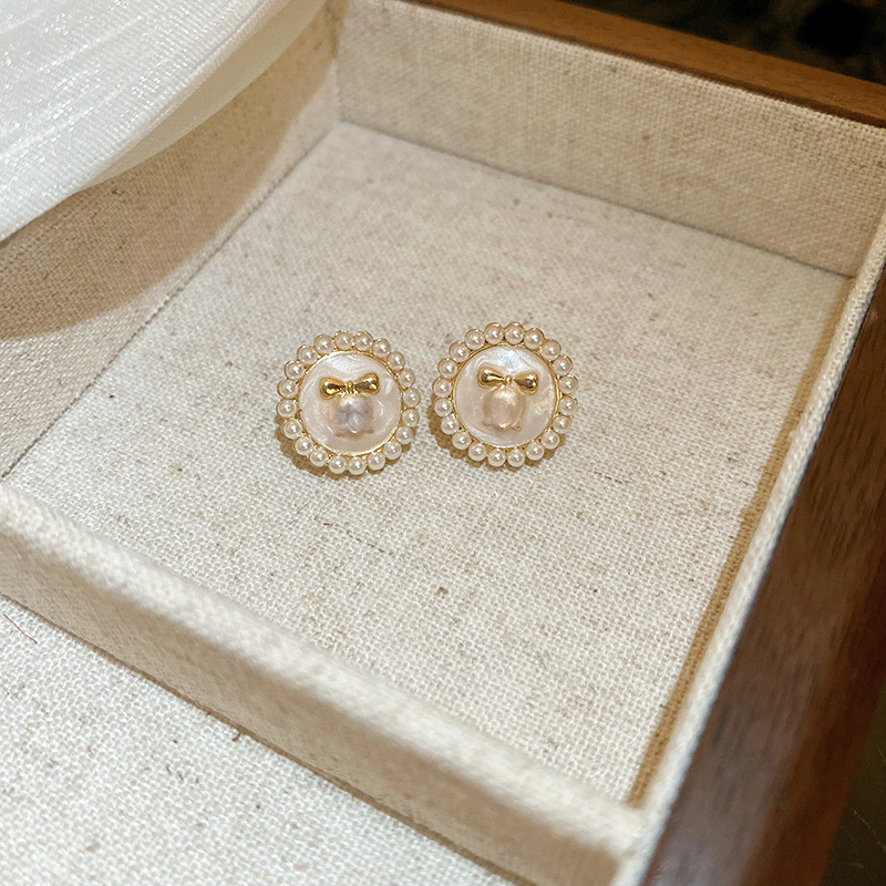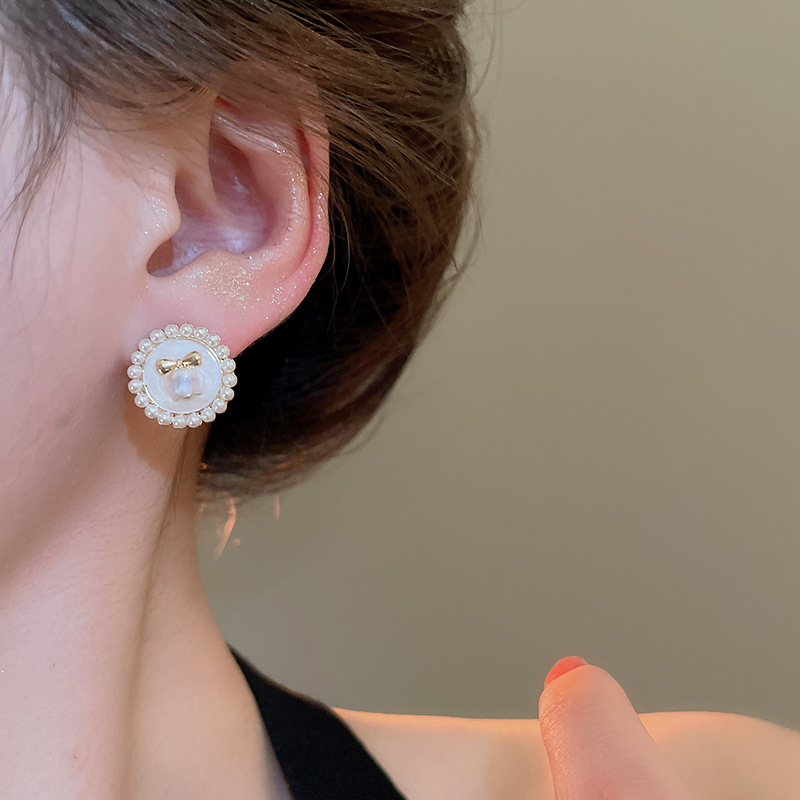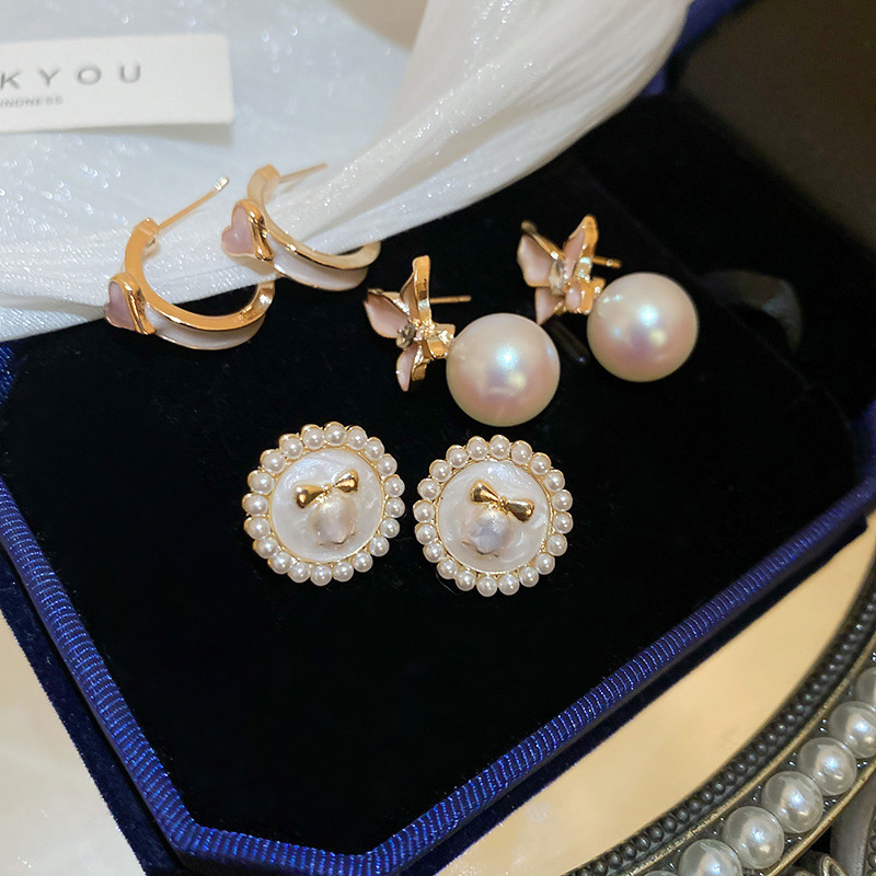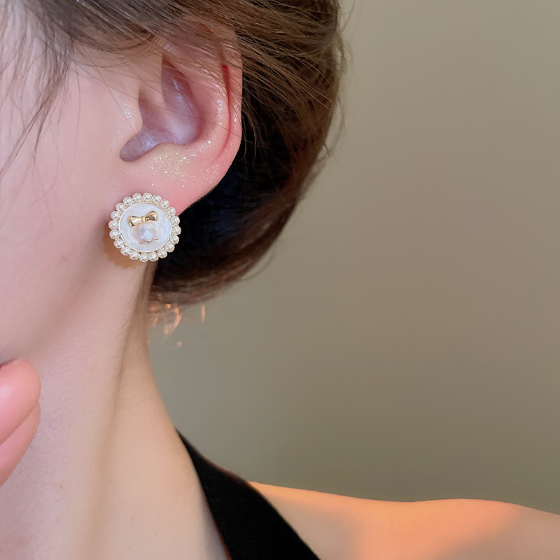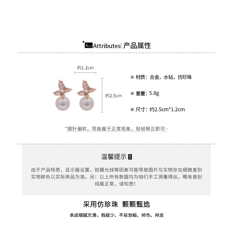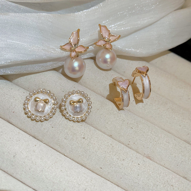 Aguja de plata Pendientes de perlas de flores de aceite que gotea rosa Pendientes de moda retro francesa súper hada Pendientes de lujo ligero de alta gama Mujeres