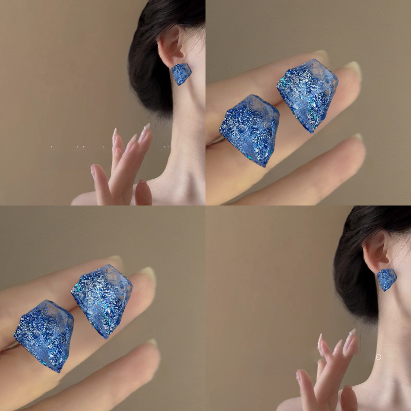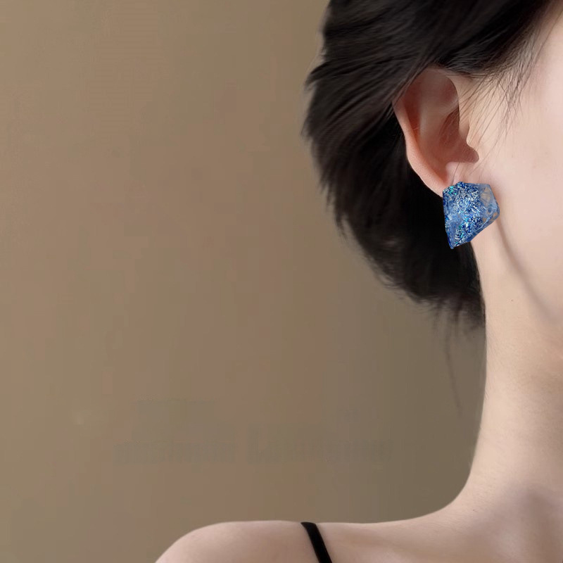 Pendientes de resina irregular de aguja de plata Pendientes de diseño de nicho de personalidad Pendientes de sentido avanzado de temperamento simple de moda Mujeres