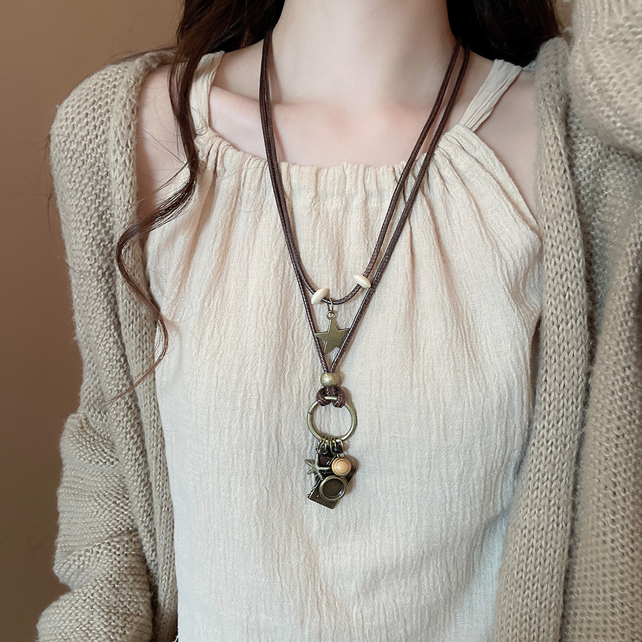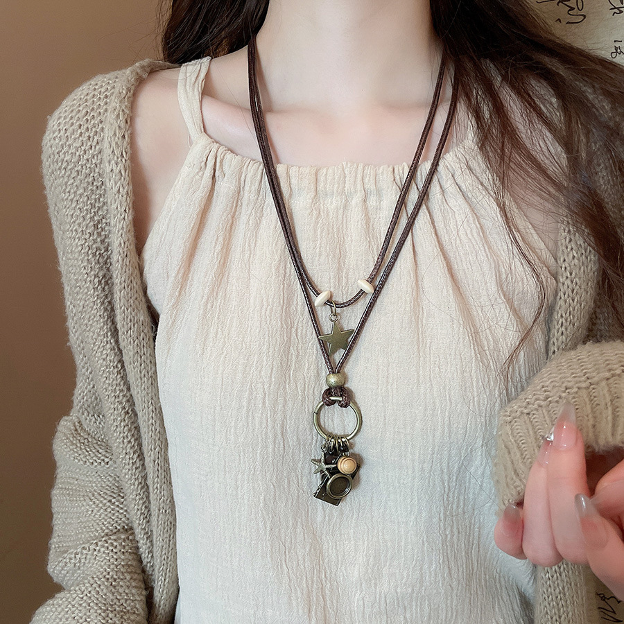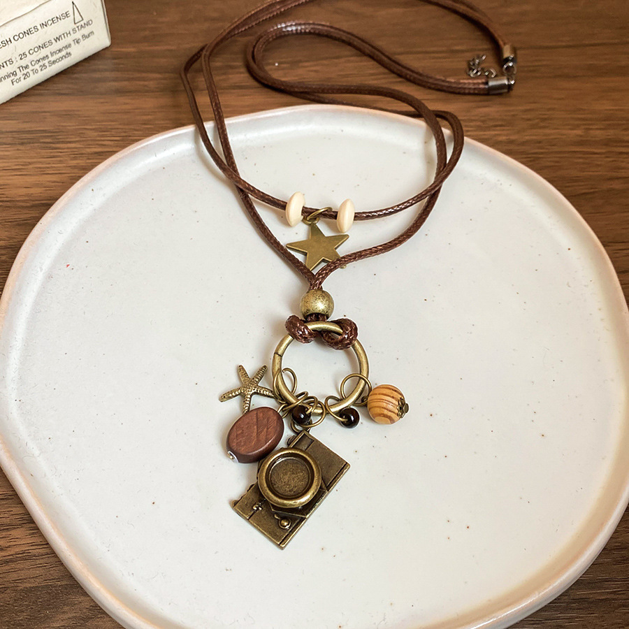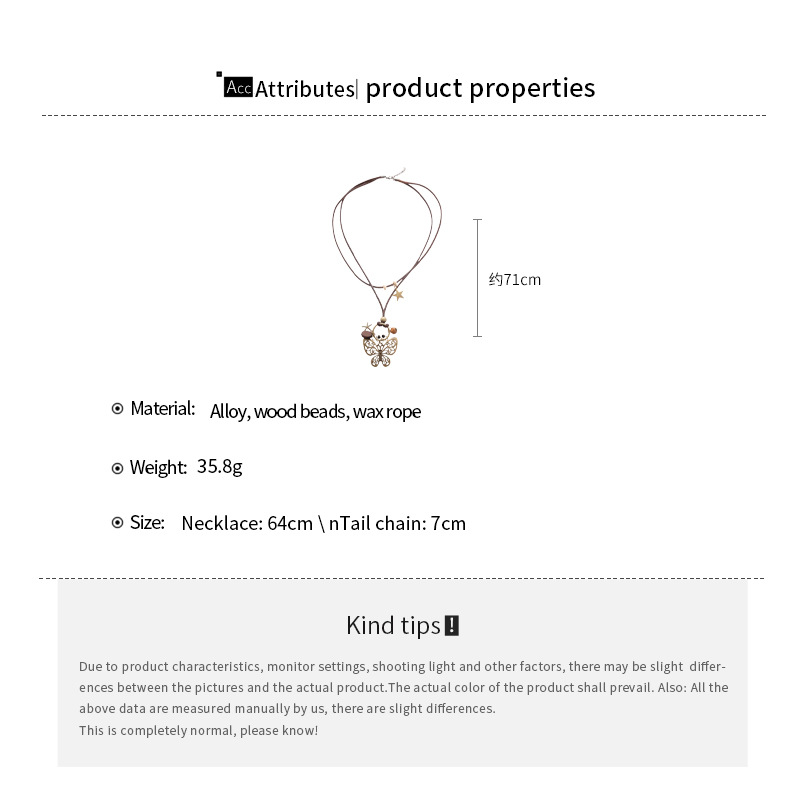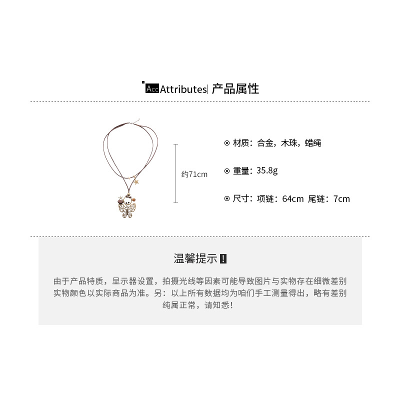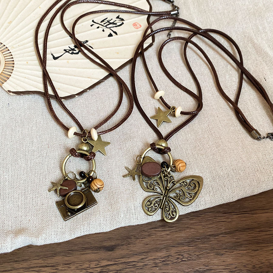 Cuerda de cera, cuentas de madera, colgante de mariposa con cuentas, nuevo estilo chino, temperamento retro, cadena de clavícula, lujo ligero, decoración de estilo de alta gama, mujer