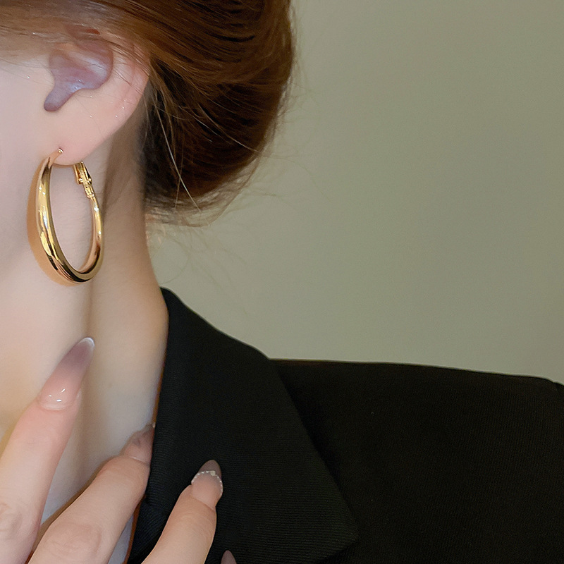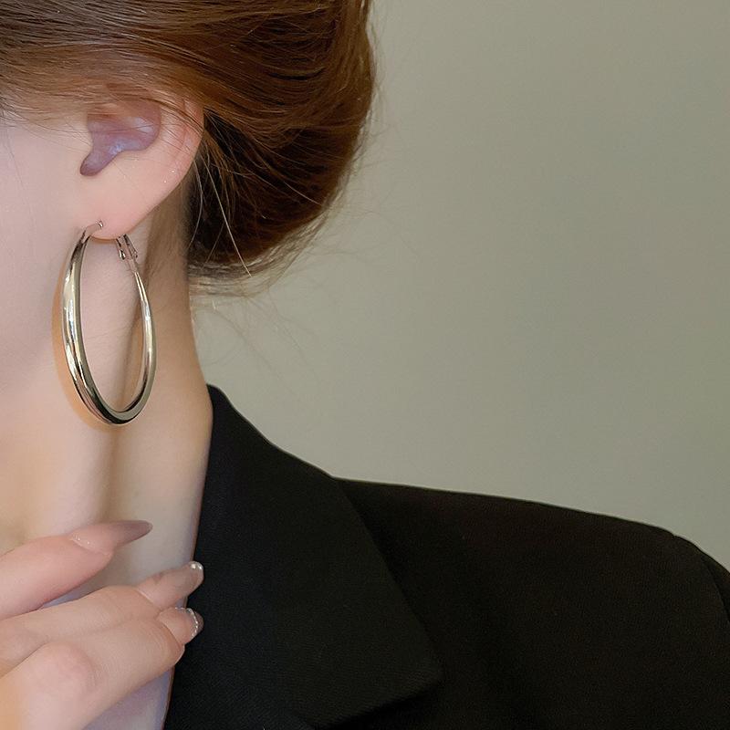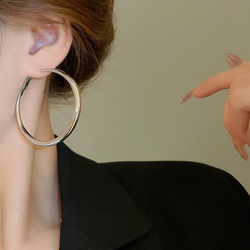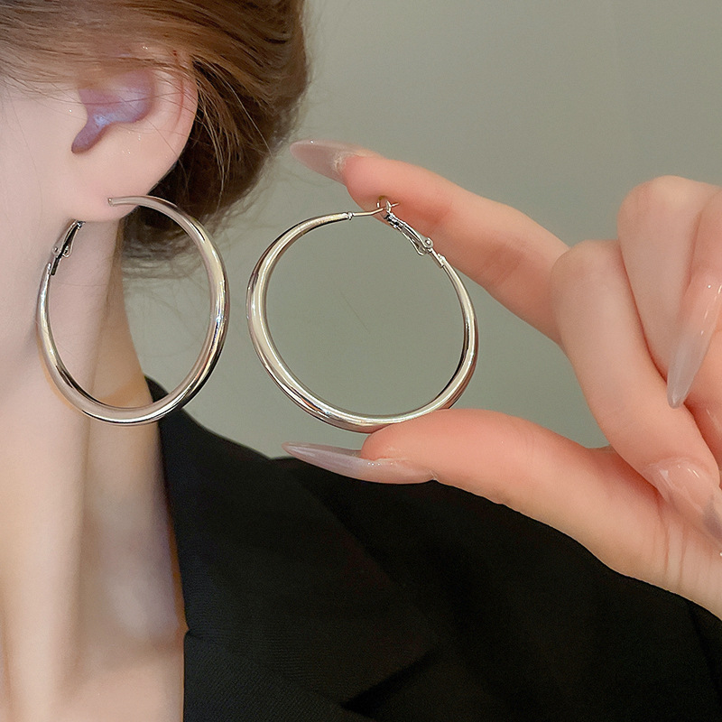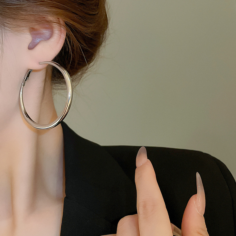 Pendientes de anillo de sentido de alta calidad transfronterizos de aguja de plata Pendientes de todo fósforo de lujo ligero europeo y americano Pendientes de sentido de diseño de moda simple