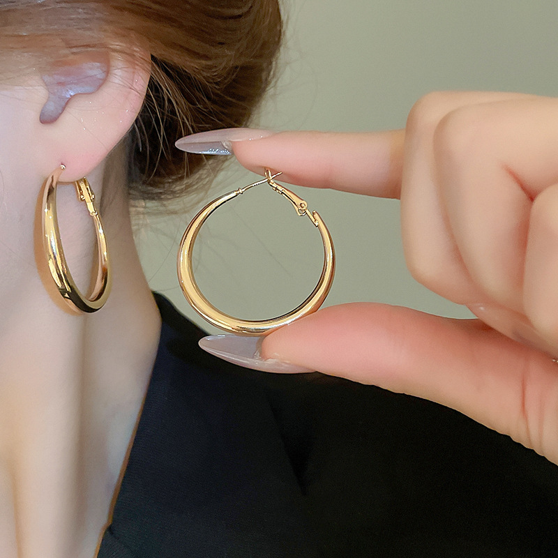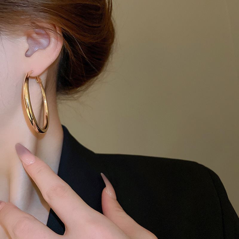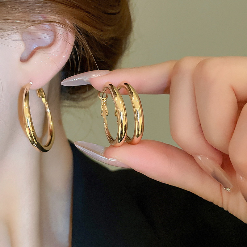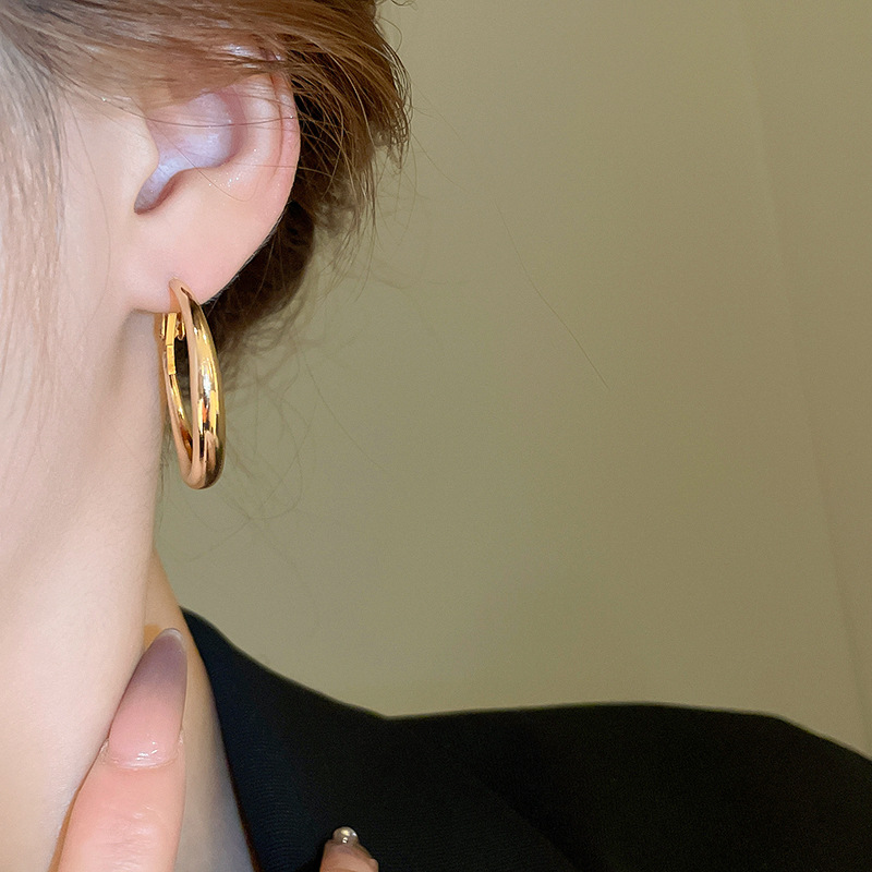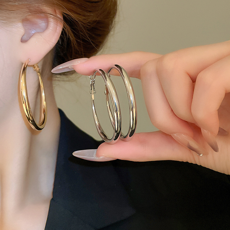 Pendientes de anillo de sentido de alta calidad transfronterizos de aguja de plata Pendientes de todo fósforo de lujo ligero europeo y americano Pendientes de sentido de diseño de moda simple