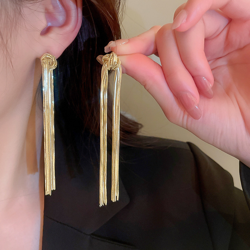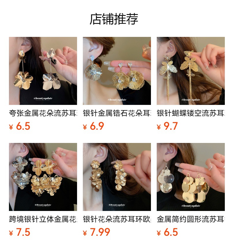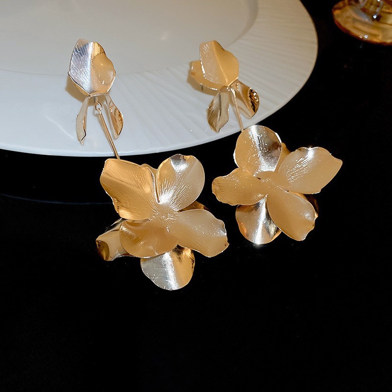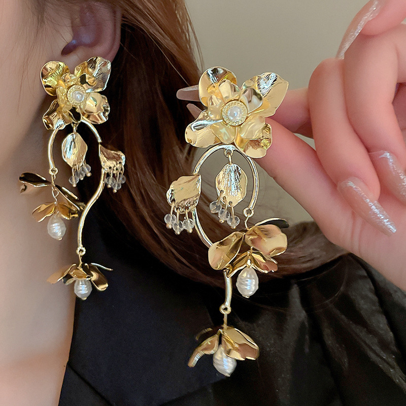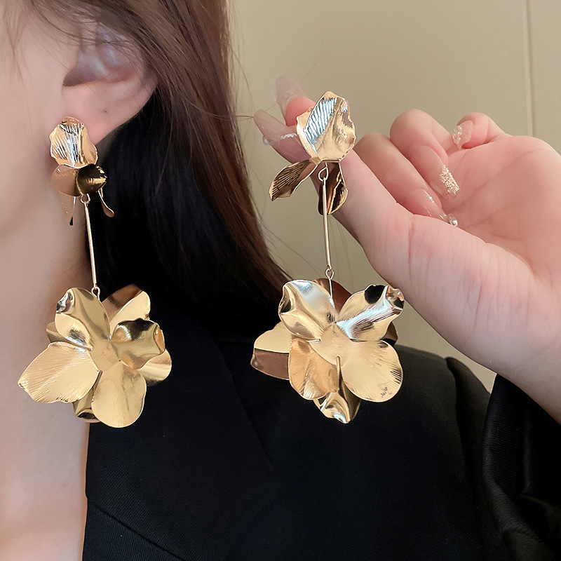 Pendientes de borla de flor de metal con aguja de plata Pendientes de temperamento de moda Pendientes exagerados de nicho europeo y americano
