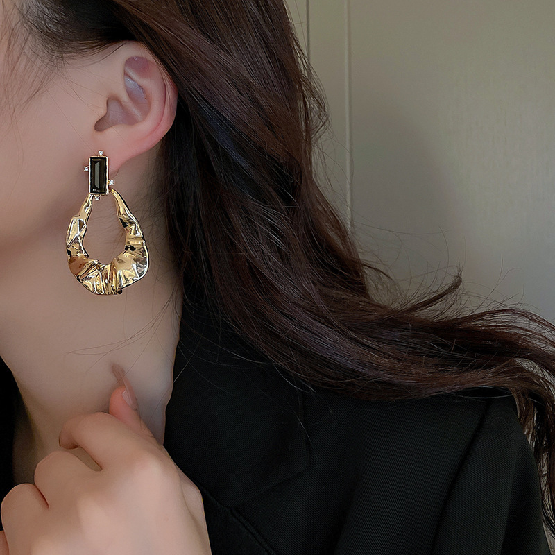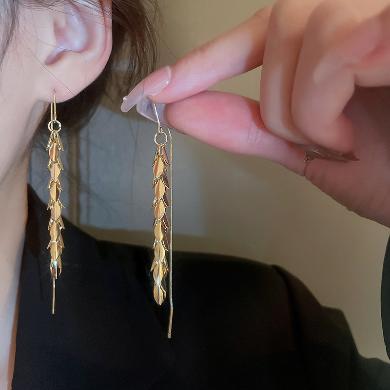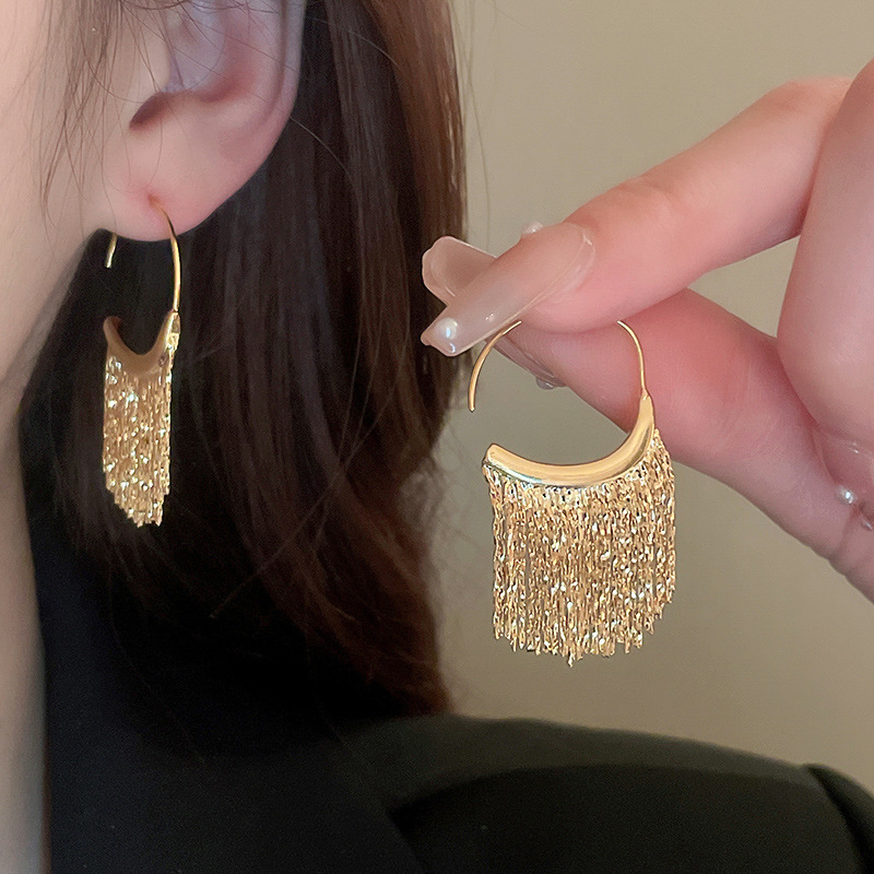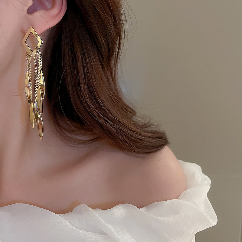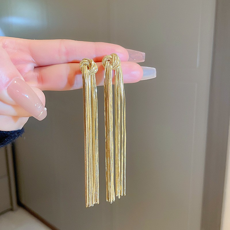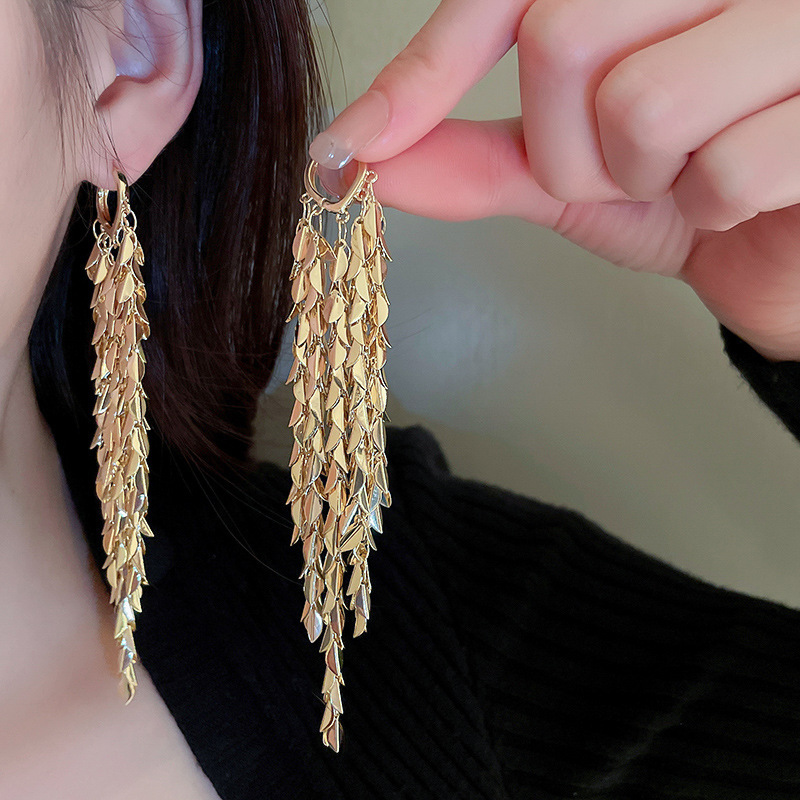 Pendientes de borla de flor de metal con aguja de plata Pendientes de temperamento de moda Pendientes exagerados de nicho europeo y americano