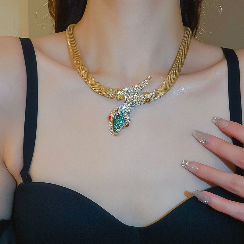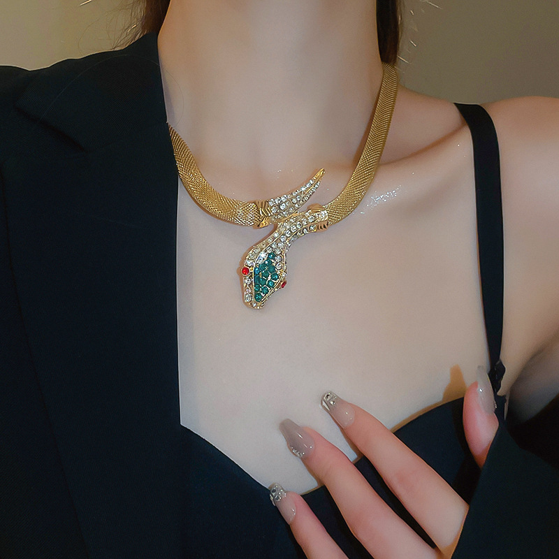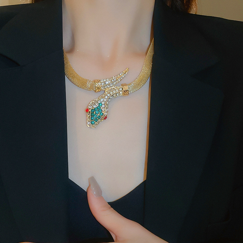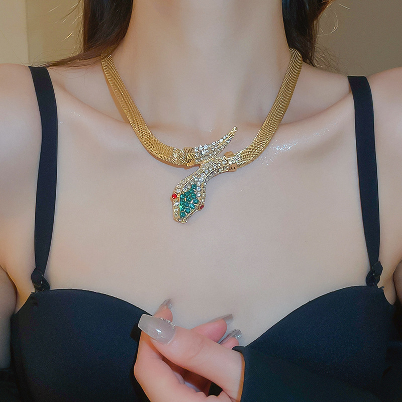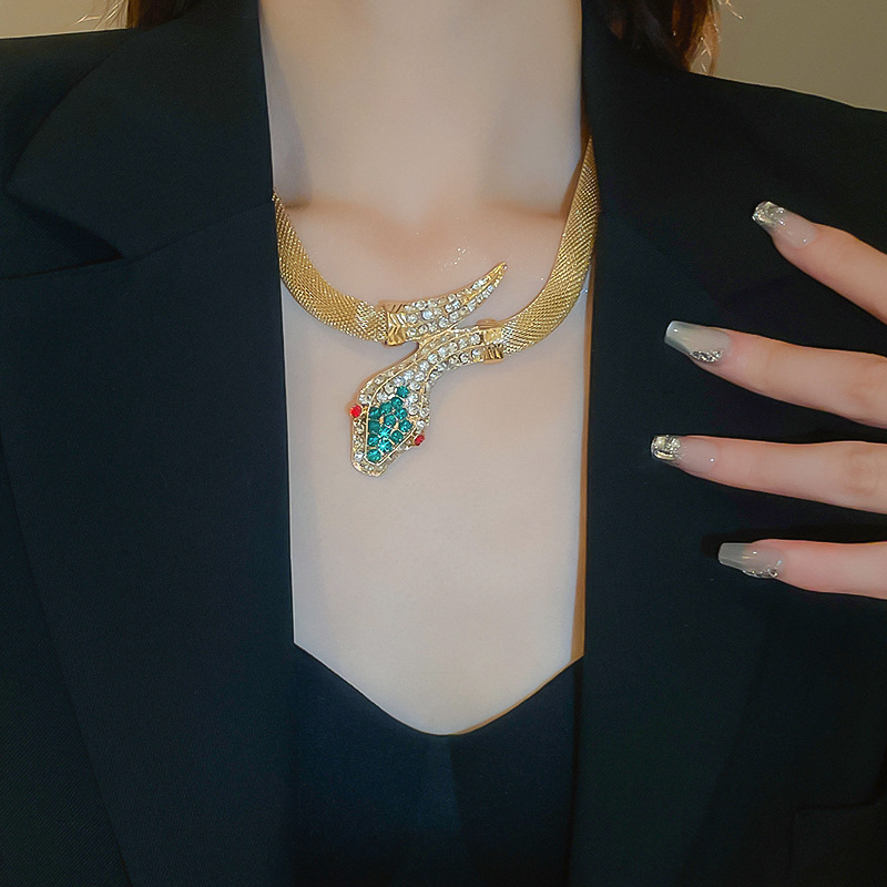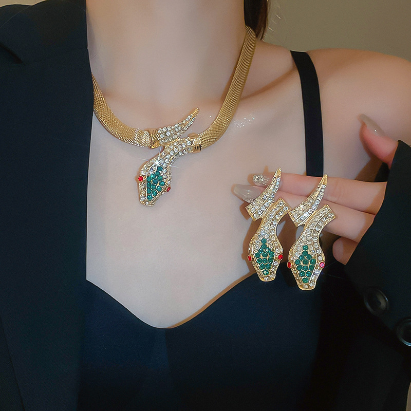 Conjunto de pendientes de collar de serpiente de diamantes transfronterizos, cadena de clavícula vintage vintage, accesorios de joyería de alta gama de nicho