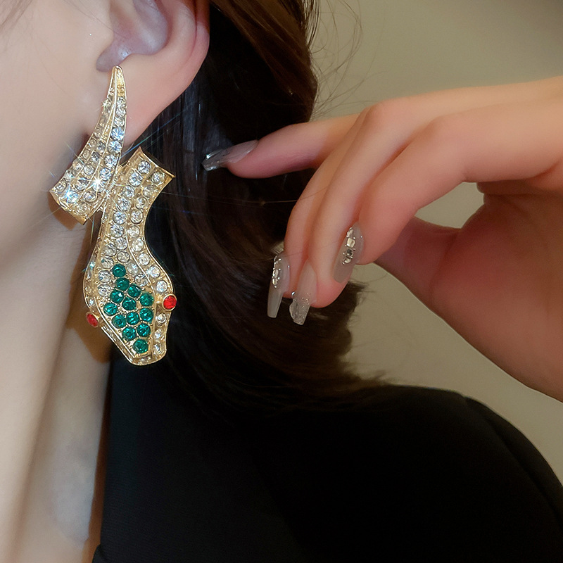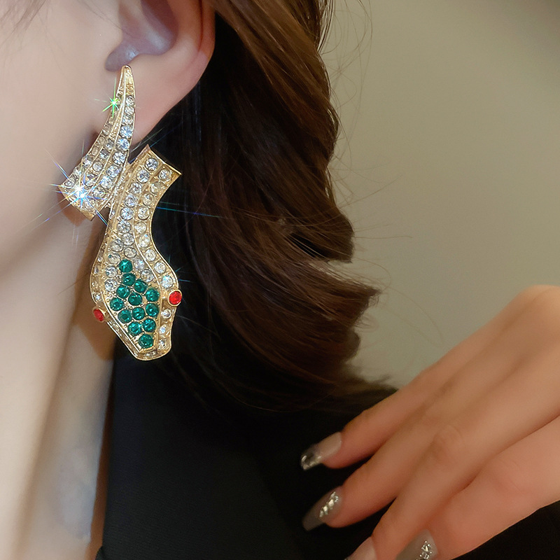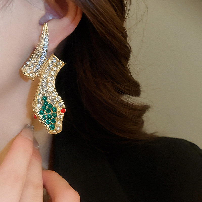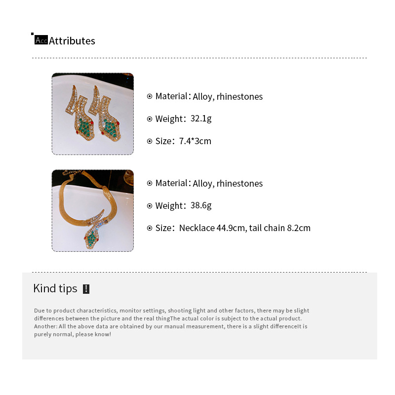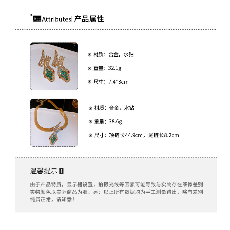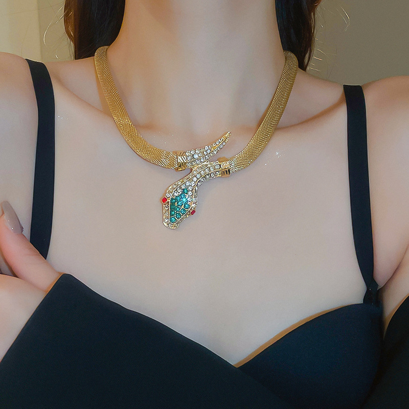 Conjunto de pendientes de collar de serpiente de diamantes transfronterizos, cadena de clavícula vintage vintage, accesorios de joyería de alta gama de nicho