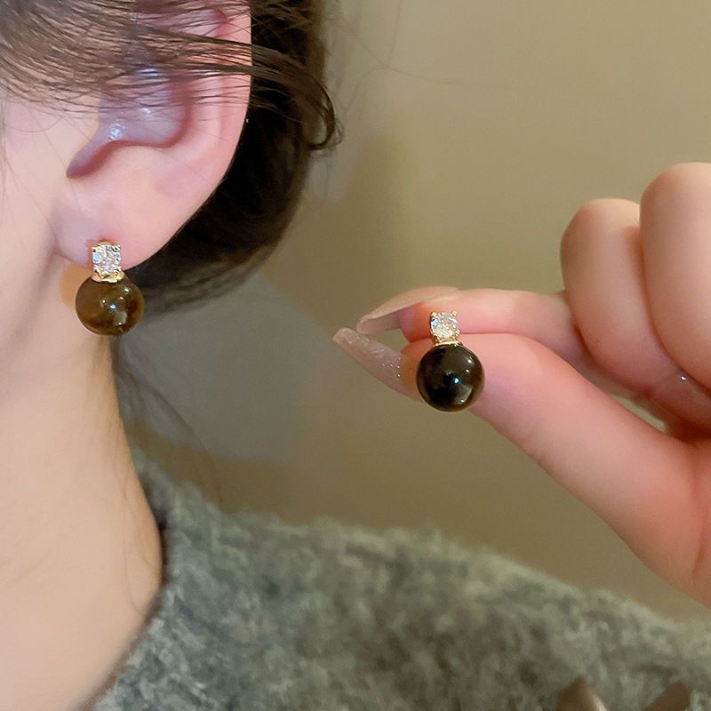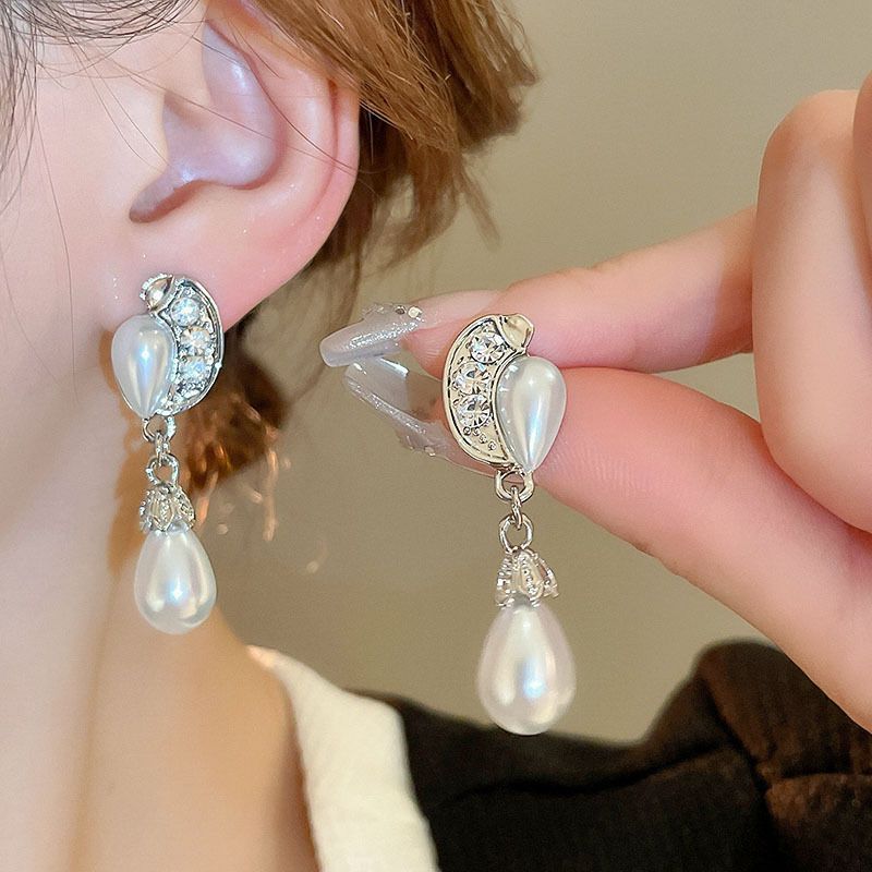 Pendientes de perlas de tendencia de moda de aguja de plata Pendientes pequeños y exquisitos de todo fósforo Pendientes de alta gama de lujo ligero al por mayor mujeres