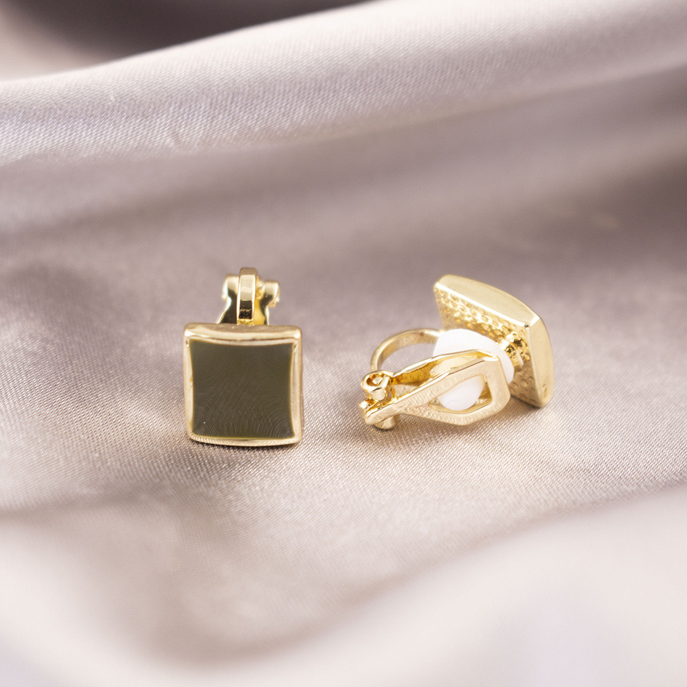 Pinza para la oreja indolora cuadrada con goteo de aceite simple, sin perforaciones para la oreja, temperamento de nicho, pinza para la oreja triangular, sentido de diseño, pendientes de sentido avanzado, mujer