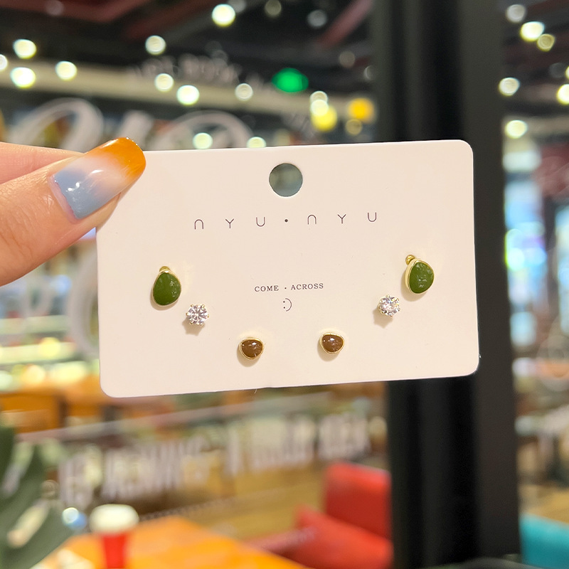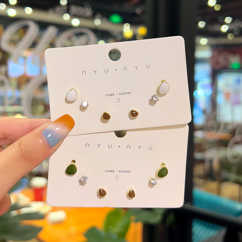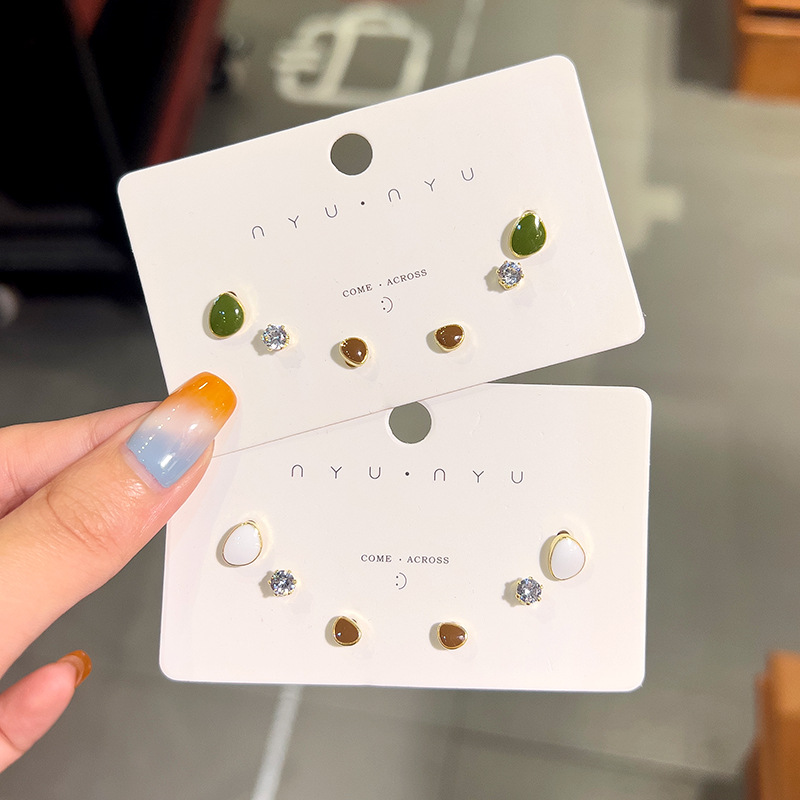 Pendientes frescos con aguja de plata que gotea aceite Pendientes perforados de alta gama de moda femenina Pendientes simples de tres piezas de nicho al por mayor