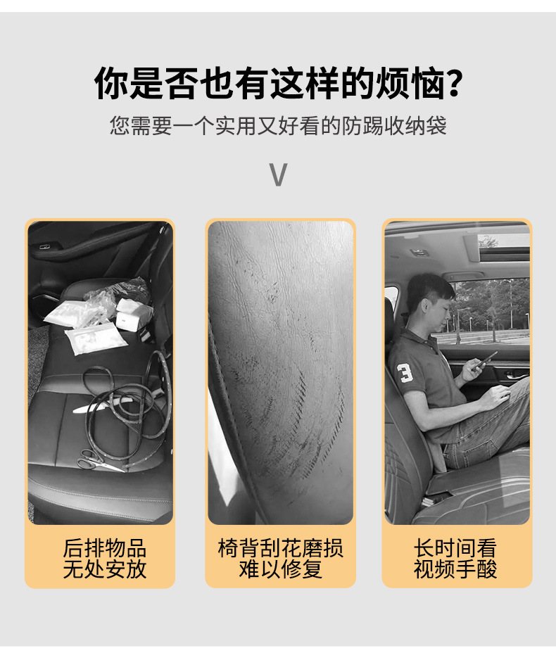 Bolsa de almacenamiento de tela oxford del coche bolsa de almacenamiento de asiento de coche de gran capacidad silla bolsa de almacenamiento trasera asiento trasero anti-kick