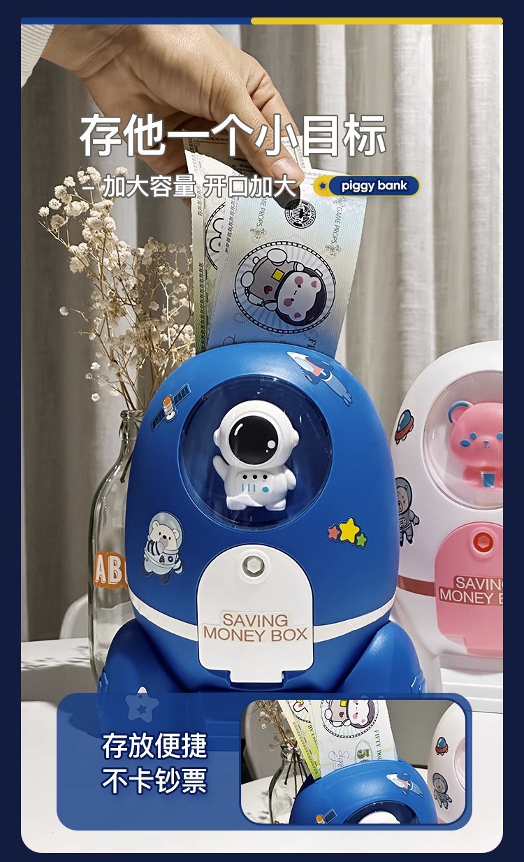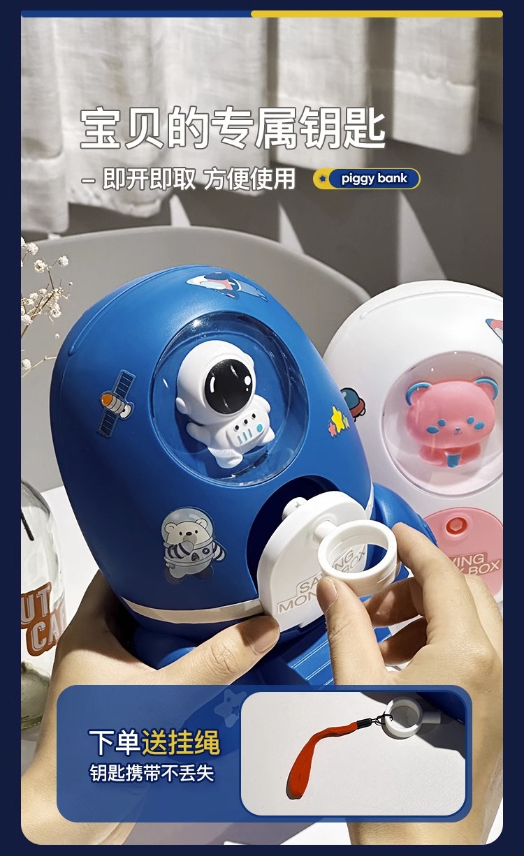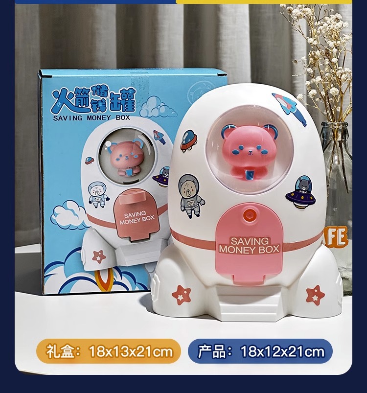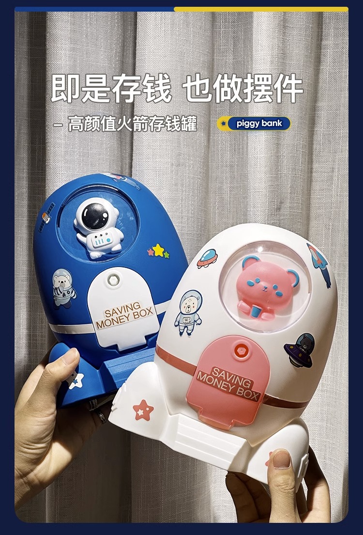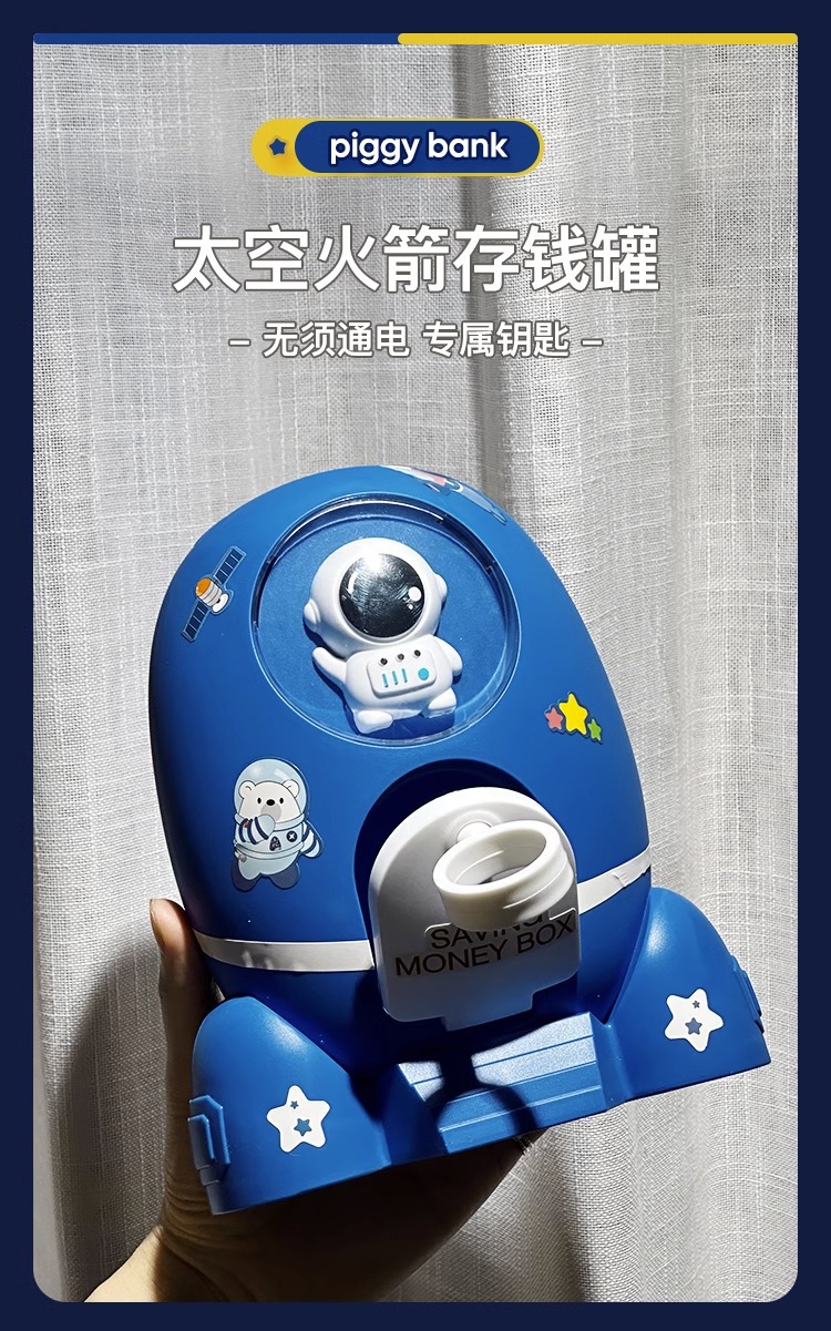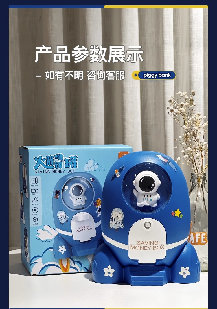 Los niños de dibujos animados spaceman cohete alcancía sólo puede entrar en la contraseña caja DIY regalo al por mayor