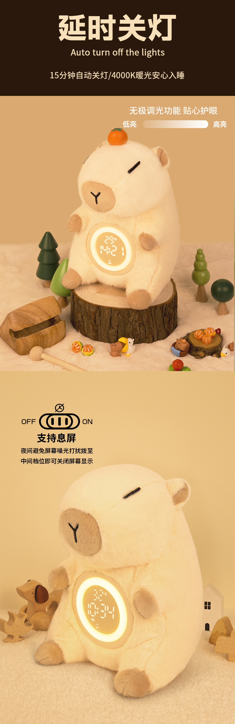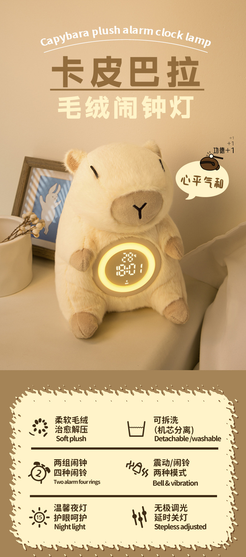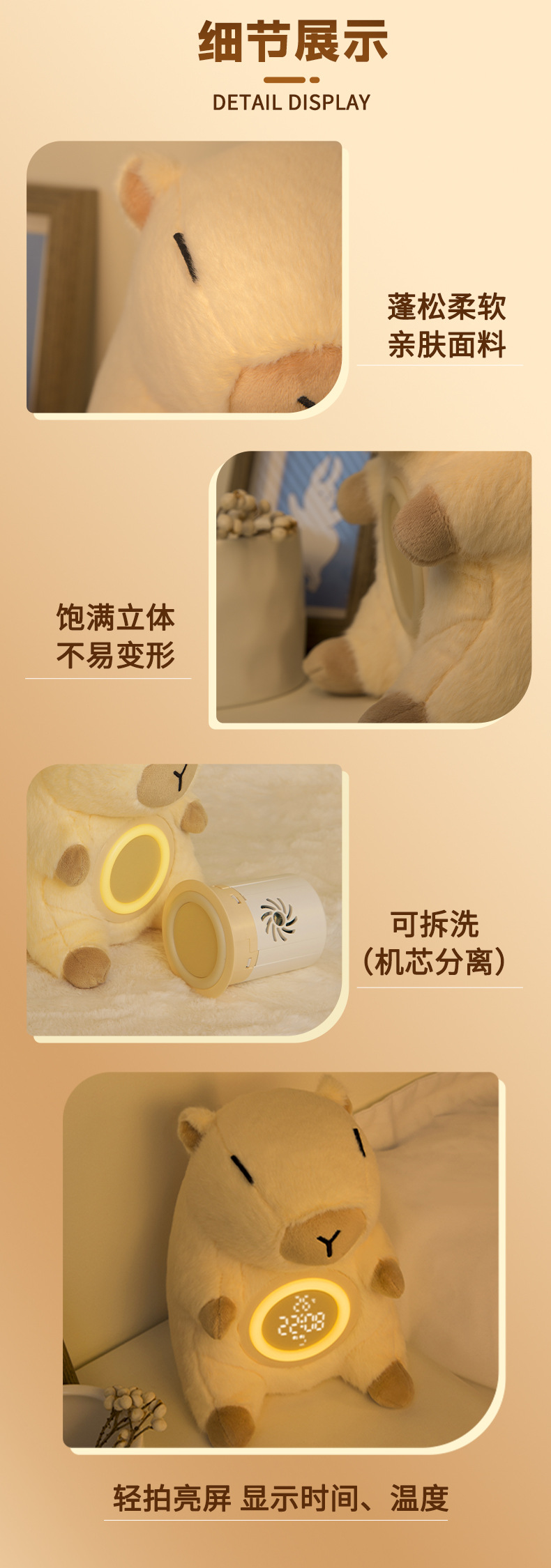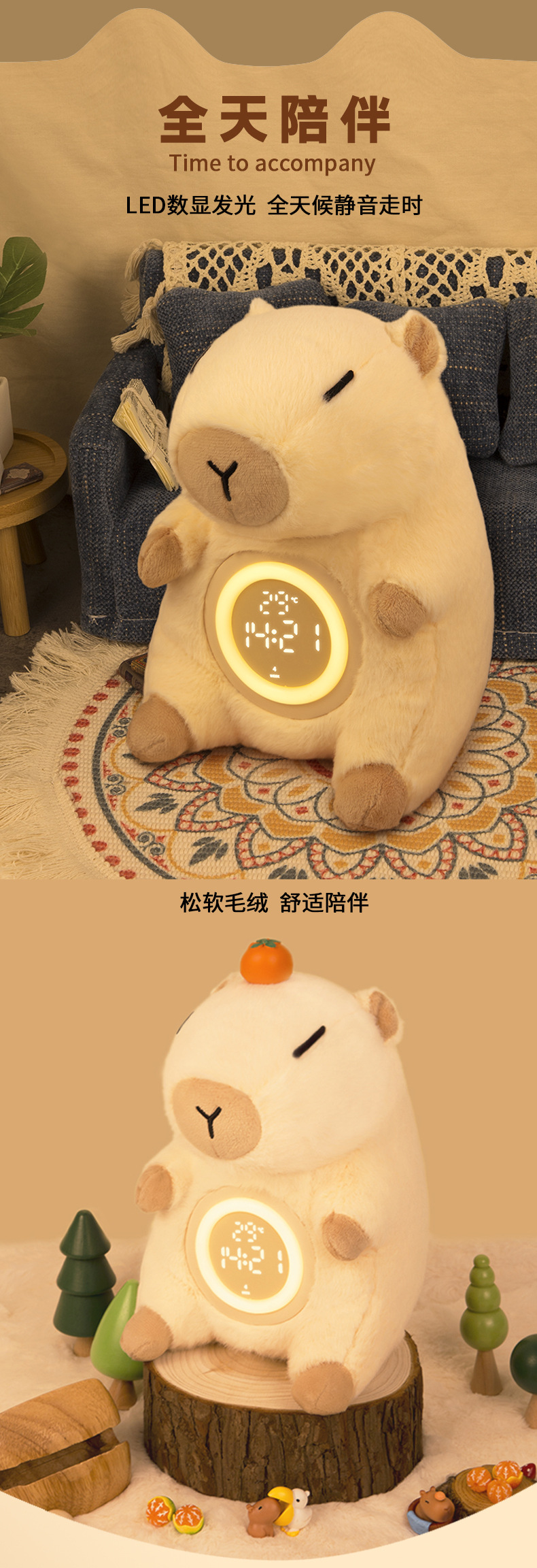 Fábrica al por mayor felpa Kapibala luz de noche regalo de cumpleaños carga creativa dormitorio atmósfera reloj despertador luz de noche