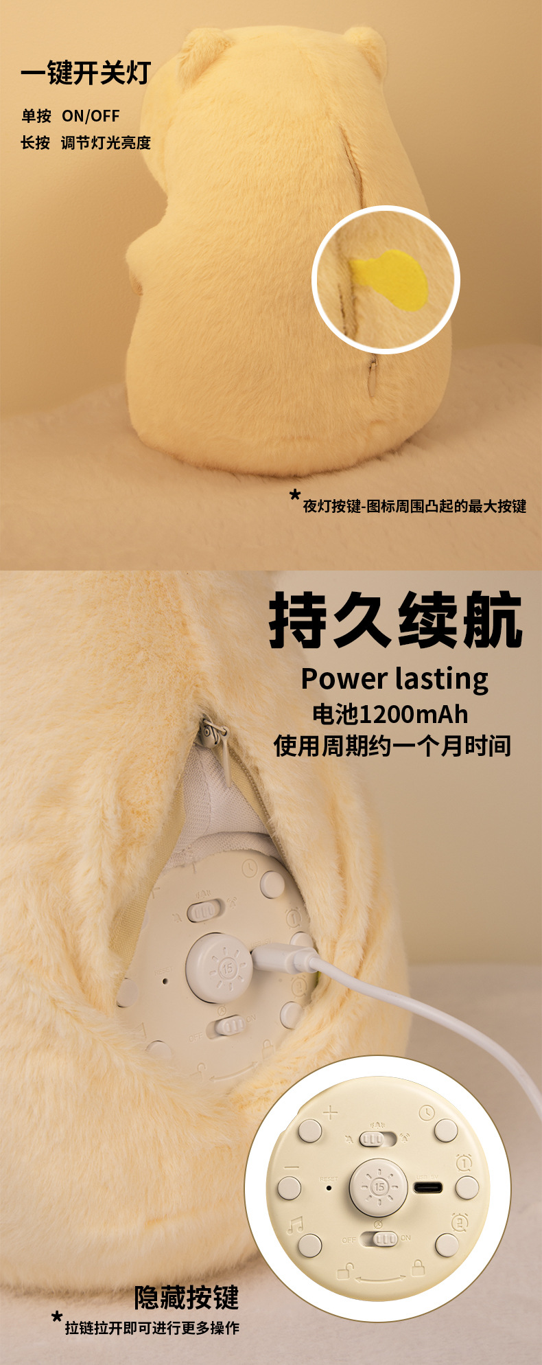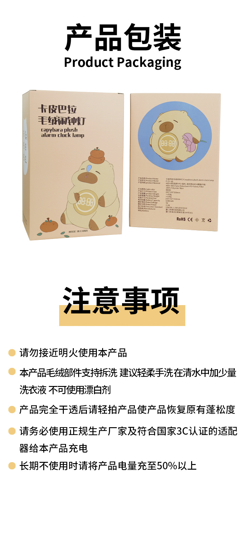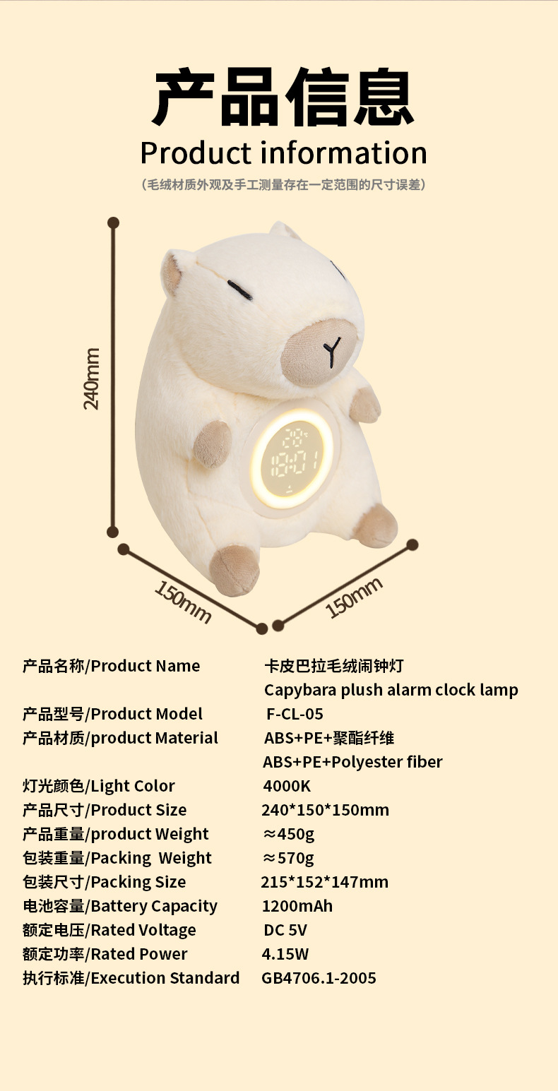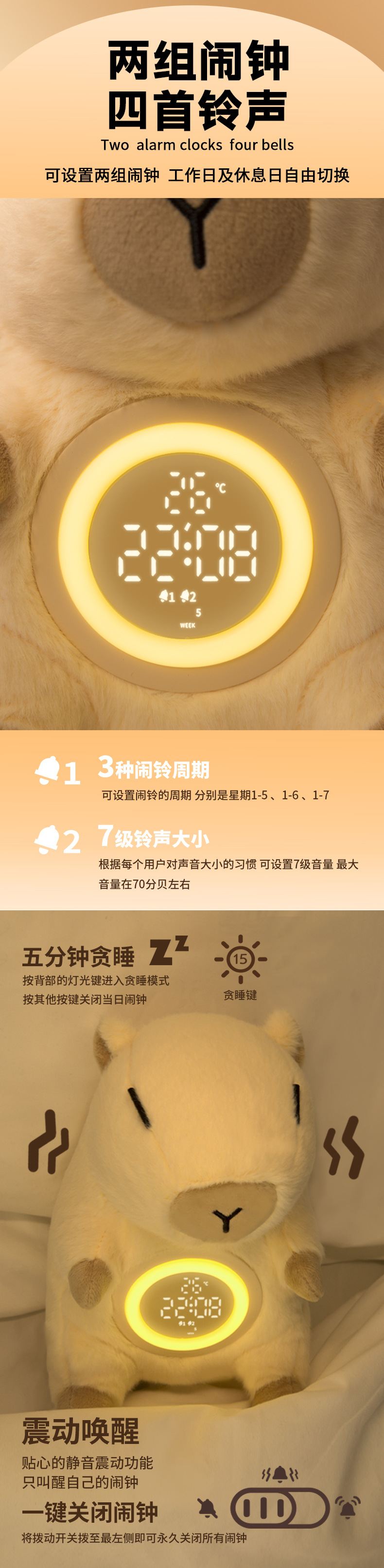 Fábrica al por mayor felpa Kapibala luz de noche regalo de cumpleaños carga creativa dormitorio atmósfera reloj despertador luz de noche