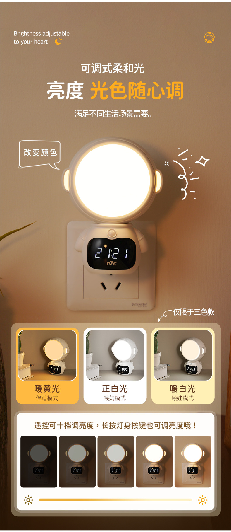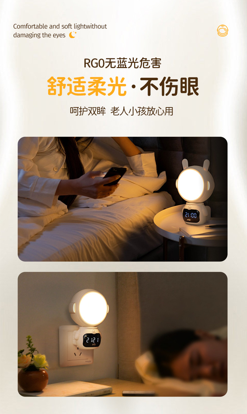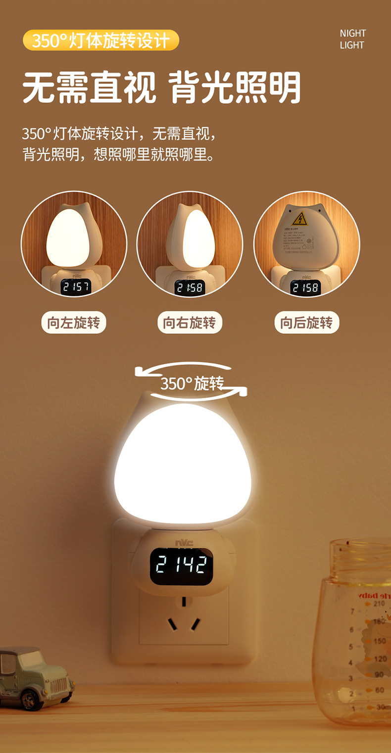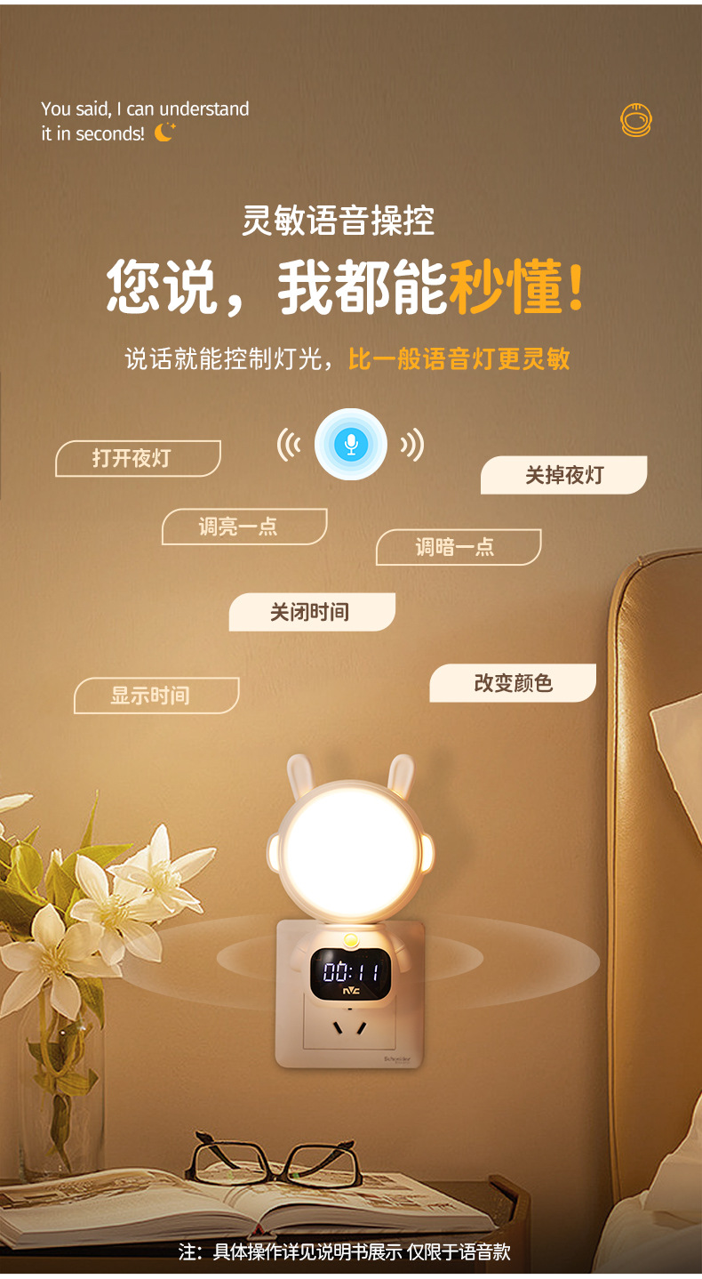 Luz nocturna de control remoto de iluminación NVC, protección ocular especial para la alimentación del bebé, luz de sueño para el dormitorio, luz de noche controlada por sonido, luz ambiental