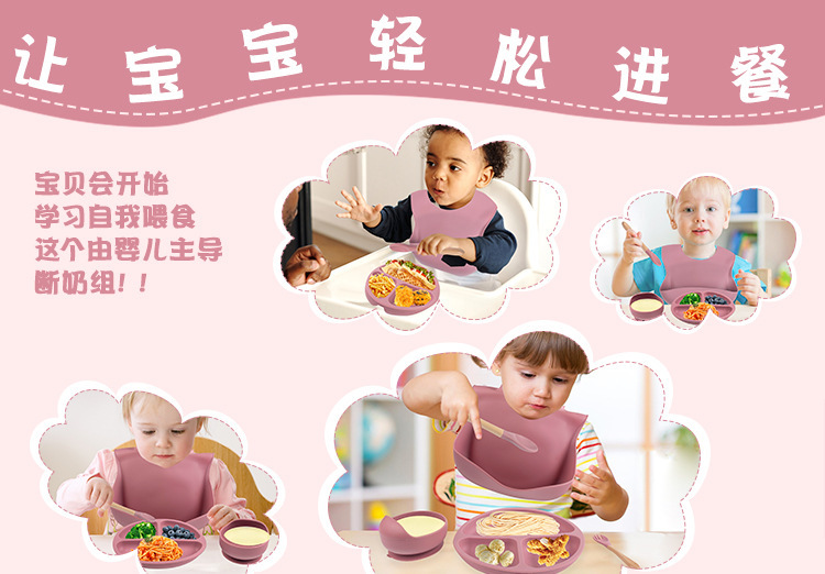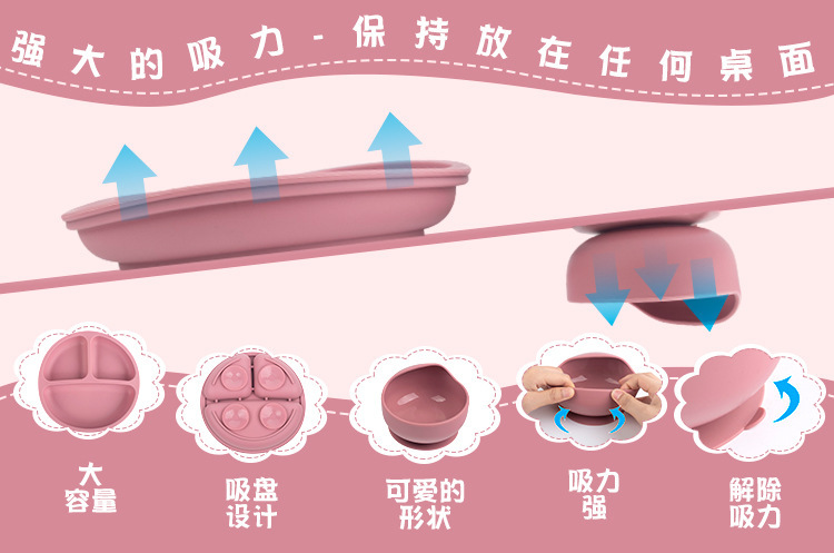 Juego de vajilla para bebés con complementos alimenticios de Corea del Sur Tazón de alimentos para bebés anti-caída de silicona Vajilla de alimentación para niños de grado alimenticio