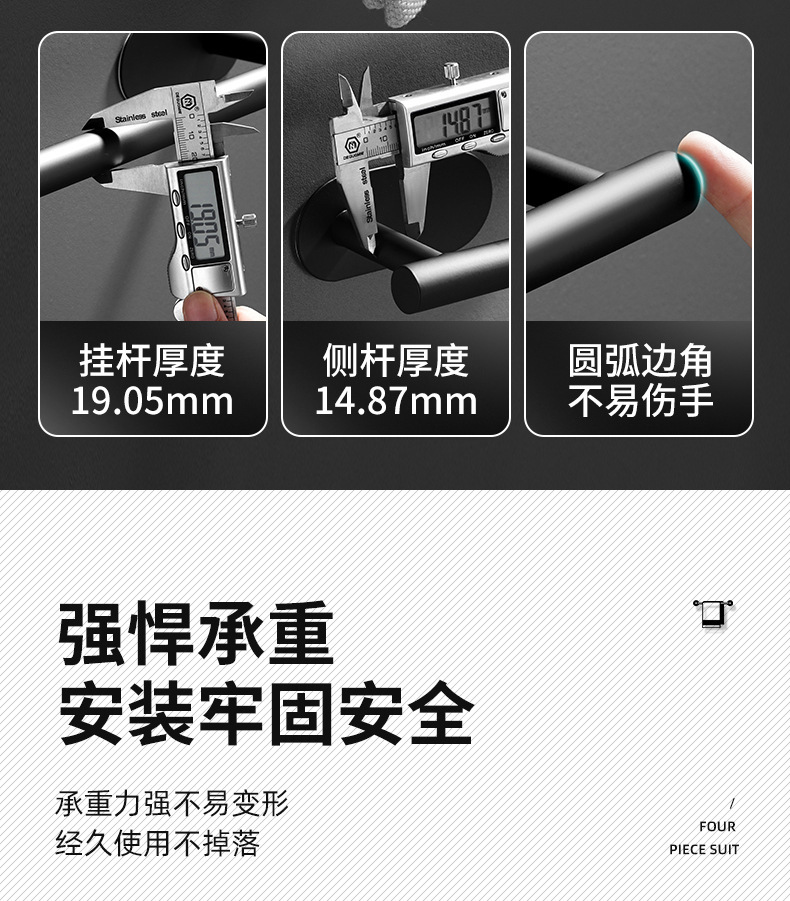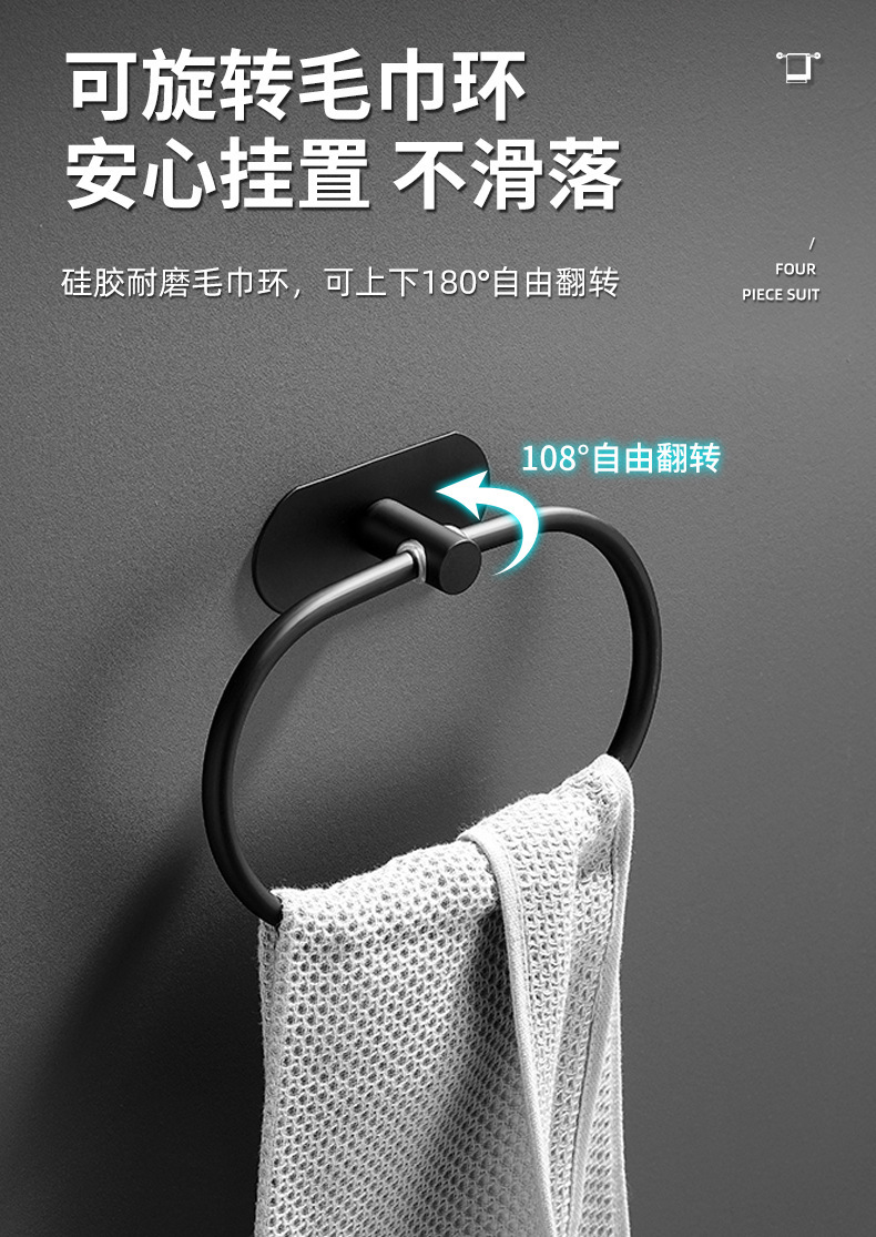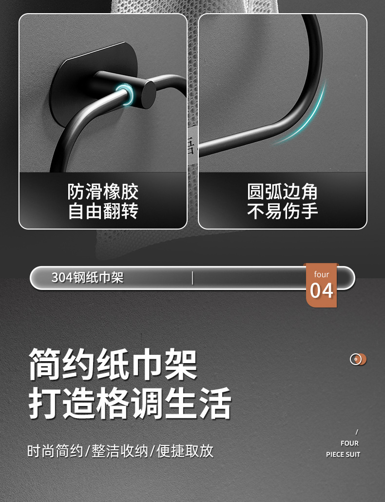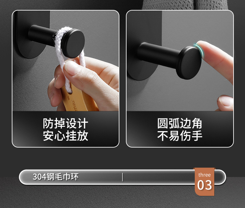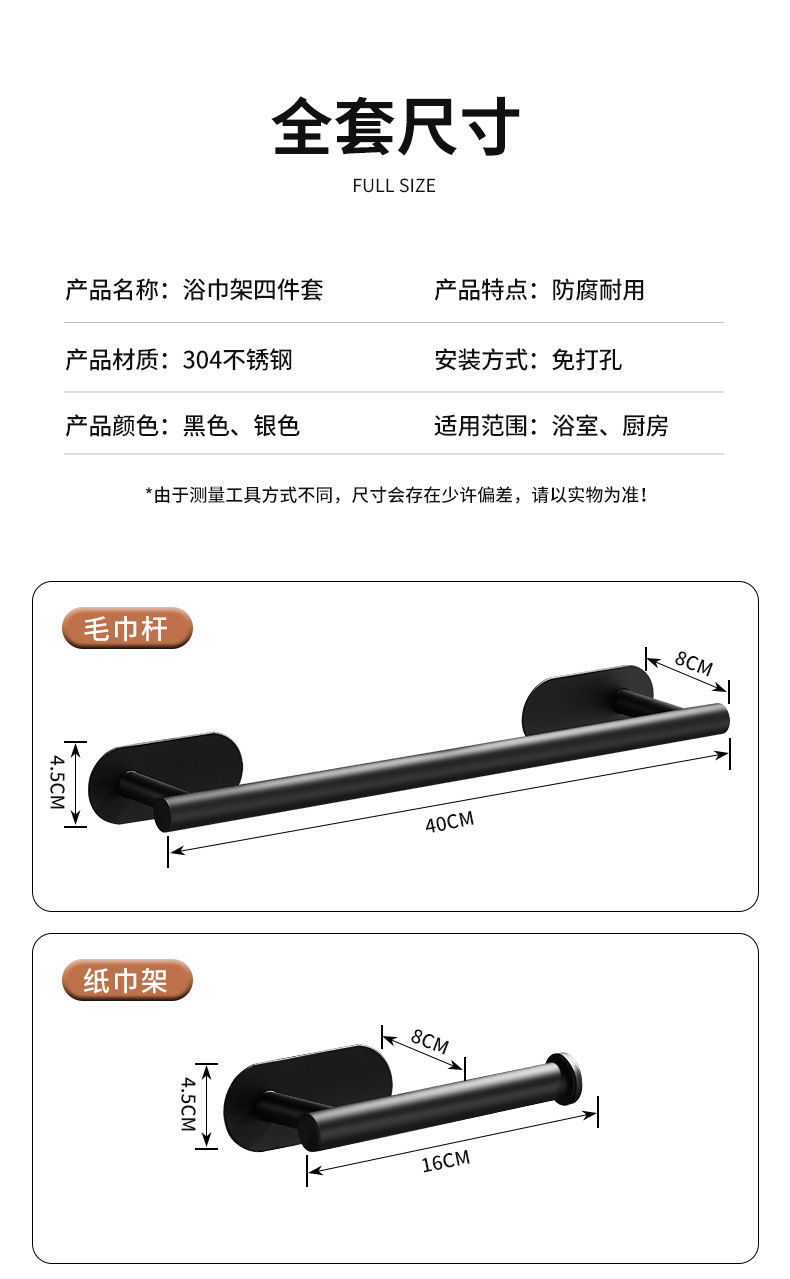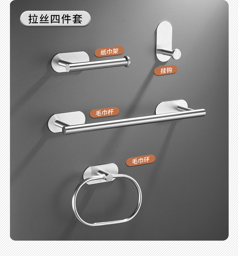 Juego de toallero 304 Juego de toallero de almacenamiento de pared de baño, toallero de toalla de papel, gancho, juego de toallero de baño sin perforación