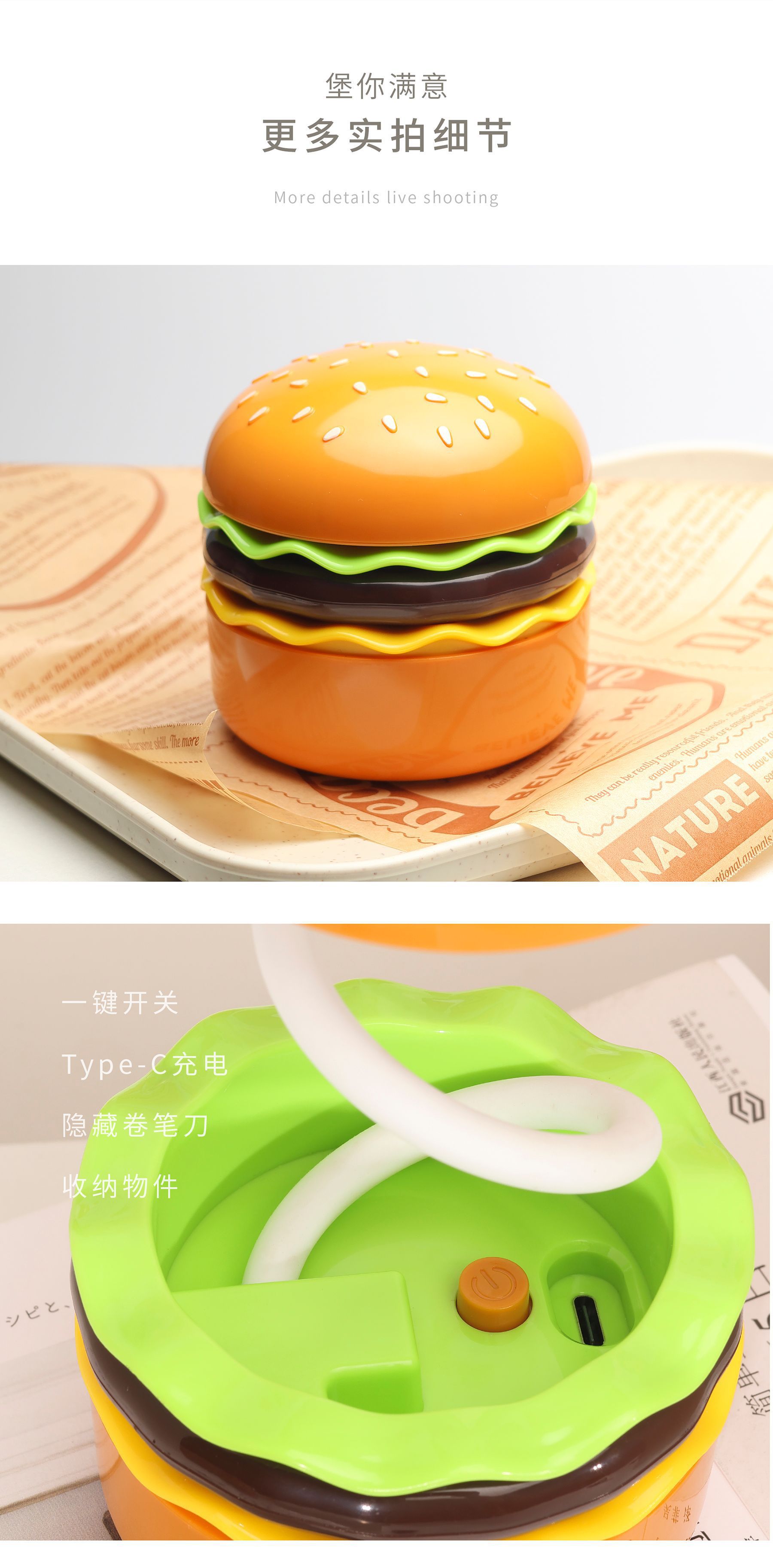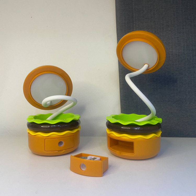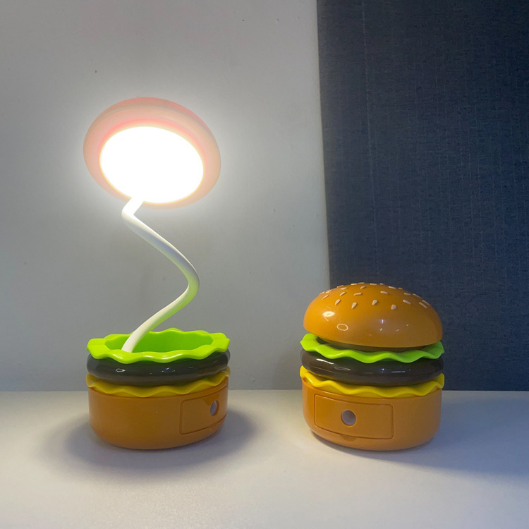 Hamburguesa transfronteriza luz de noche sacapuntas luz de noche LED puede almacenar mesa de ambiente hamburguesa de dibujos animados con lápiz