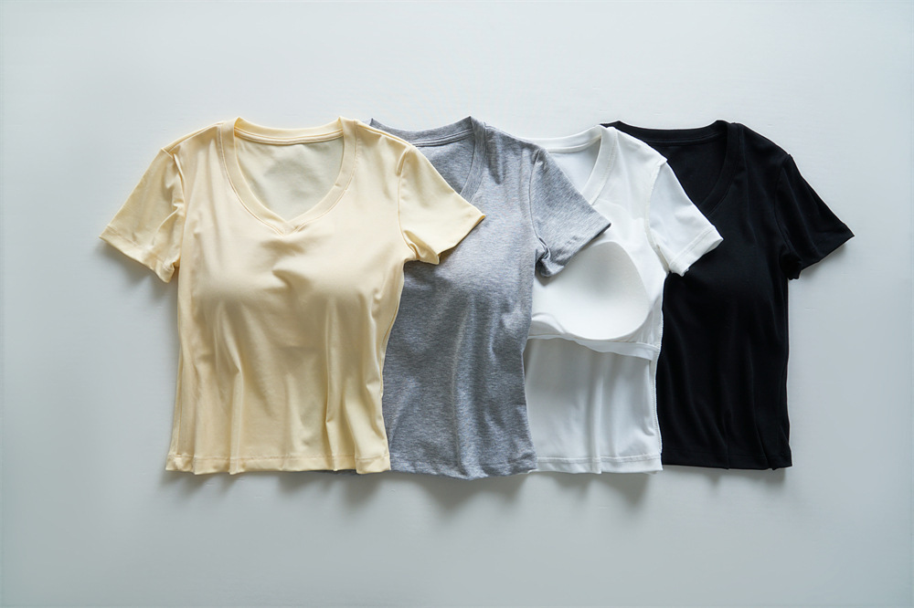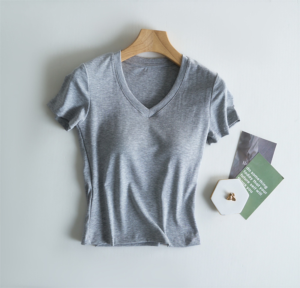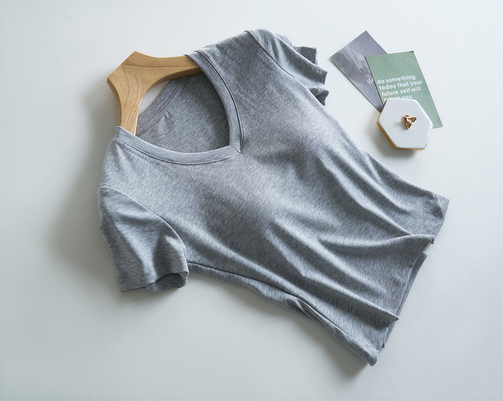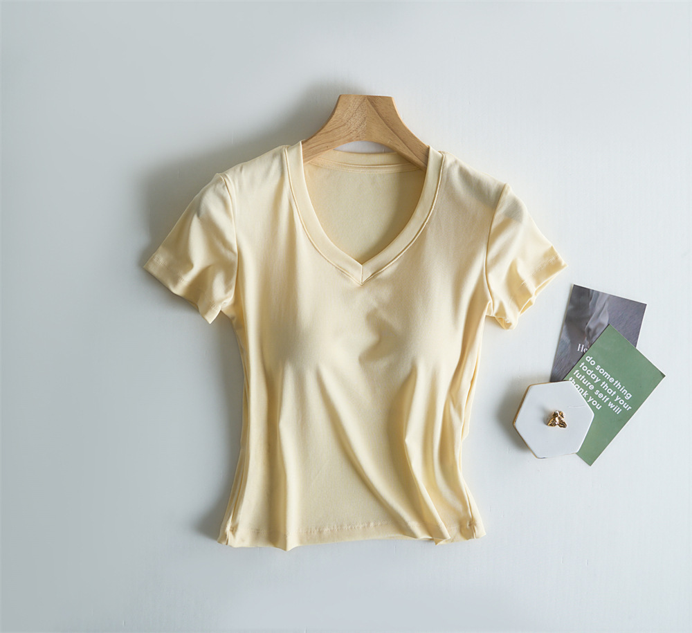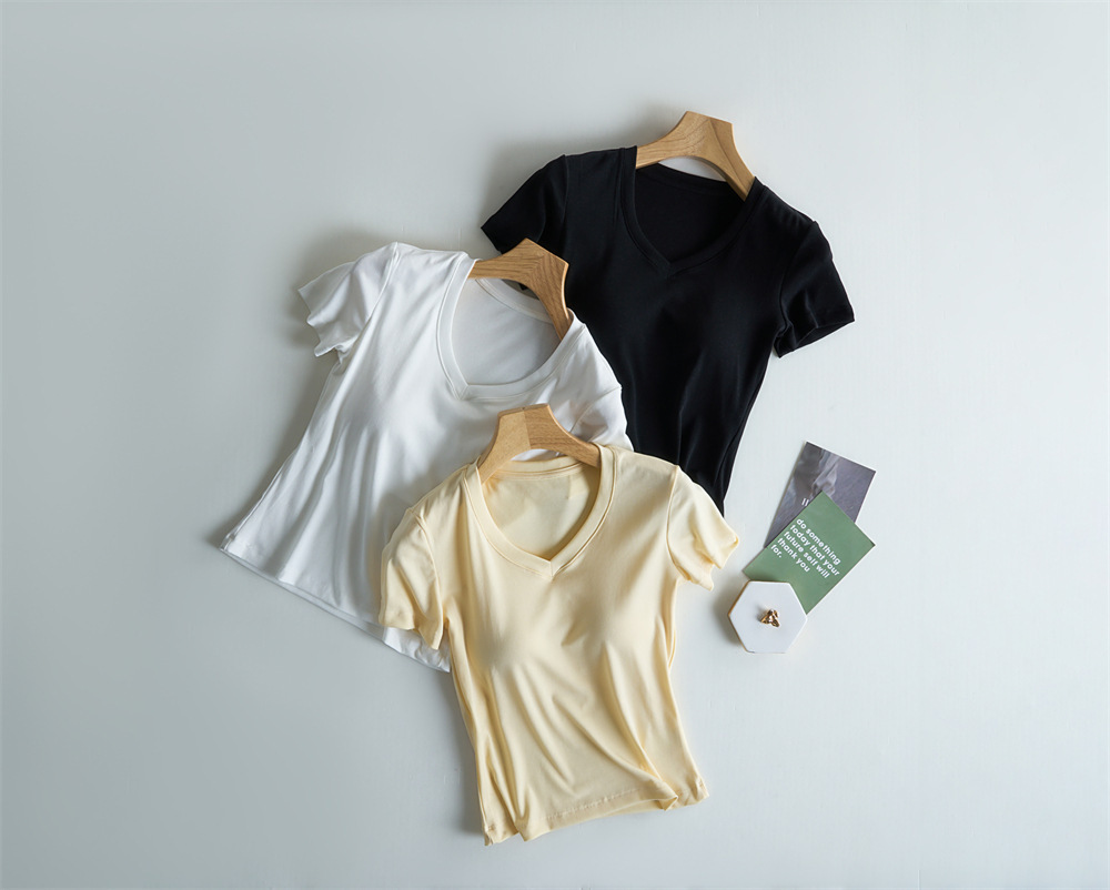 Tensei Lesser Almohadilla para el pecho con cinturón de algodón para mujer Camiseta blanca de manga corta con cuello en V para mujer Verano nuevo top casual de nicho de hombro