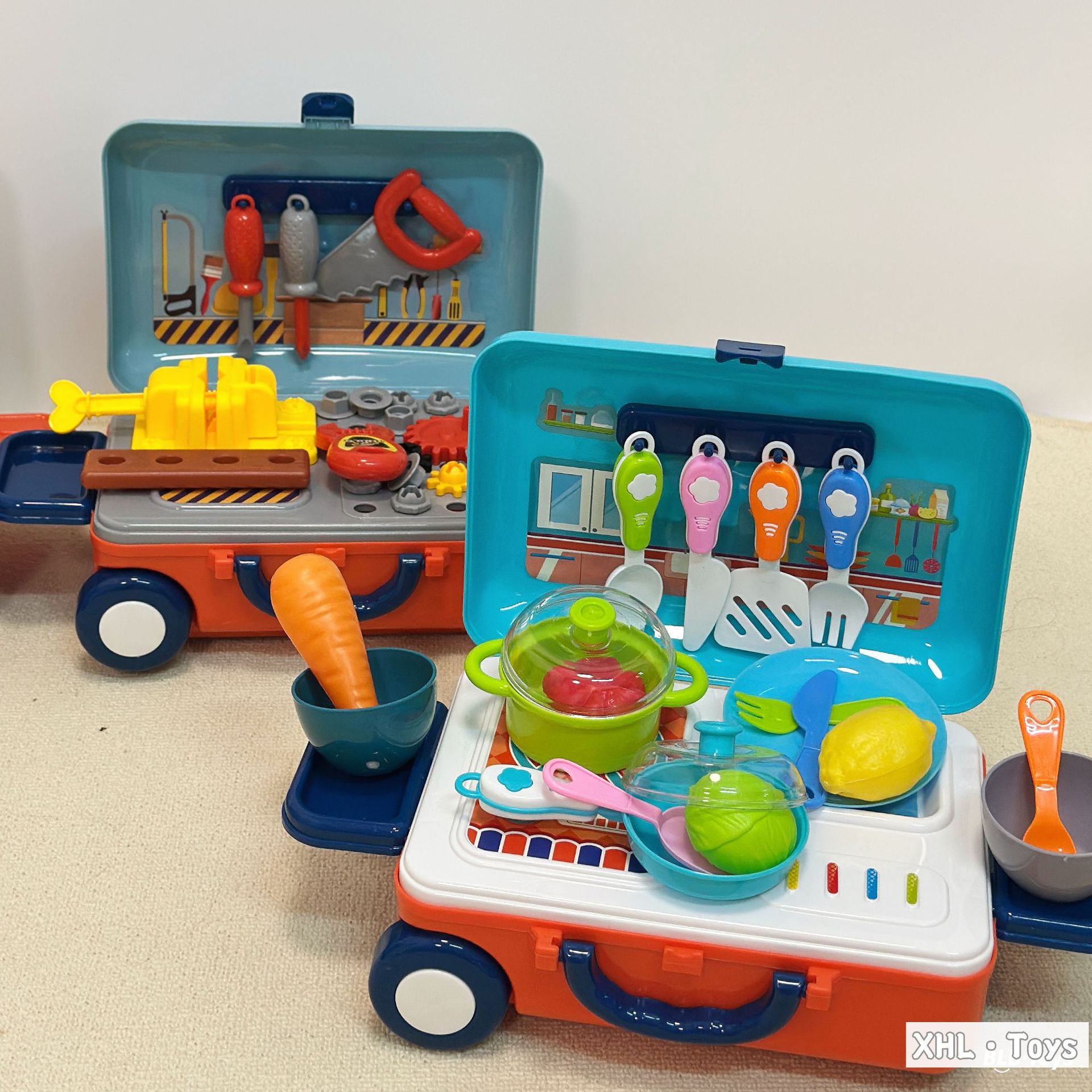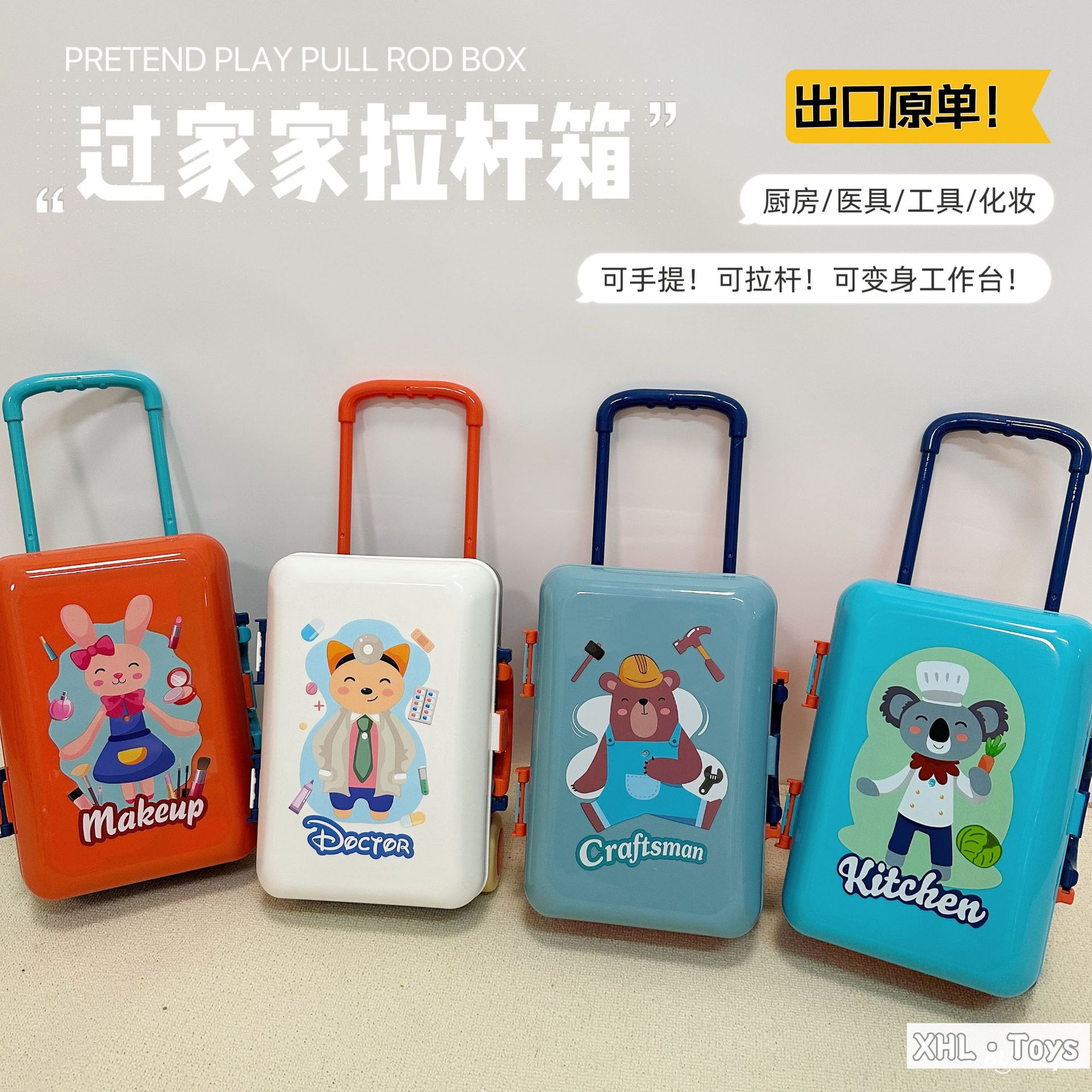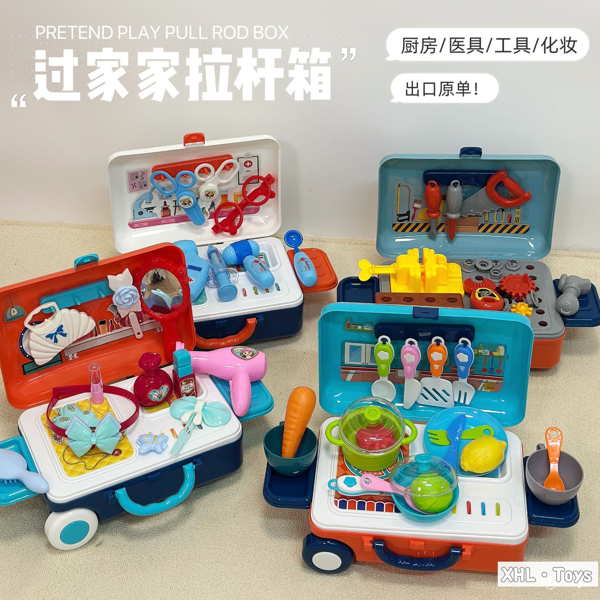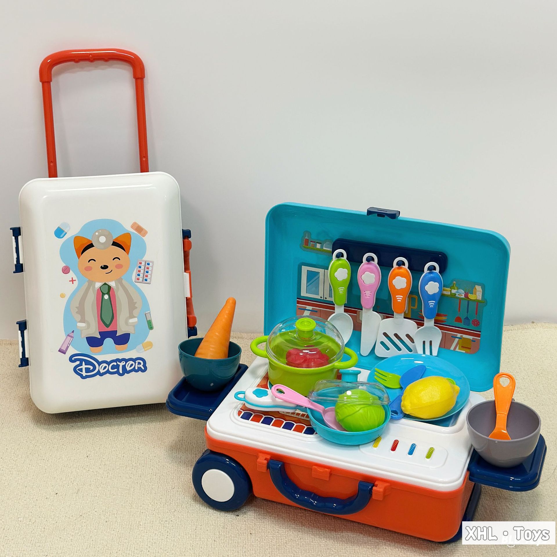 Caja trolley de juegos para bebés transfronterizos/comida de simulación portátil de doble uso Cocina Doctor Herramientas Maquillaje Utensilios de cocina Juguetes