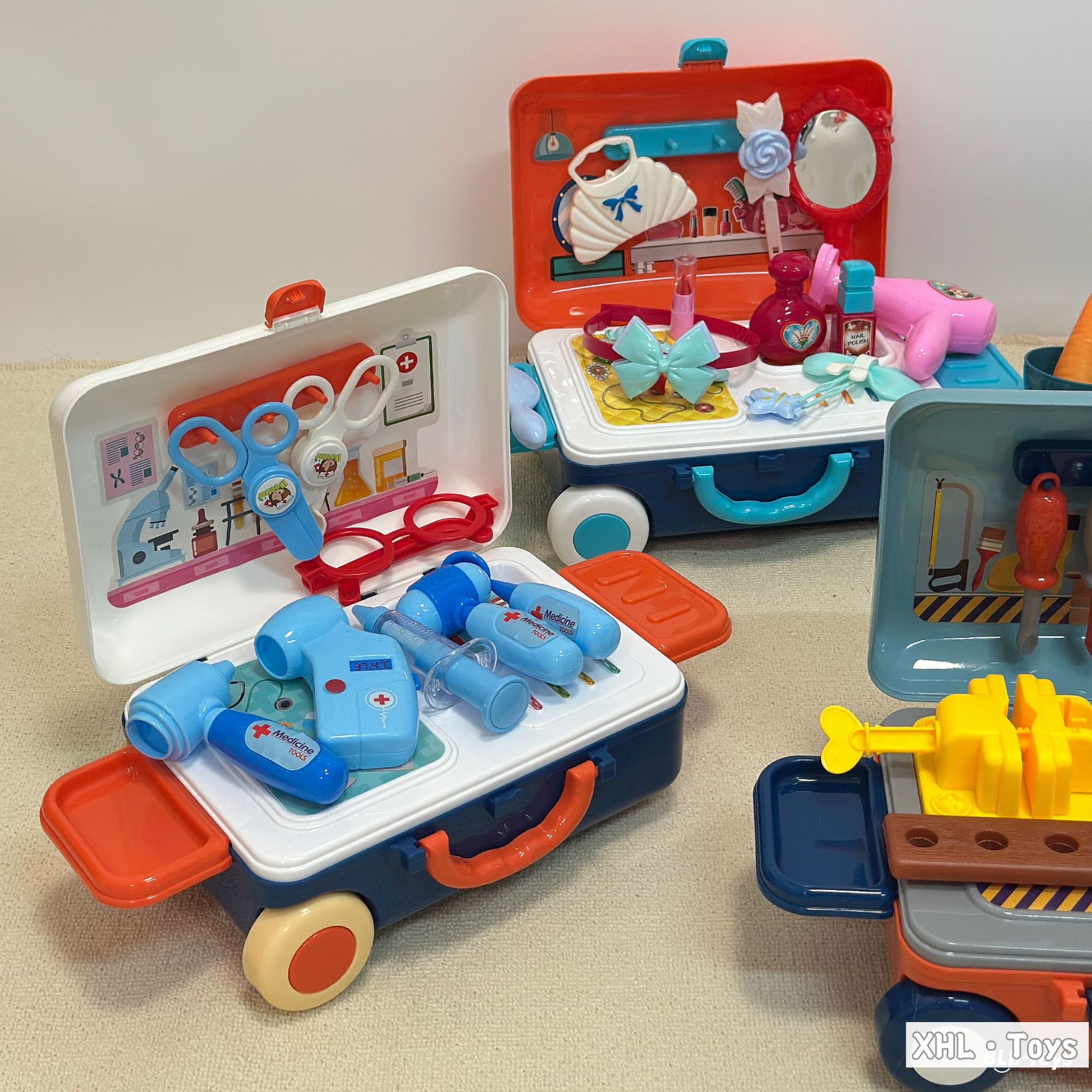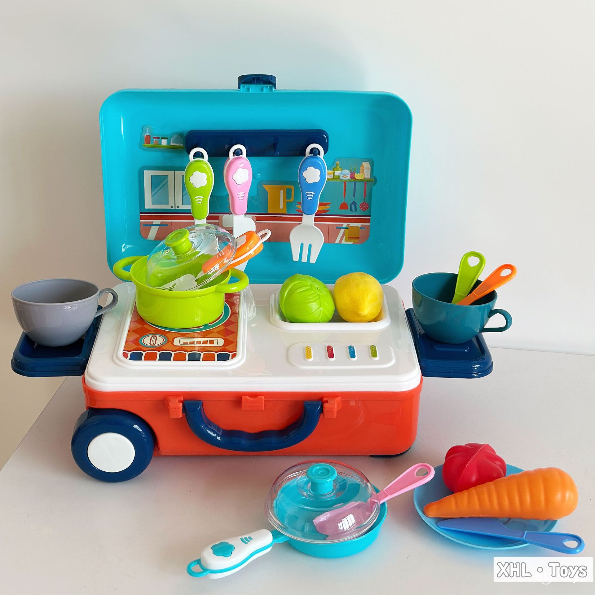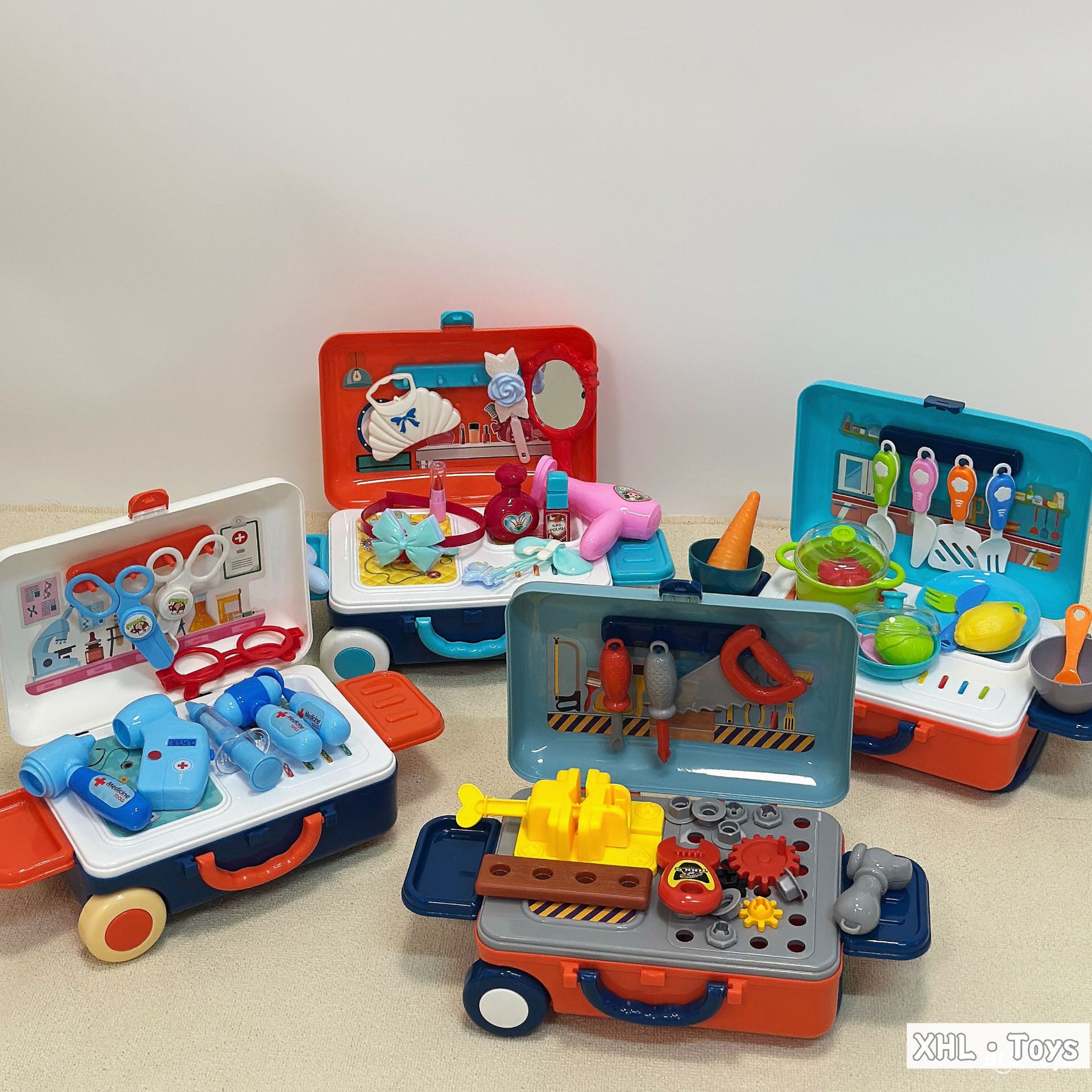 Caja trolley de juegos para bebés transfronterizos/comida de simulación portátil de doble uso Cocina Doctor Herramientas Maquillaje Utensilios de cocina Juguetes