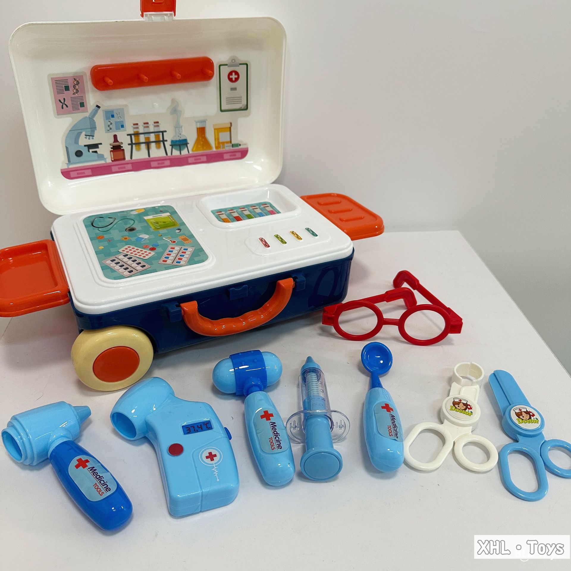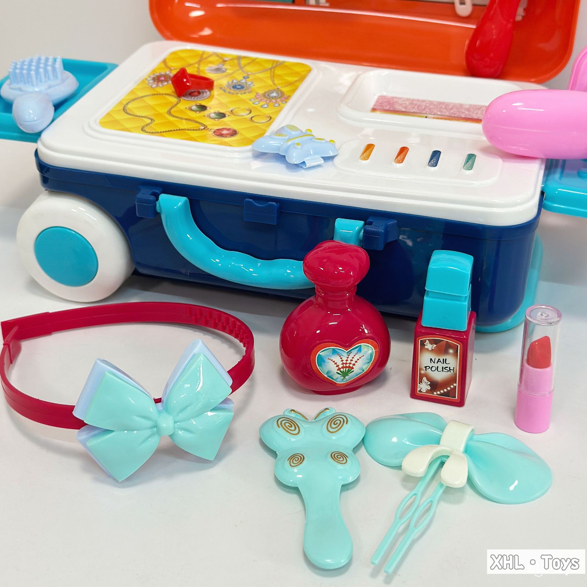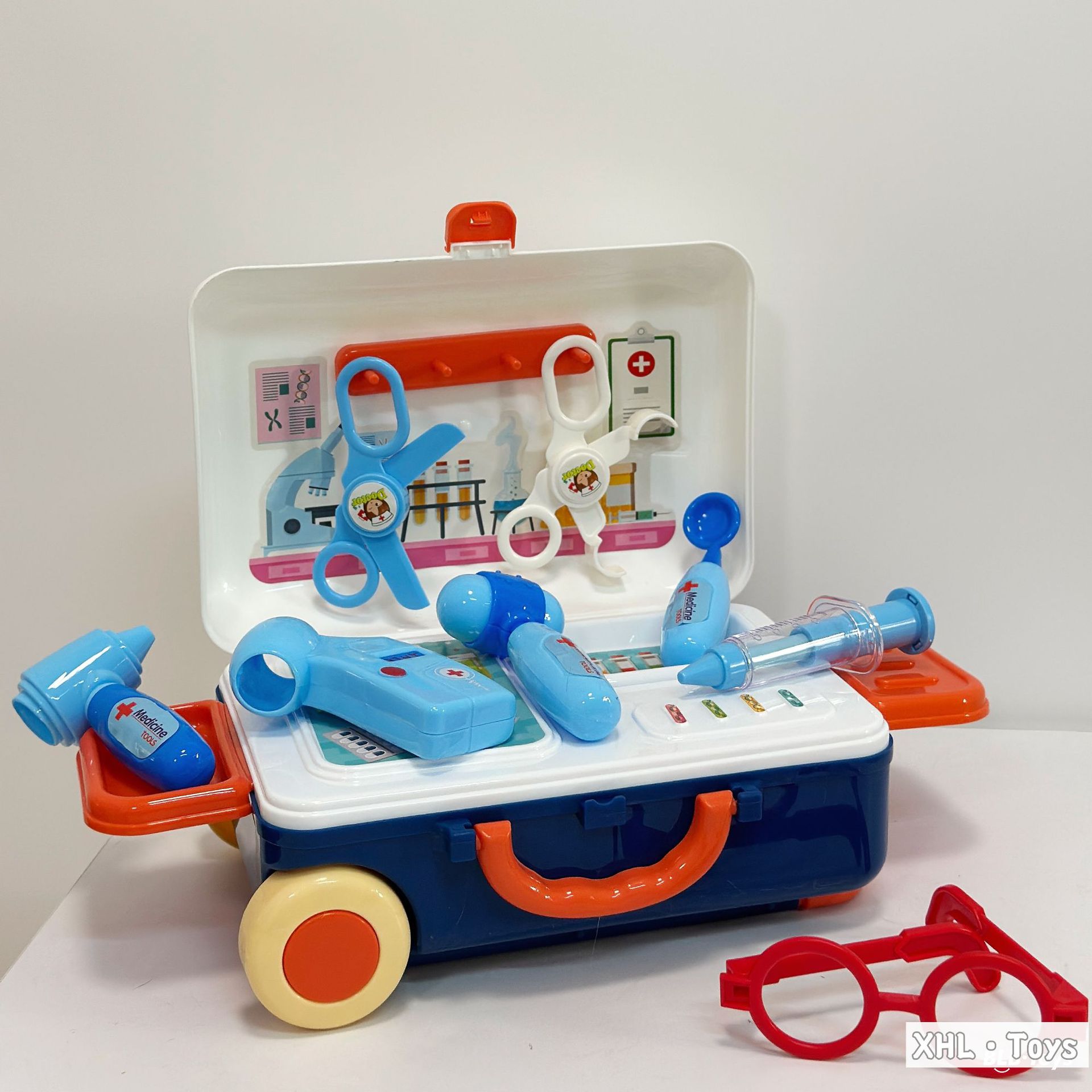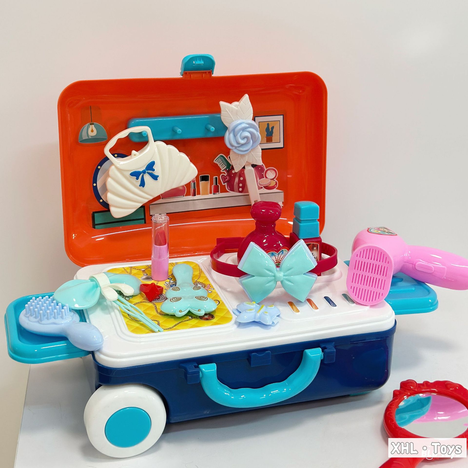 Caja trolley de juegos para bebés transfronterizos/comida de simulación portátil de doble uso Cocina Doctor Herramientas Maquillaje Utensilios de cocina Juguetes