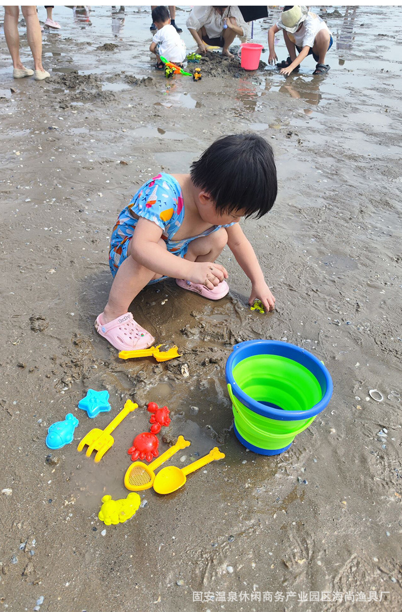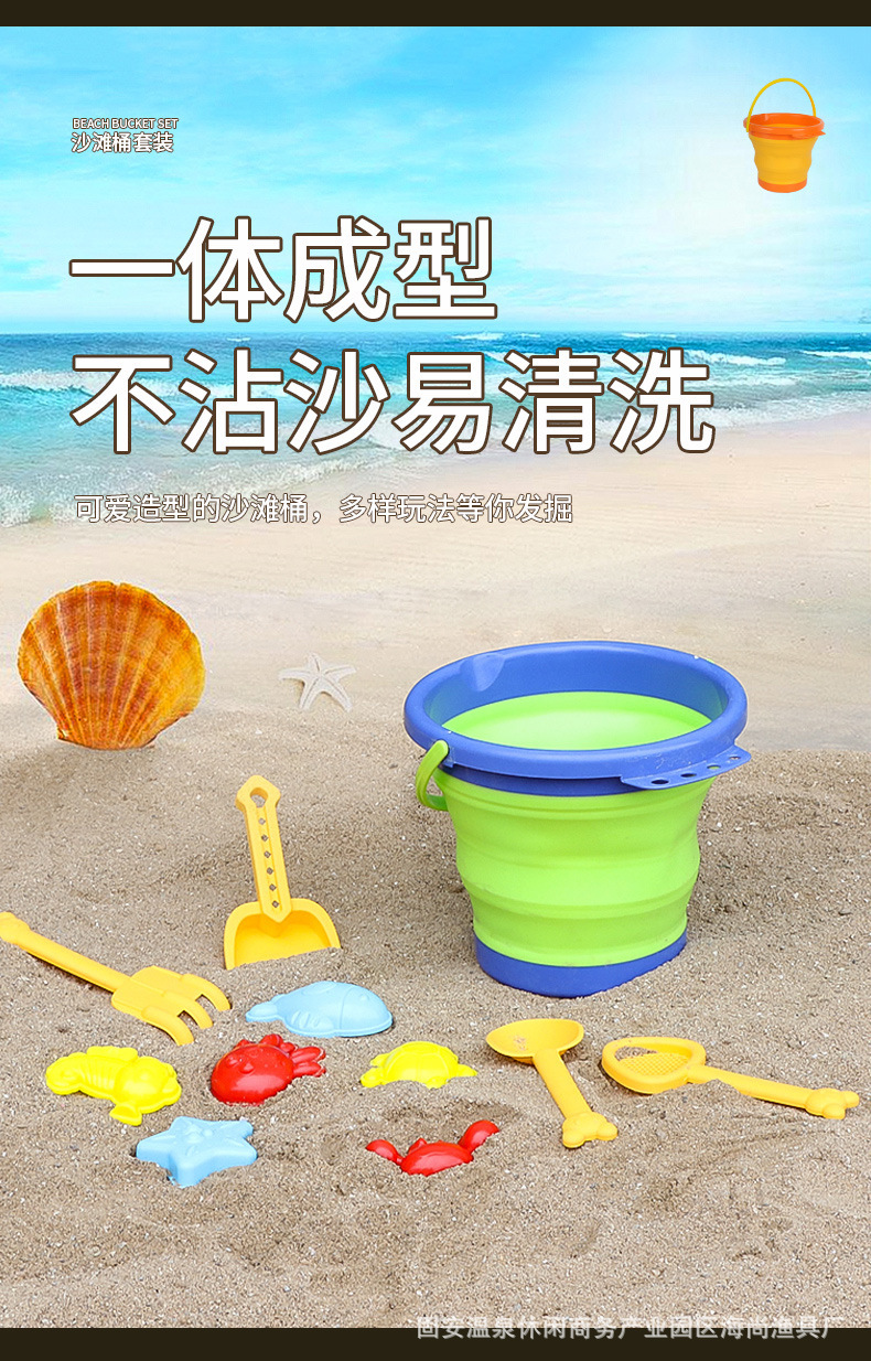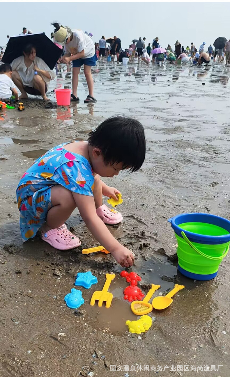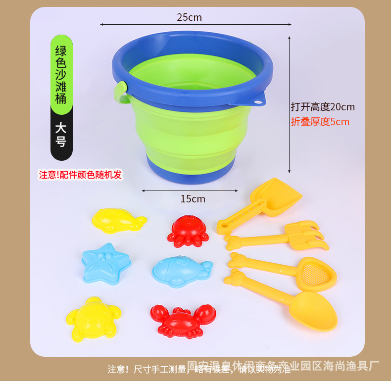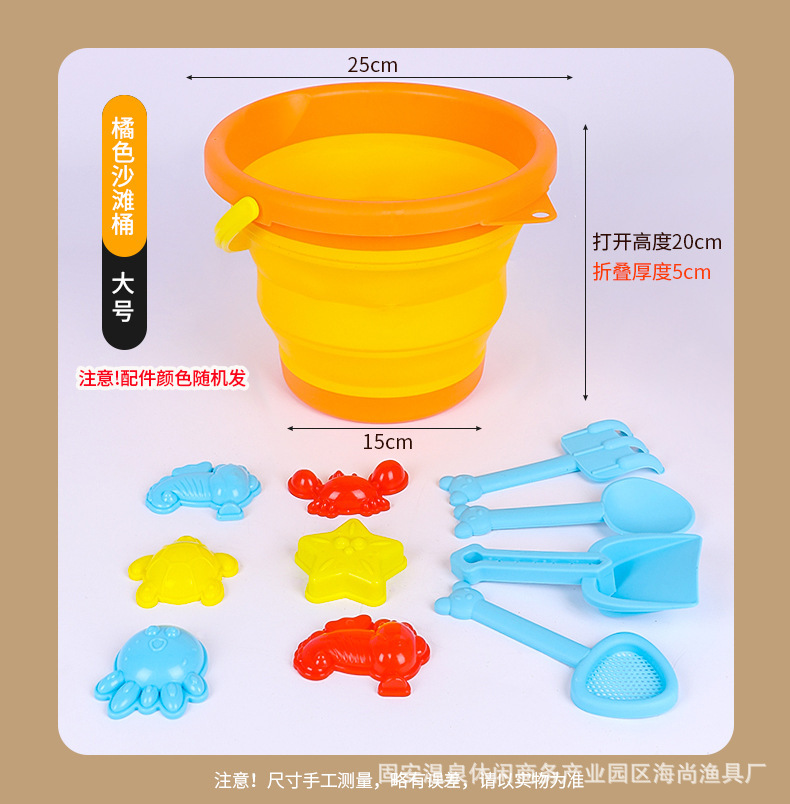 Barril de playa al por mayor de fábrica, cubo de mar, juego de mar, cubo plegable, excavación de arena, pesca, pesca, herramientas de excavación de arena