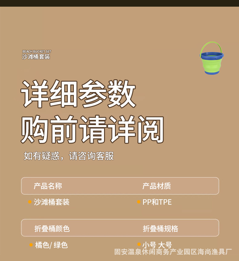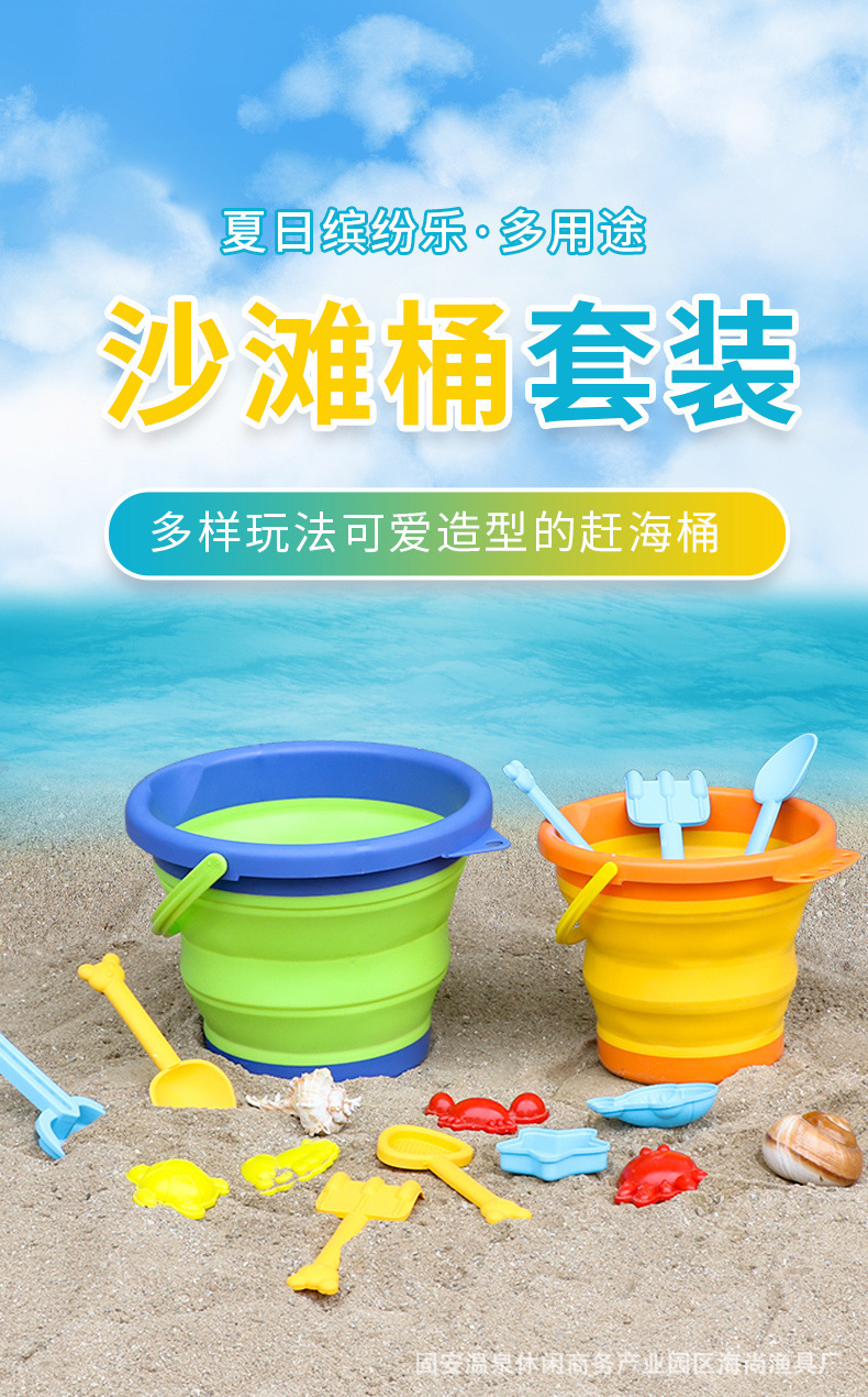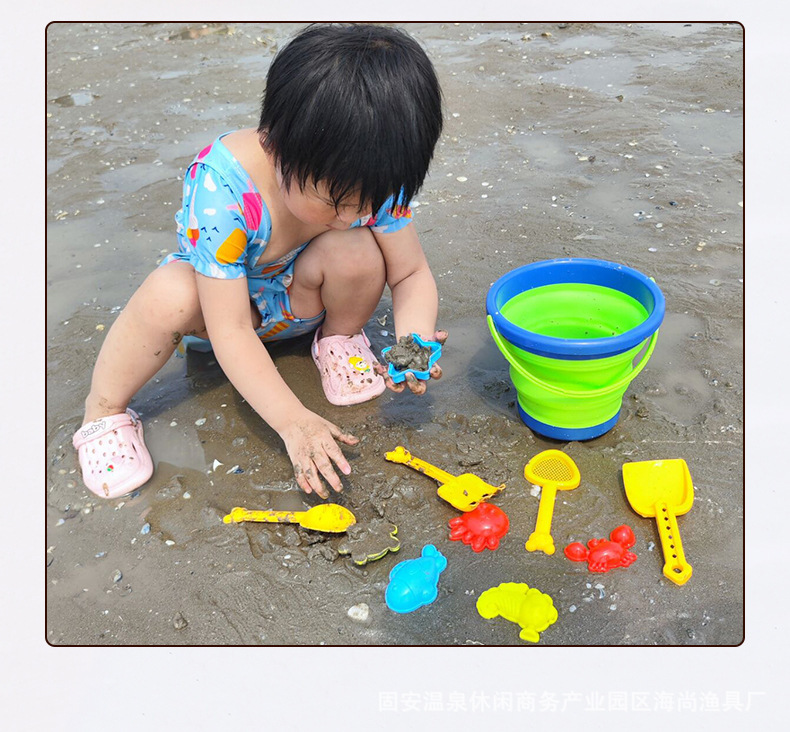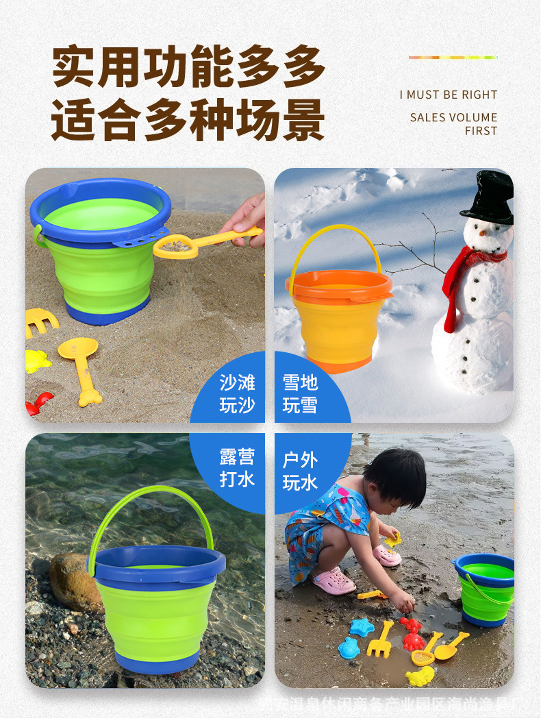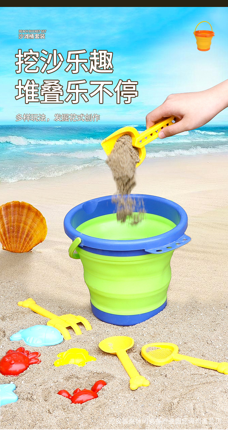 Barril de playa al por mayor de fábrica, cubo de mar, juego de mar, cubo plegable, excavación de arena, pesca, pesca, herramientas de excavación de arena
