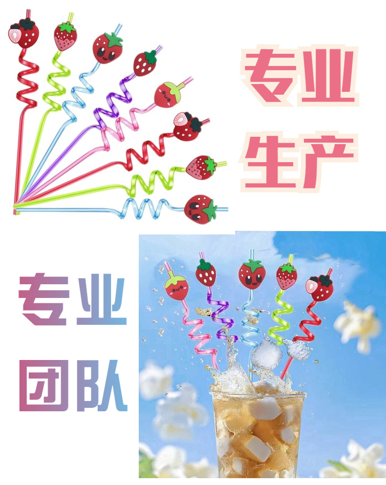 Serie de frutas nuevo estilo paja en forma de fresa accesorios de parche decoración de fiesta pajita multicolor PET venta al por mayor transfronteriza