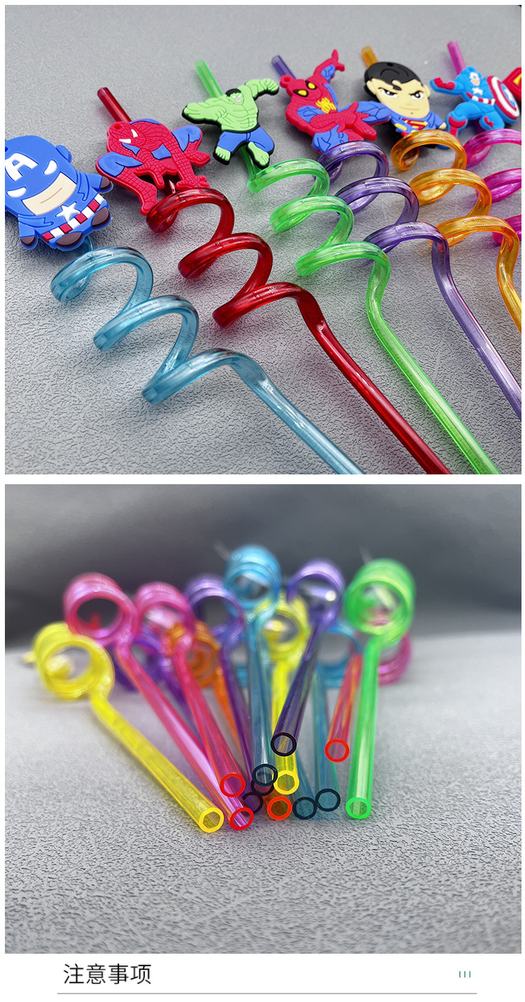 Spider-Man PVC flexible pegamento decoración paja para niños pequeño regalo al por mayor Paja en forma de Héroe de dibujos animados transfronterizos de Marvel