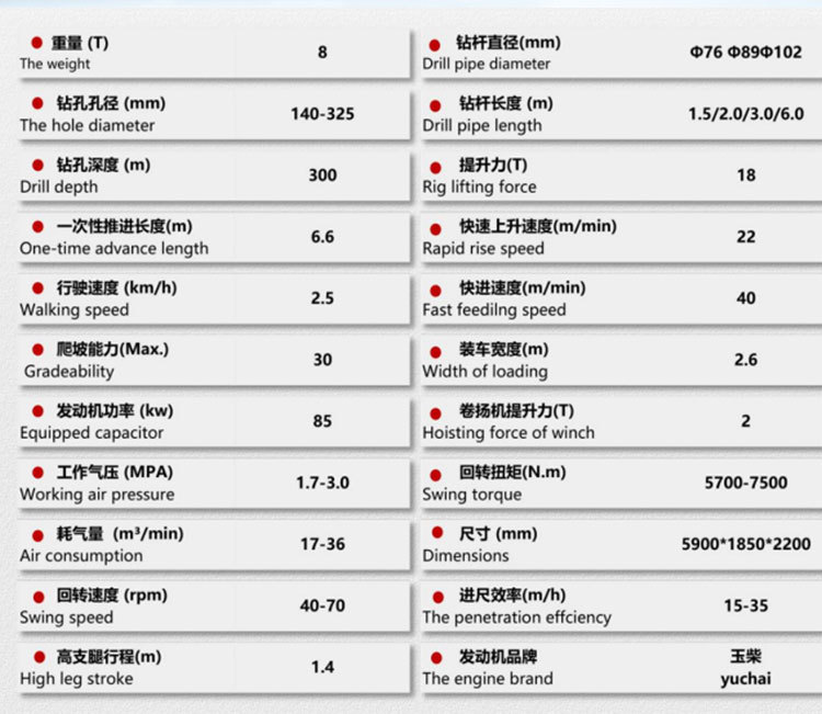 | Usos | Máquina de perforación de pozos de agua hidrogeológica |