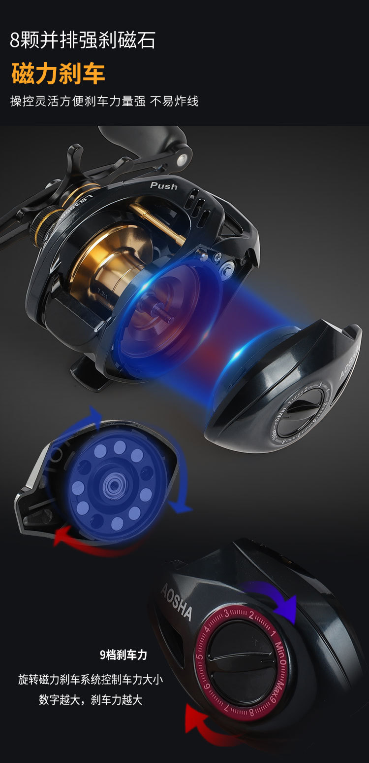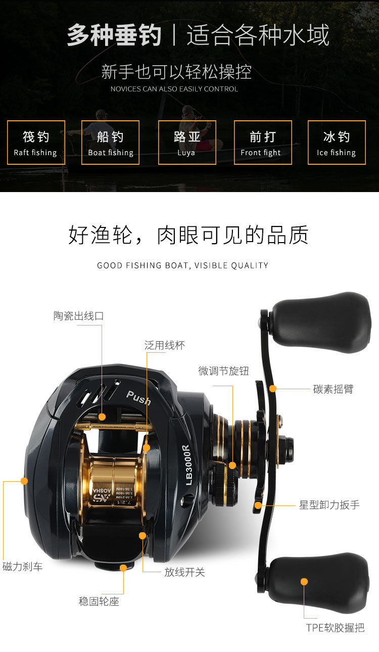 Cazador pescador rey Ao tiburón AS rueda de pesca de metal rueda de goteo de agua rueda de carretera Yalun azul y negro rueda de micro LB rueda de pesca rueda de pesca marina aparejos de pesca