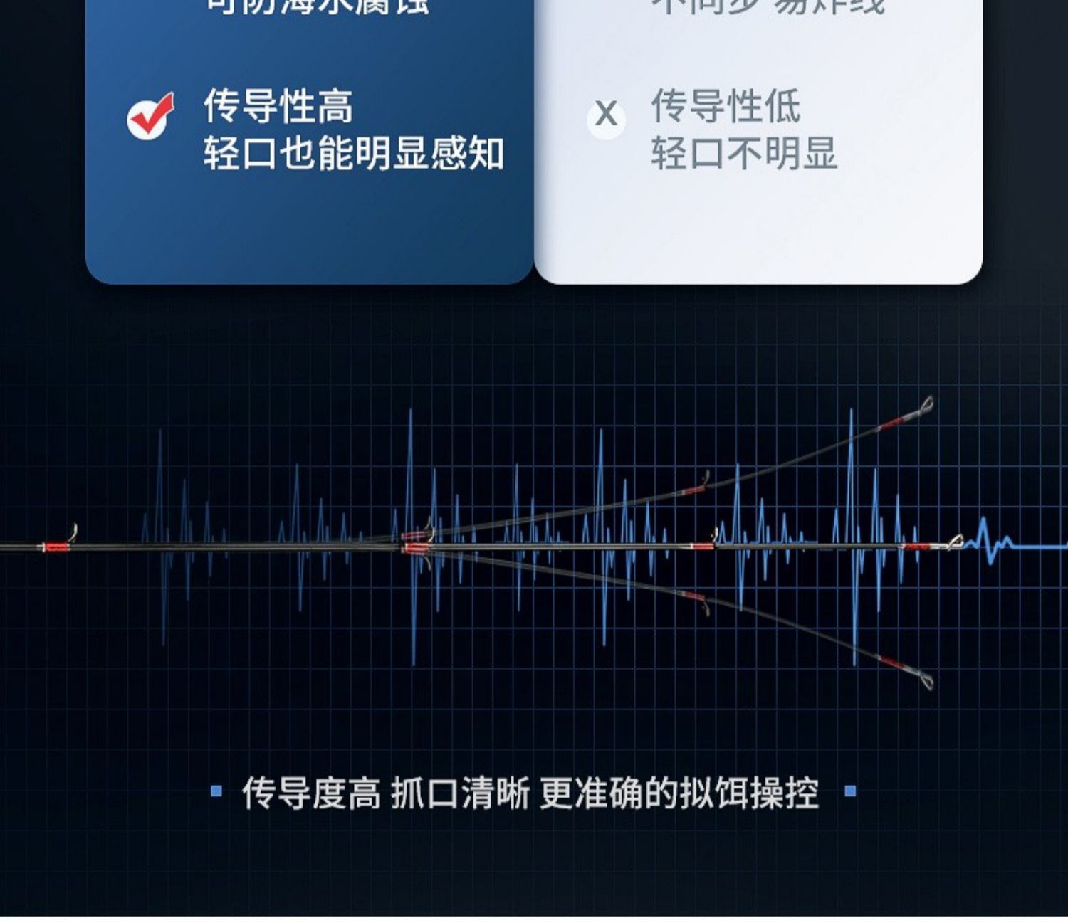 | Longitud | 1,8 metros (caña de pescar entera),2,1 metros (caña de pescar entera),2,4 metros (caña de pescar entera),1,8 metros arriba,Sección superior de 2,1 metros,2,4 metros arriba |