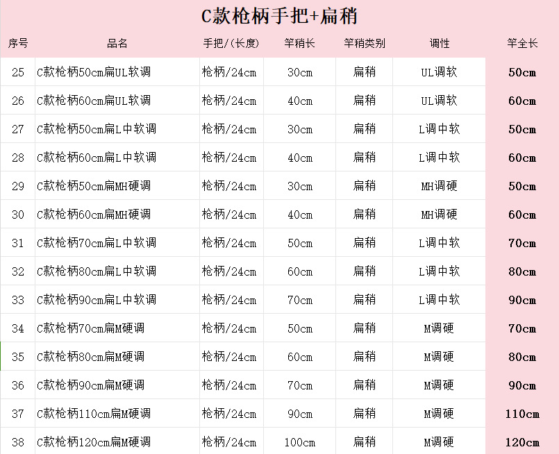| Colores | (1) Estilo C mango recto 45cm redondo M tono duro,(2) Estilo C mango recto 55cm redondo M tono duro,(3) Estilo C mango recto 75cm redondo M ajuste duro,(4) mango recto 45cm redondo UL suave,(5) Estilo C mango recto 55cm redondo UL suave,(6) Mango de pistola tipo C 45cm redondo M ajuste duro,(7) Mango de pistola tipo C 45cm redondo M ajuste duro,(8) Mango de pistola tipo C 75cm redondo M ajuste duro,(9) Mango de pistola tipo C 45cm redondo UL suave,(10) Mango de pistola tipo C 55cm redondo UL suave,(11) Estilo C mango recto 50cm plano UL suave,(12)C mango recto 60cm plano UL suave,(13) Estilo C mango recto 50cm plano L tono suave medio,(14) Estilo C mango recto 60cm plano L tono suave medio,(15) Estilo C mango recto 50cm plano MH ajuste duro,(16)C mango recto 60cm plano MH ajuste duro,(17) Estilo C mango recto 70cm plano L tono suave medio,(18) Estilo C mango recto 80cm plano L tono suave medio,(19) Estilo C mango recto 90cm plano L tono suave medio,(20)C mango recto 70cm plano M ajuste duro,(21) Estilo C mango recto 80cm plano M ajuste duro,(22)C mango recto 90cm plano M ajuste duro,(23)C mango recto 110cm plano M ajuste duro,(24)C mango recto 120cm plano M ajuste duro,(25) Mango de pistola tipo C 50cm plano UL suave,(26) Mango de pistola tipo C 60cm plano UL suave,(27) Mango de pistola tipo C 50cm plano L tono suave medio,(28) Mango de pistola tipo C 60cm plano L tono suave medio,(29) Mango de pistola tipo C 50cm plano MH ajuste duro,(30) Mango de pistola tipo C 60cm plano MH ajuste duro,(31) Mango de pistola tipo C 70cm plano L tono suave medio,(32) Mango de pistola tipo C 80cm plano L tono suave medio,(33) Mango de pistola tipo C 90cm plano L tono suave medio,(34) Mango de pistola tipo C 70cm plano M ajuste duro,(35) Mango de pistola tipo C 80cm plano M ajuste duro,(36) Mango de pistola tipo C 90cm plano M ajuste duro,(37) Mango de pistola tipo C 110cm plano M ajuste duro,(38) Mango de pistola tipo C 120cm plano M ajuste duro,Mango recto separado,Mango de pistola separado |