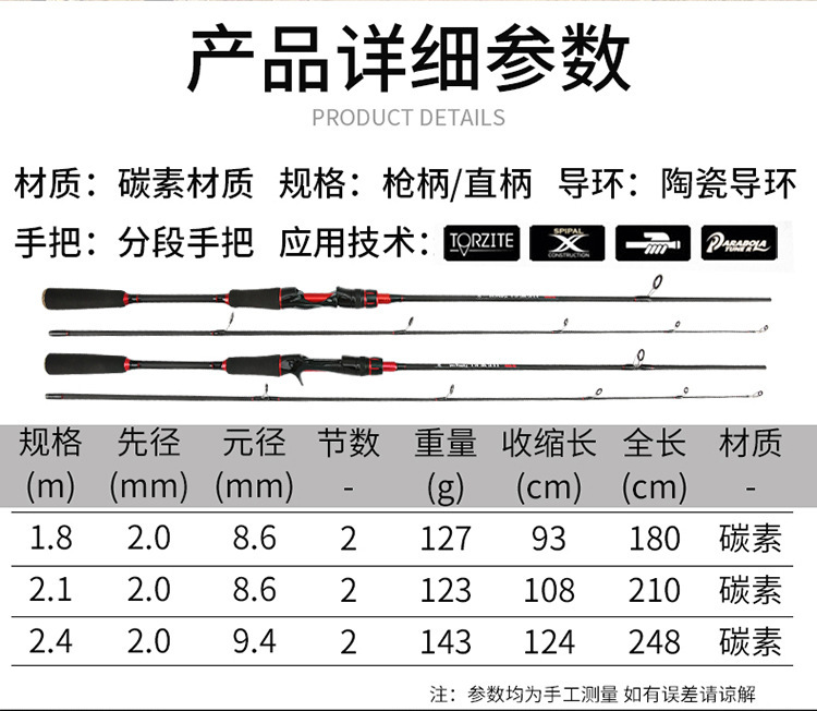 Luya Rod MH ajuste ML ajuste M ajuste 2,7 M caña de pescar 2,4 pistola mango recto mango negro enchufe artes de pesca caña de pescar