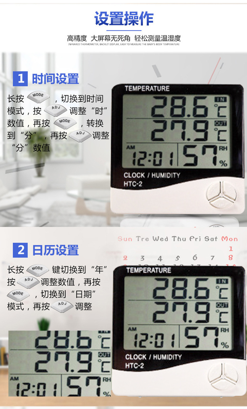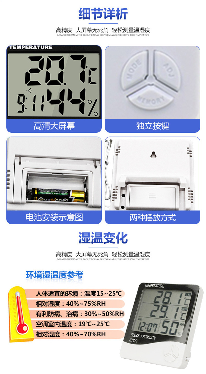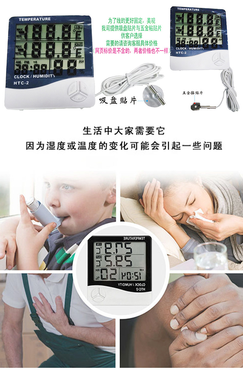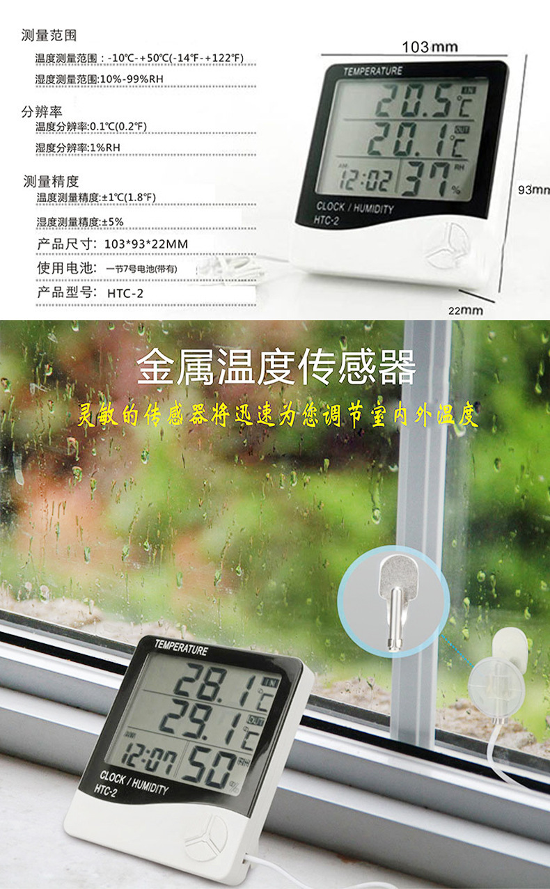 Medidor digital de temperatura y humedad para interiores y exteriores, invernadero de almacén transfronterizo, sonda de temperatura de 1,5 metros, medidor de temperatura y humedad con pantalla digital
