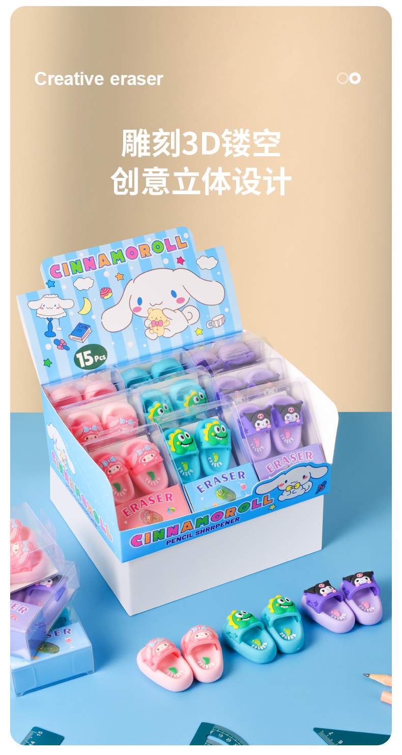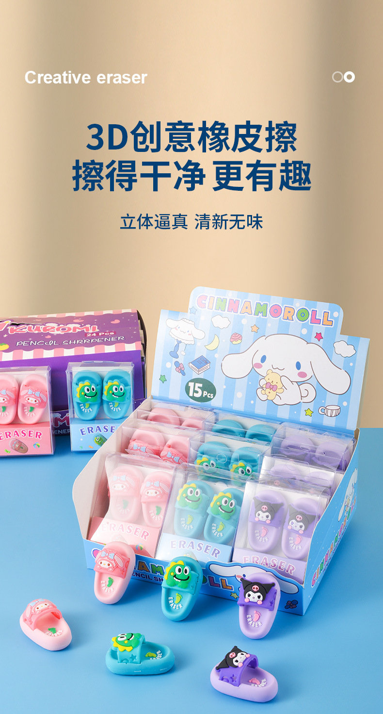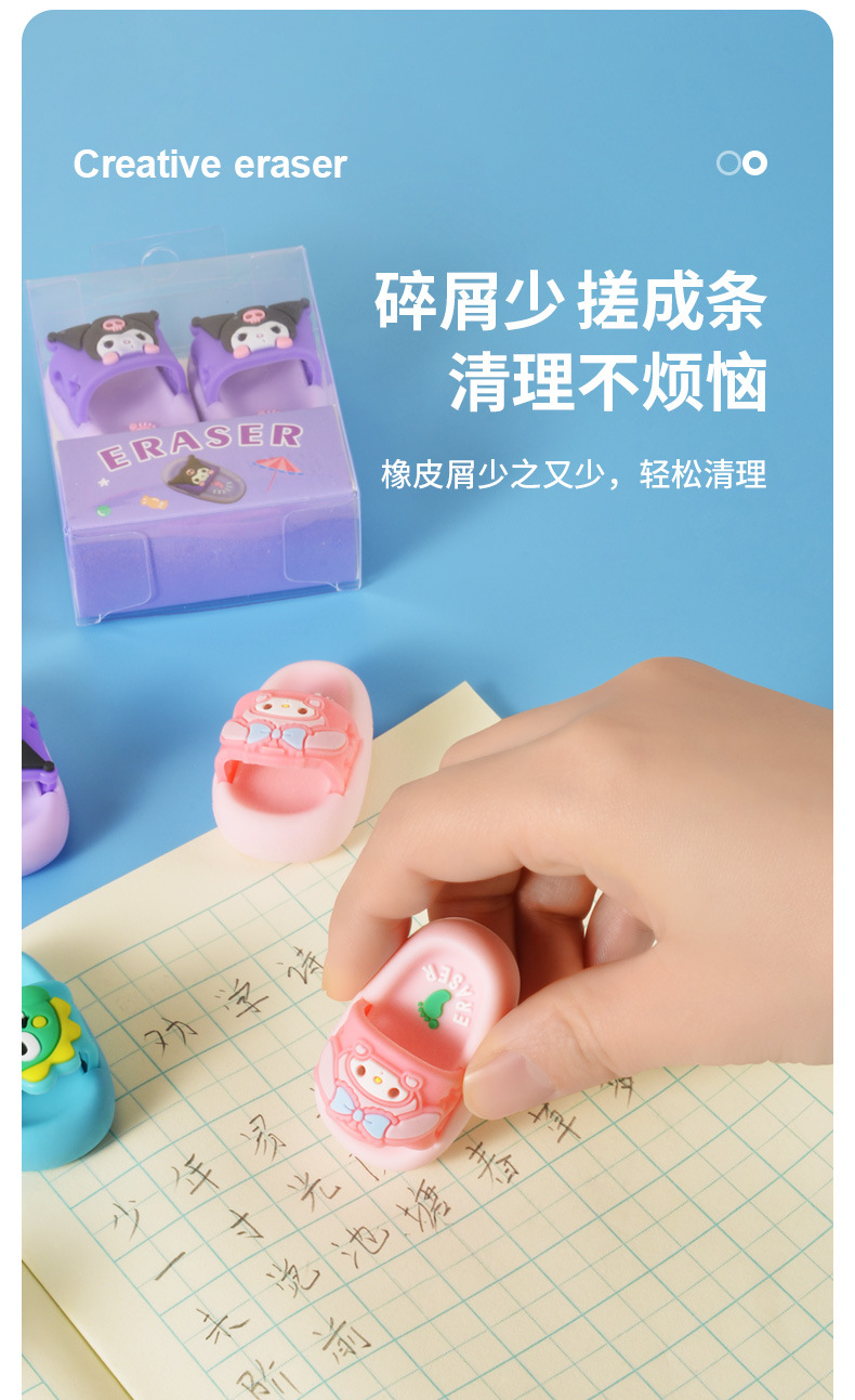 Dibujos animados Sanrio Kulomi Melody Zapatillas Borrador Mini portátil con borrador limpio Papelería