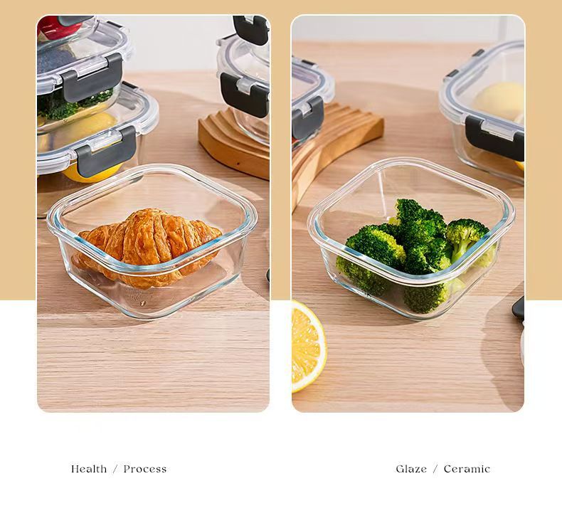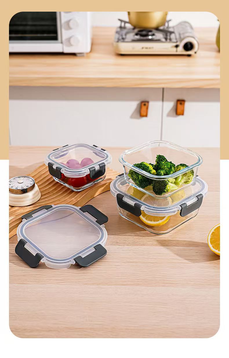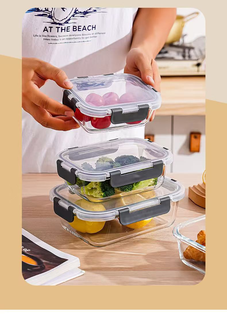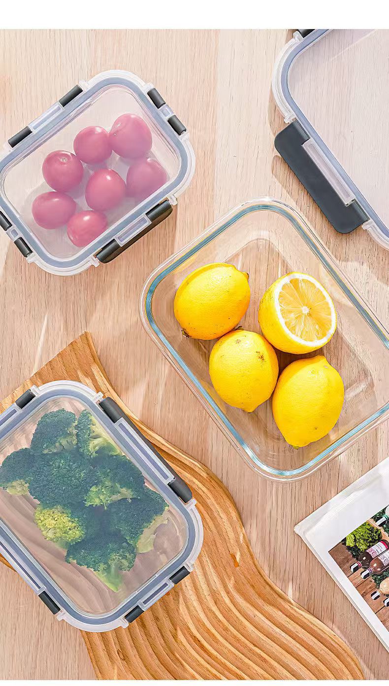 Tuppers rectangulares de vidrio borosilicato con tapa, grado alimenticio