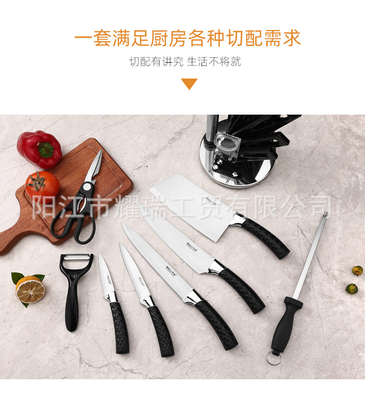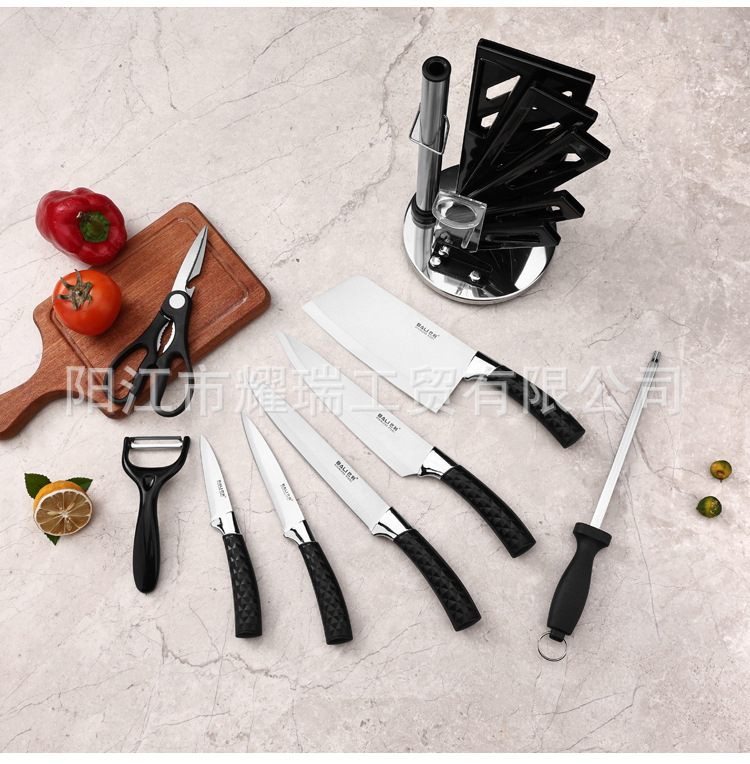 Spot patrón de diamante mango asiento giratorio juego de nueve piezas cuchillo de cocina juego completo juego de cuchillos de cocina para el hogar de acero inoxidable