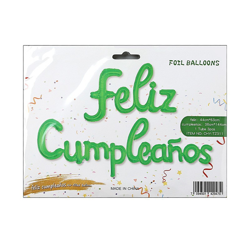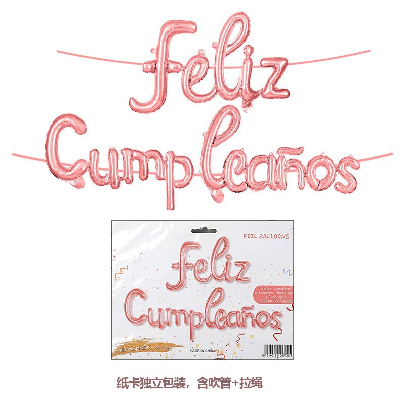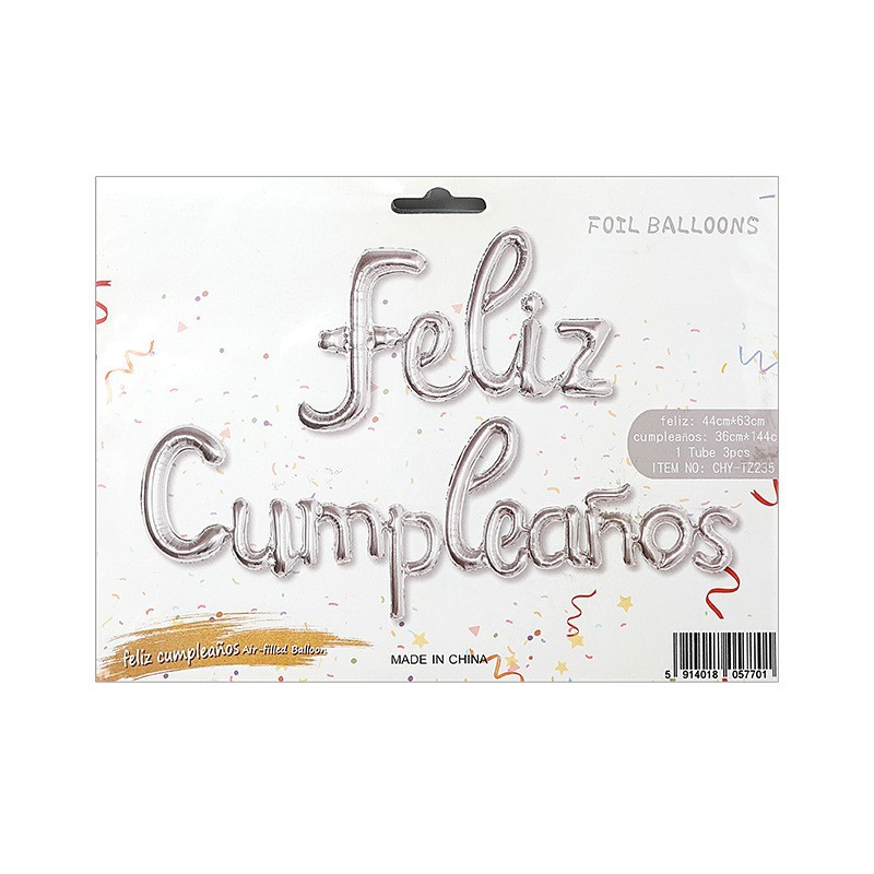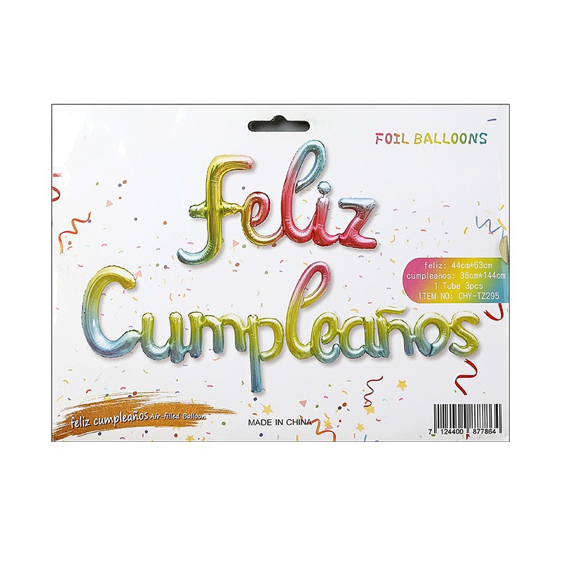Globo metálico "Feliz Cumpleaños" en idioma occidental | Decoración de fiesta con película de aluminio | Venta al por mayor