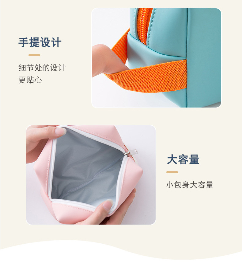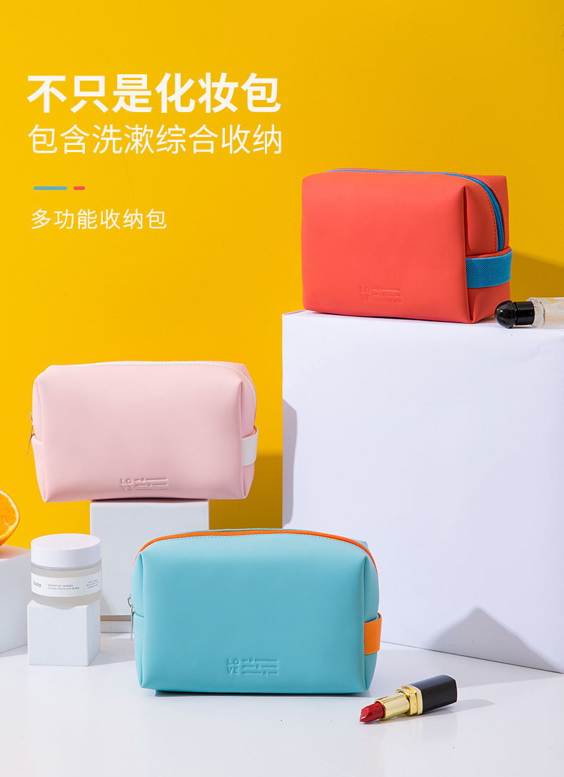 Versión coreana de la bolsa cosmética de corazón de corazón estilo ins simple y de alto valor PU bolsa de lavado portátil de color Macron impermeable de gran capacidad