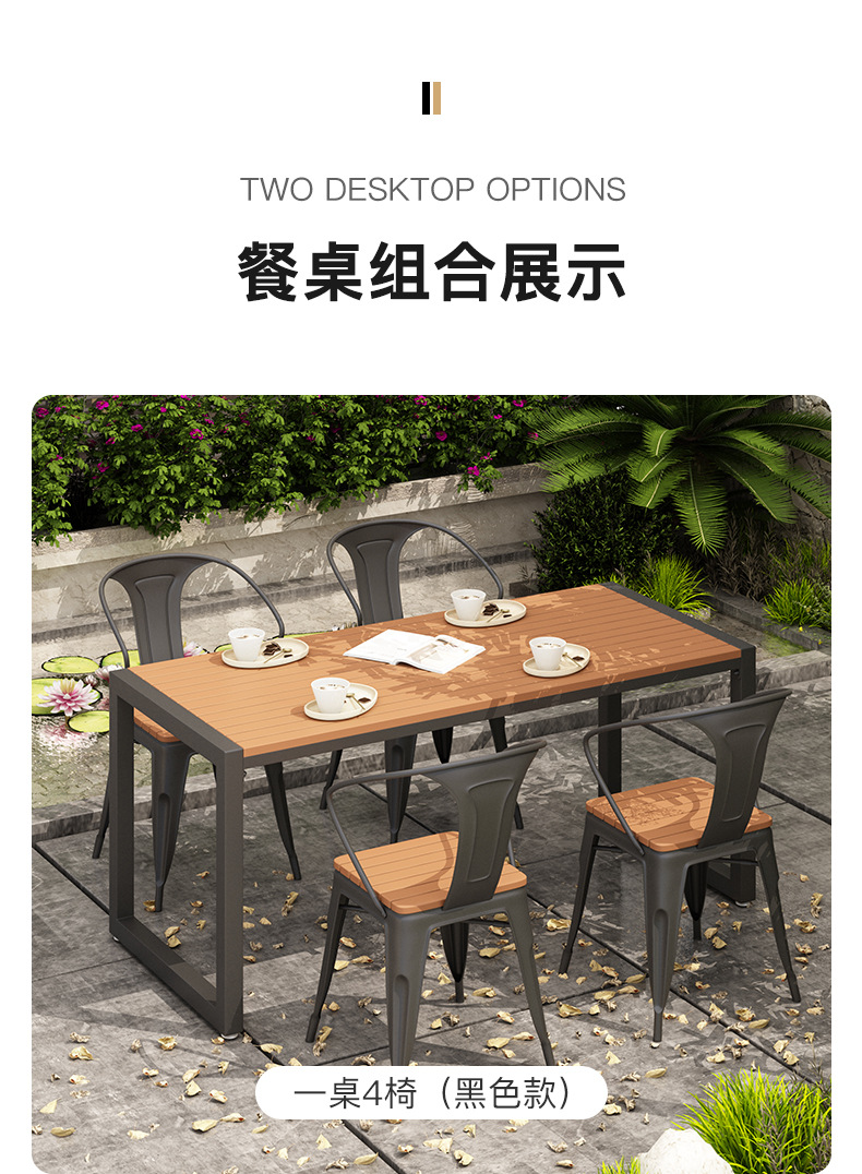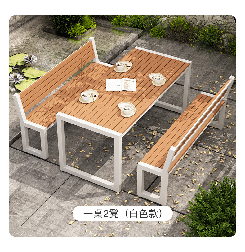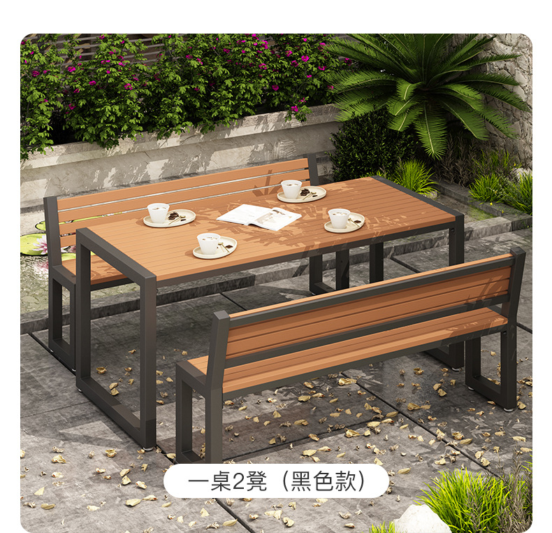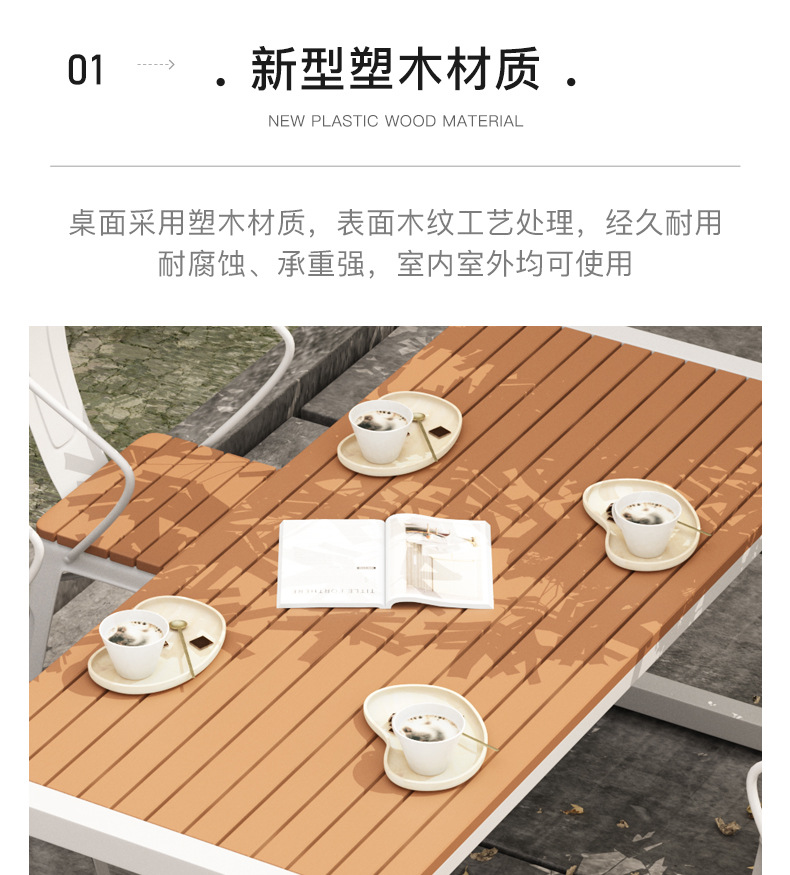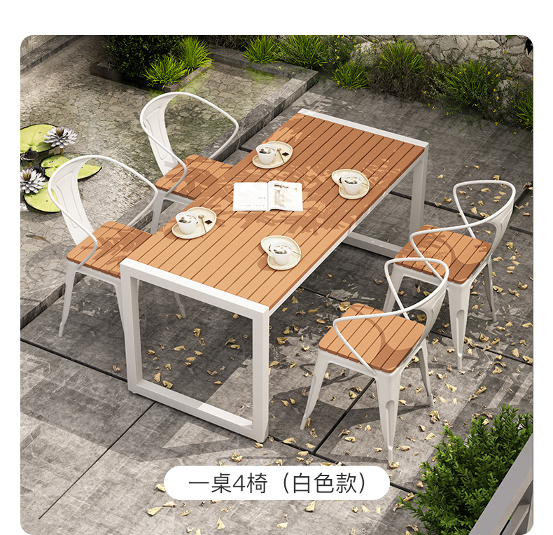 Patio al aire libre mesa y silla al aire libre combinación terraza al aire libre balcón impermeable protección solar parque ocio hierro forjado mesa larga de madera plástica