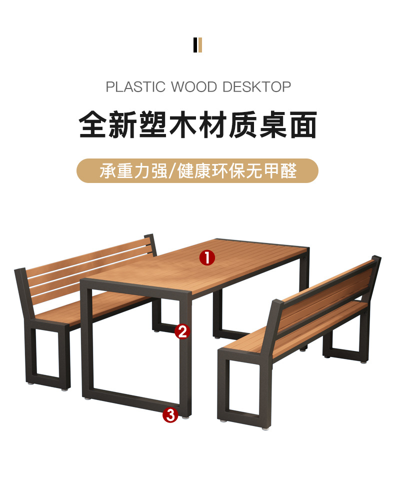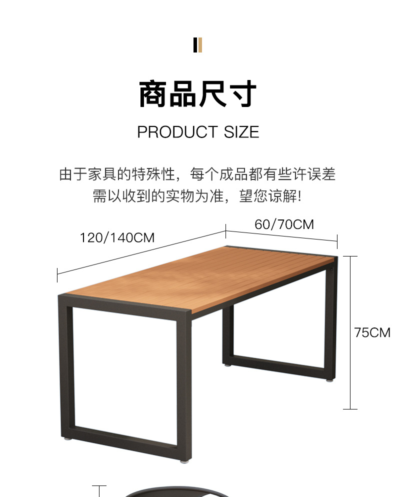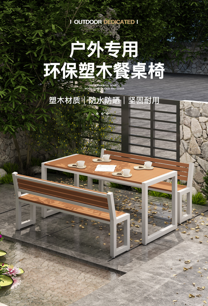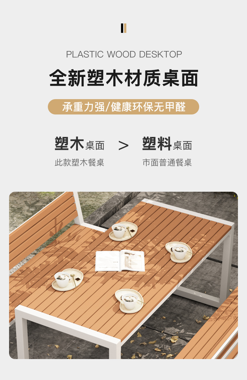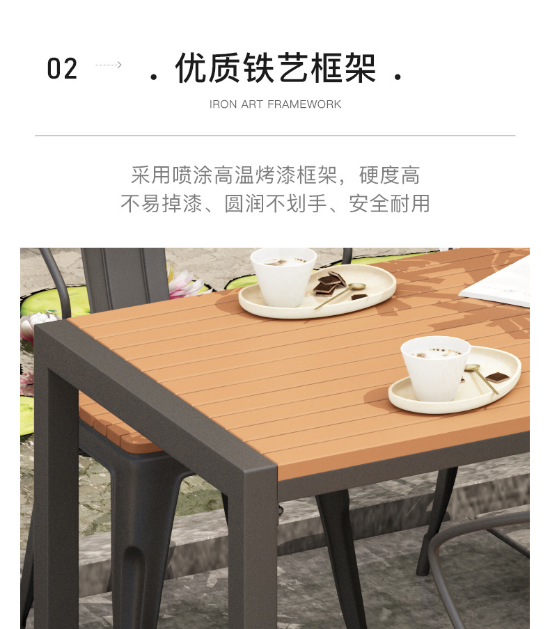 Patio al aire libre mesa y silla al aire libre combinación terraza al aire libre balcón impermeable protección solar parque ocio hierro forjado mesa larga de madera plástica
