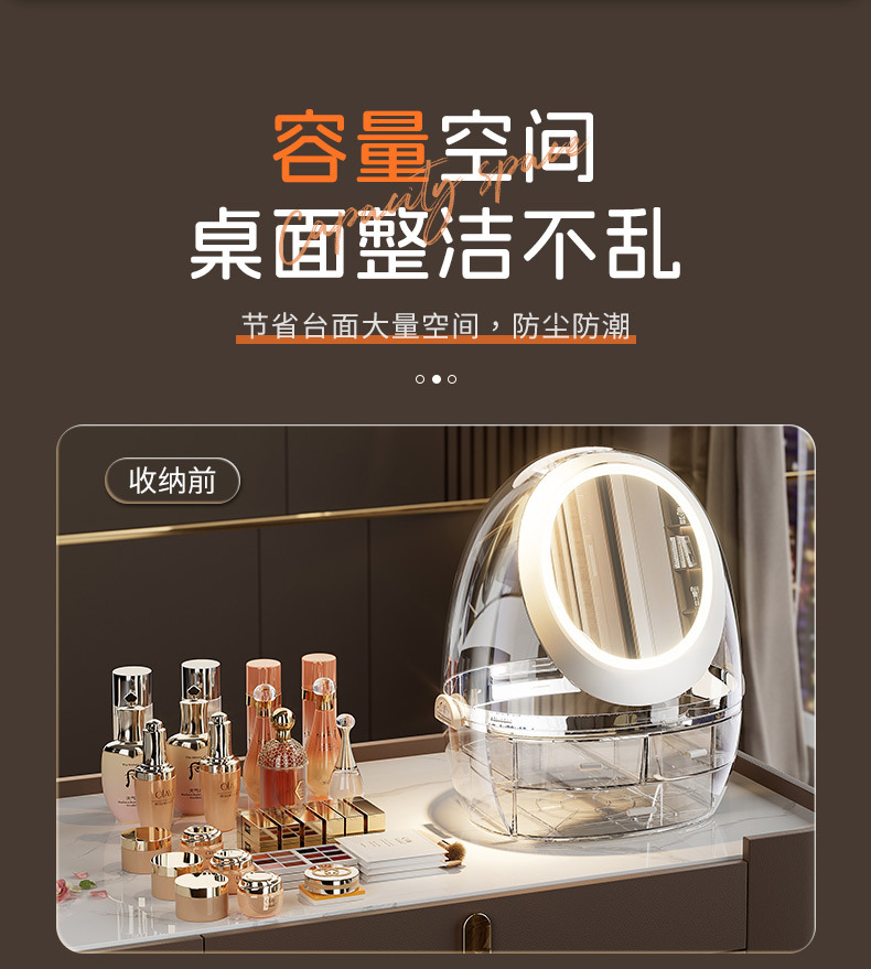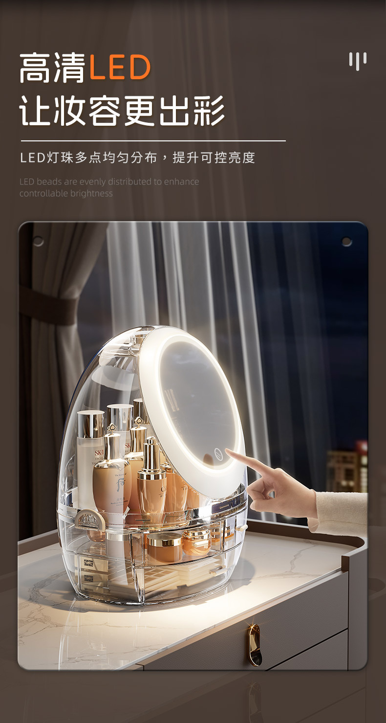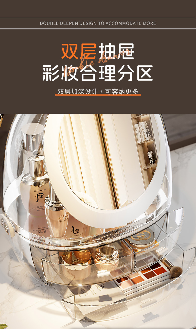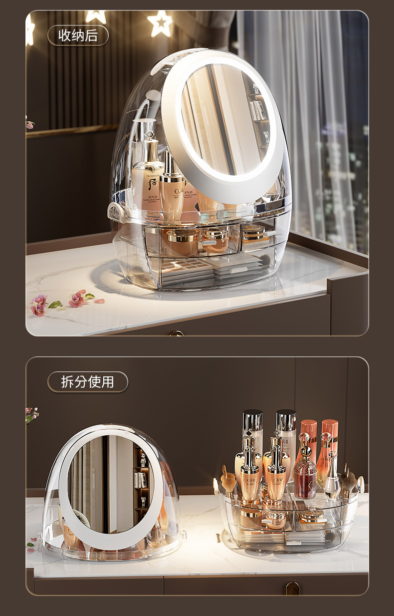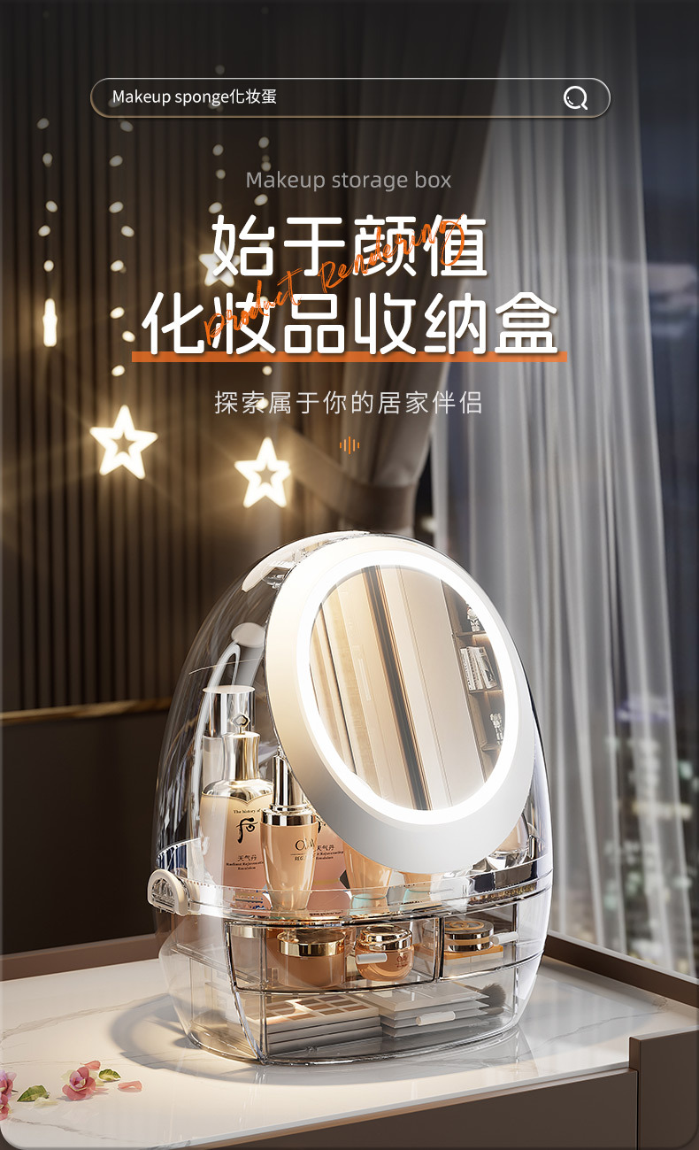 Caja organizadora de cosméticos transparente - Con luz, diseño de cajón antipolvo,神器 para dormitorio y escritorio, nuevo modelo