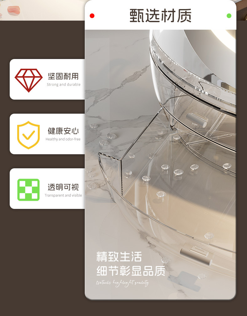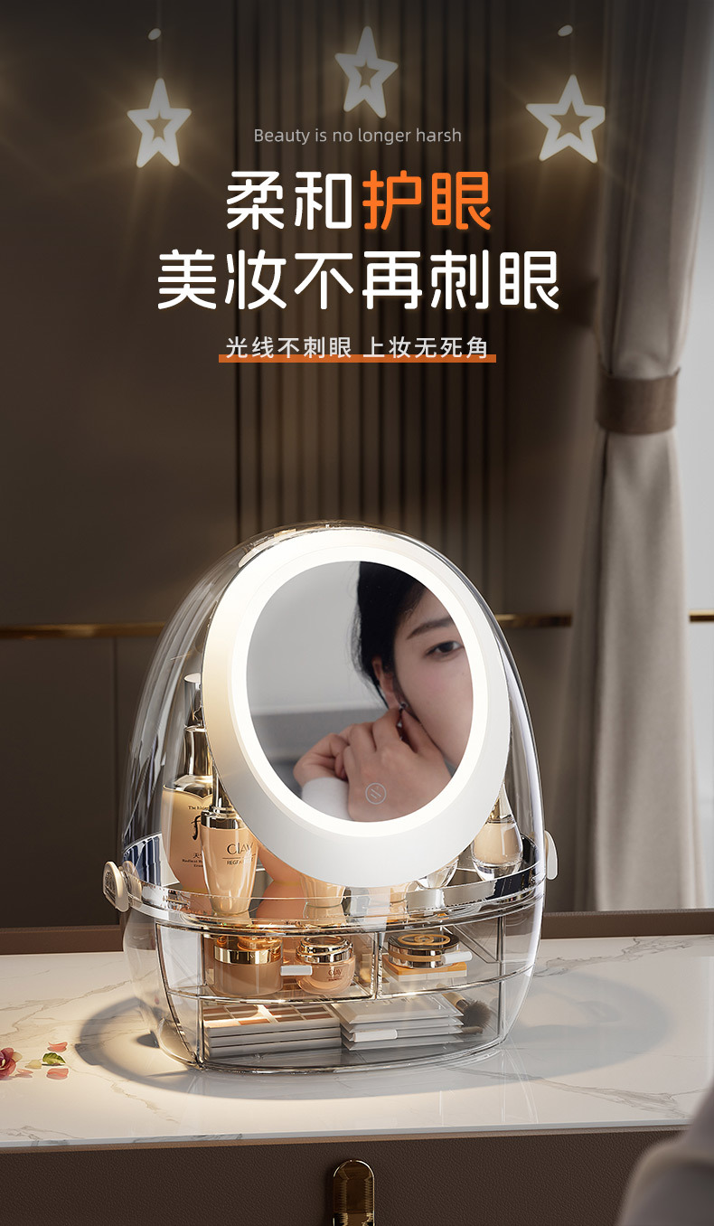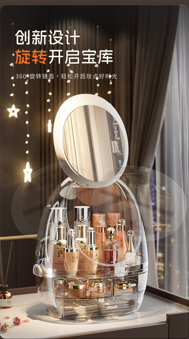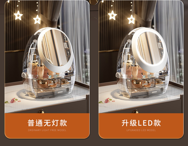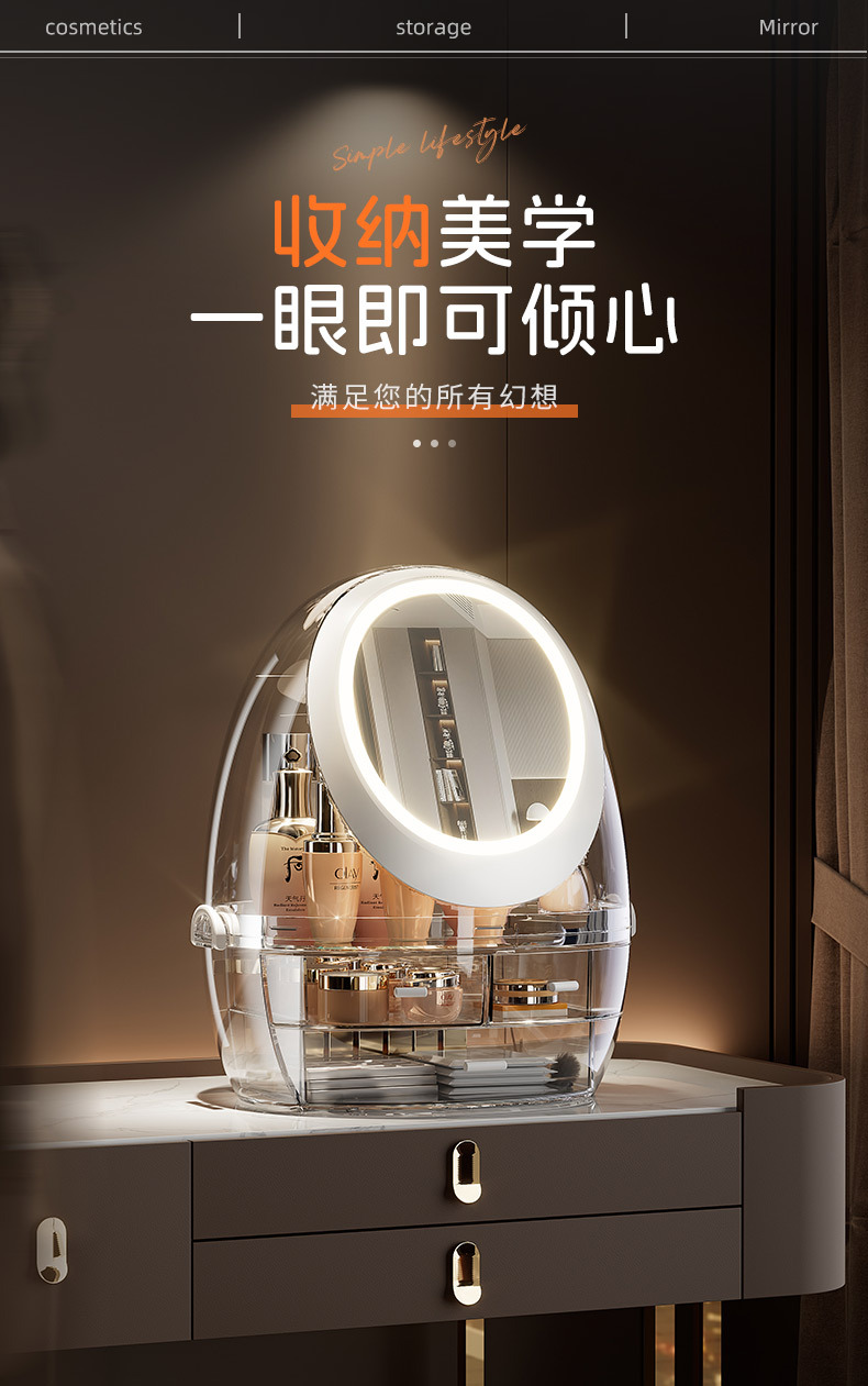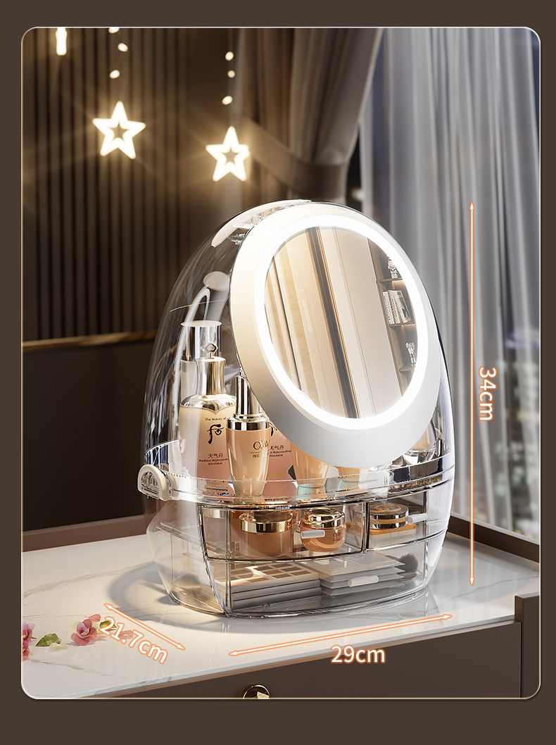 Caja organizadora de cosméticos transparente - Con luz, diseño de cajón antipolvo,神器 para dormitorio y escritorio, nuevo modelo