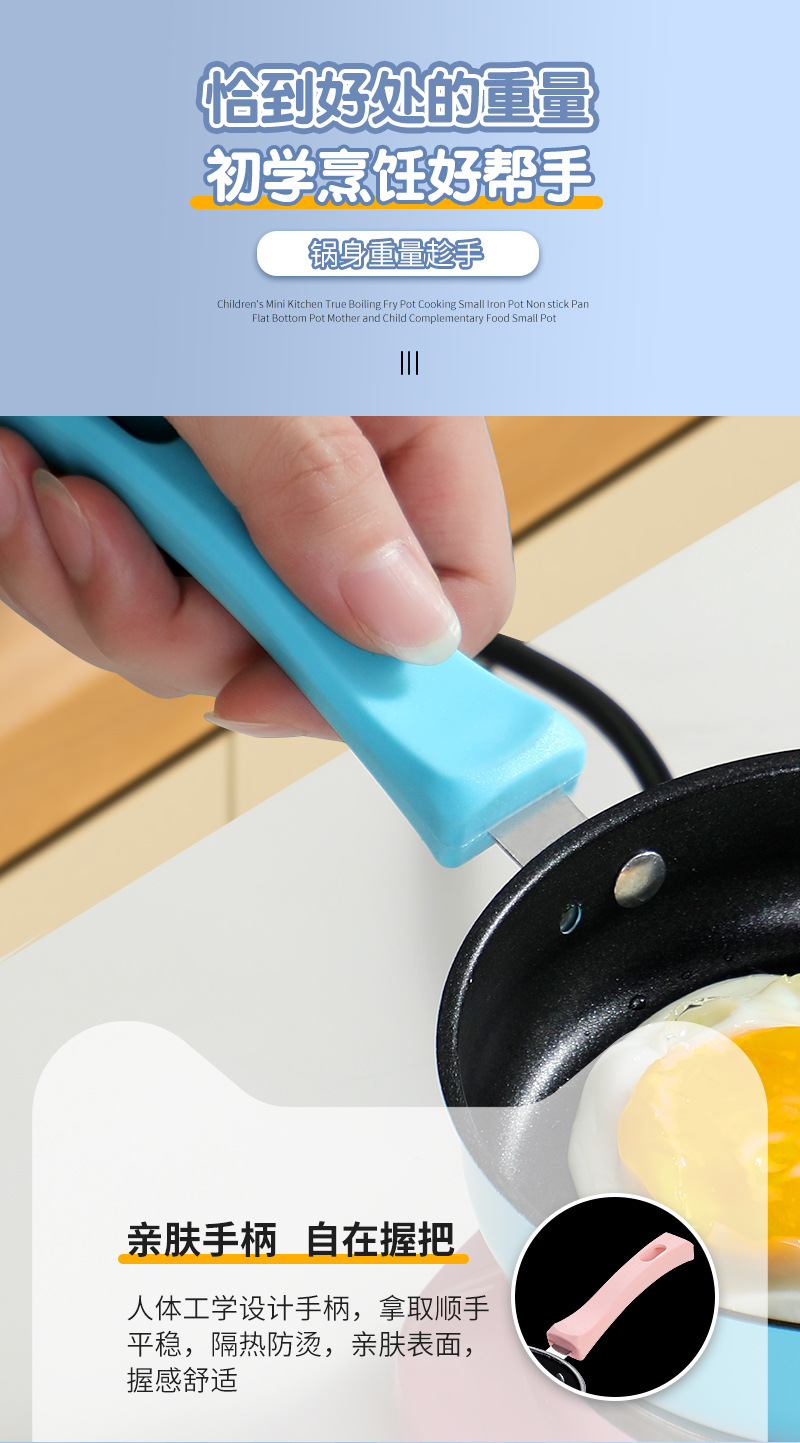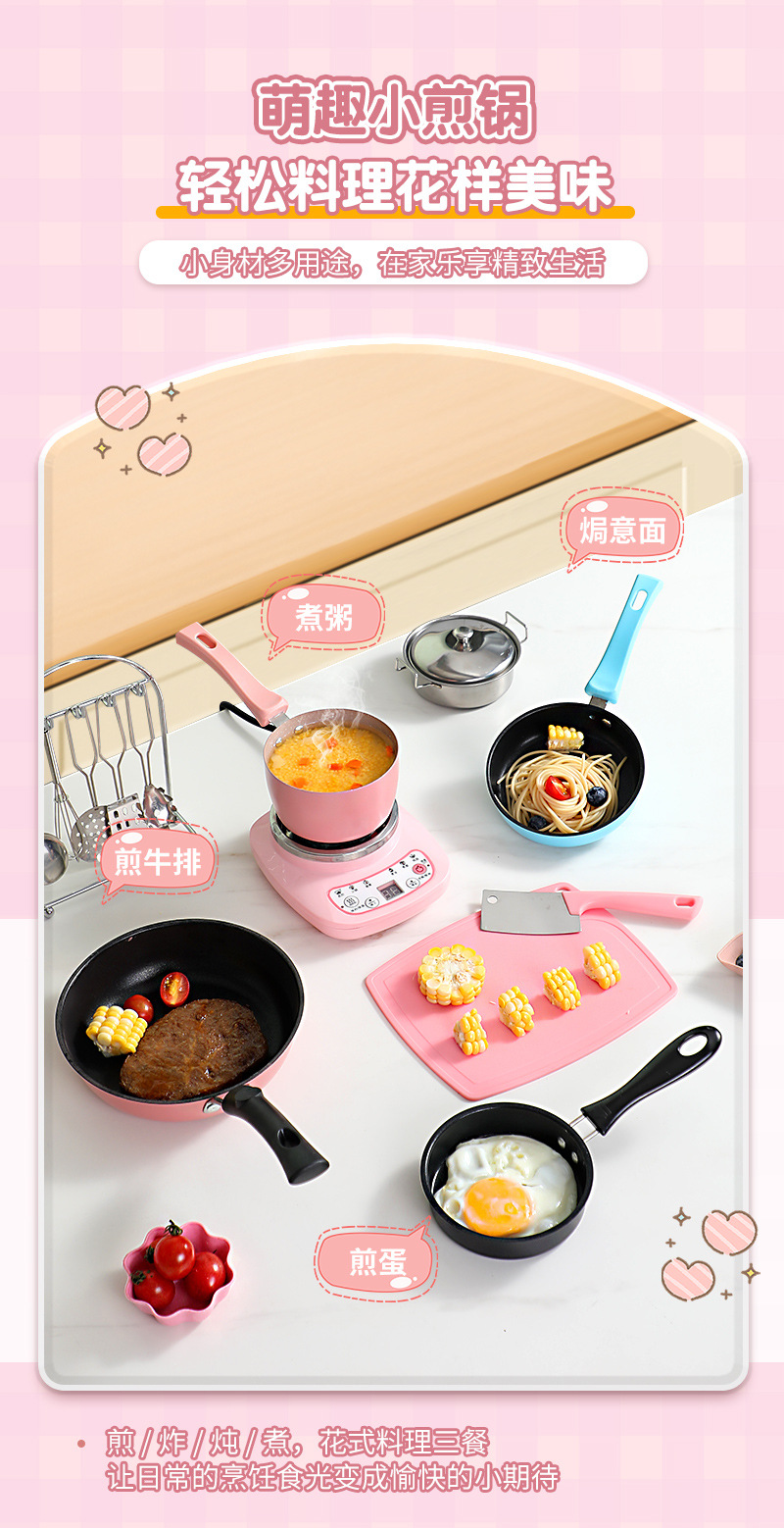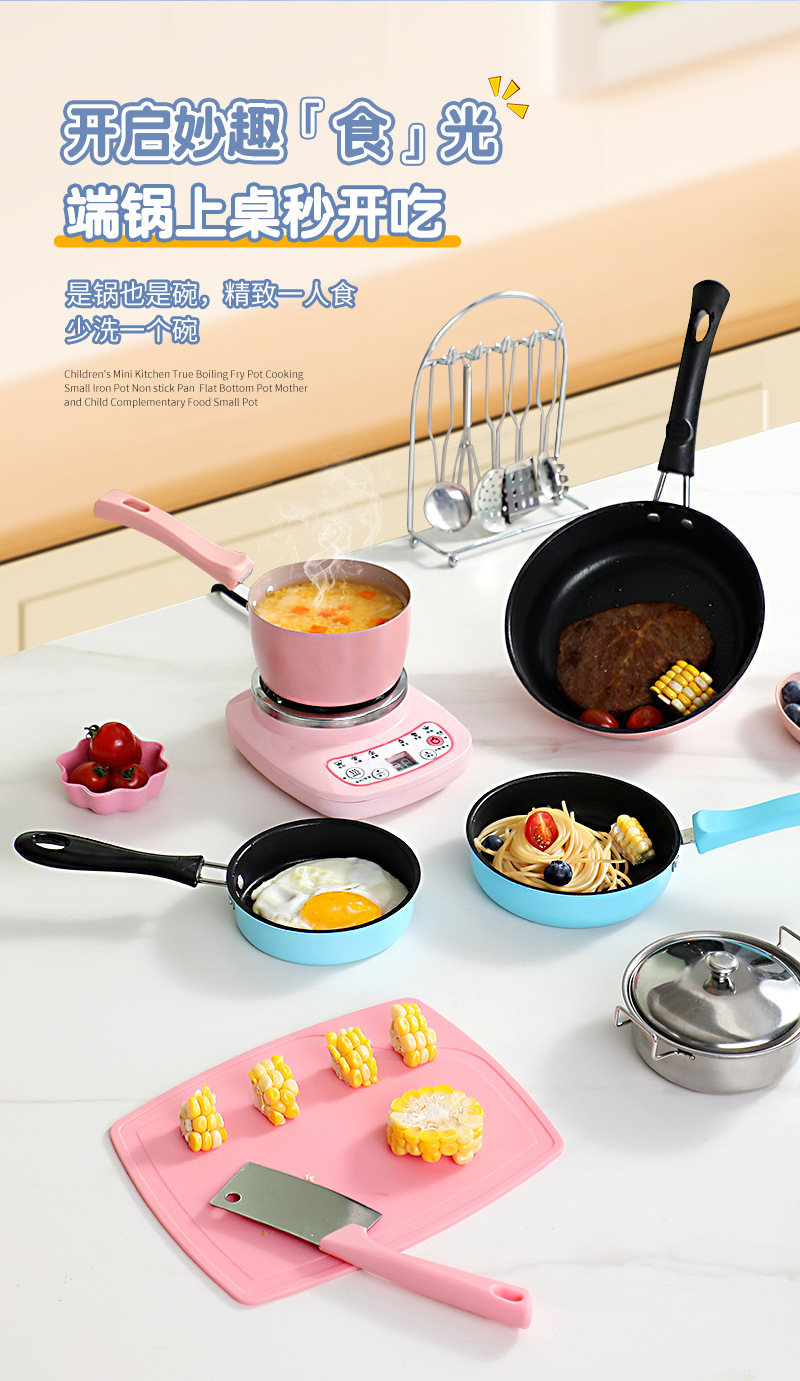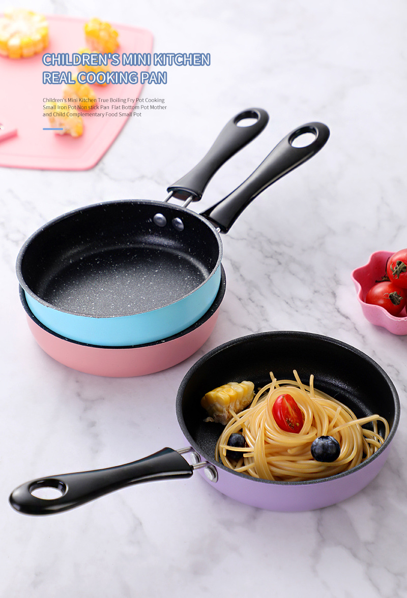 ◍ Mini sartén sartén antiadherente sartén sartén de huevo frito mini cocina juego de comida realmente cocina olla pequeña para niños olla pequeña rosa