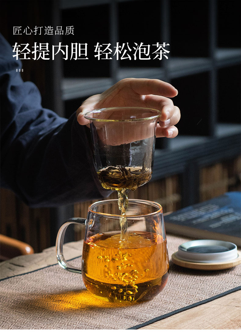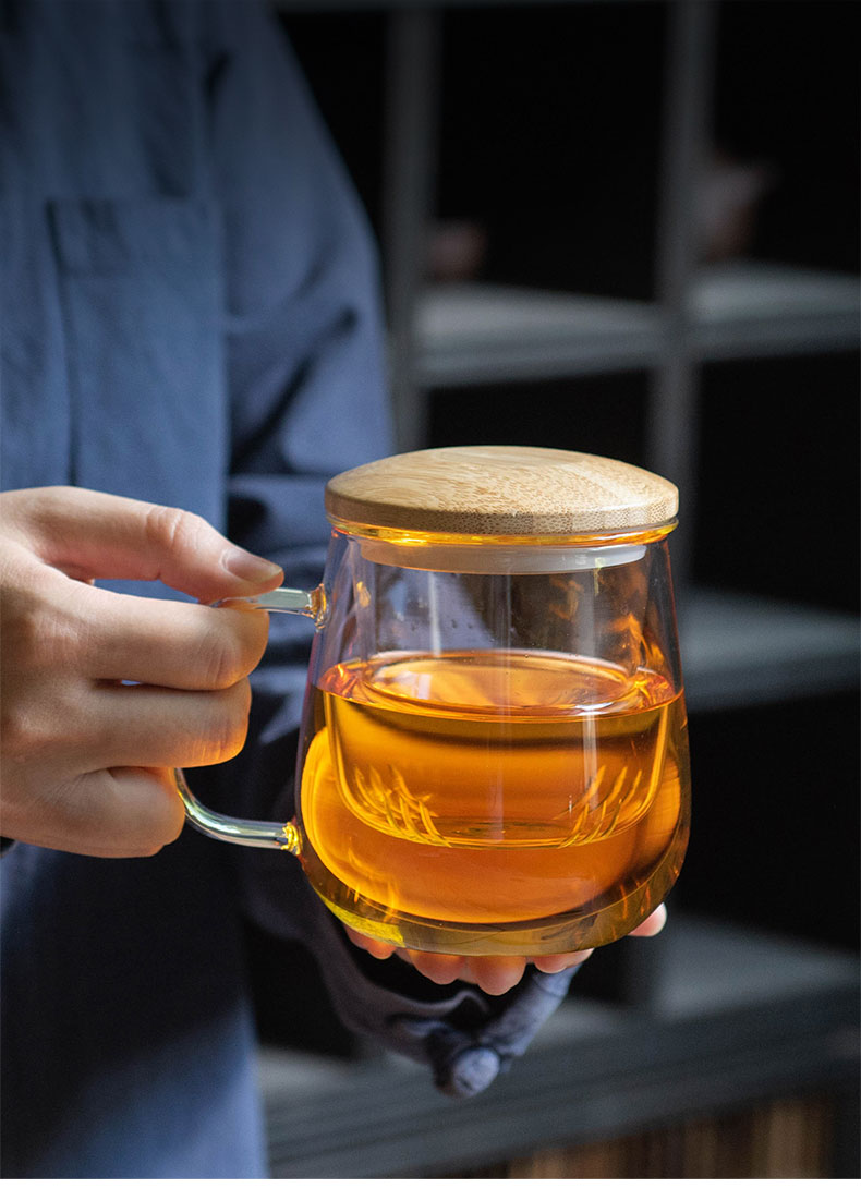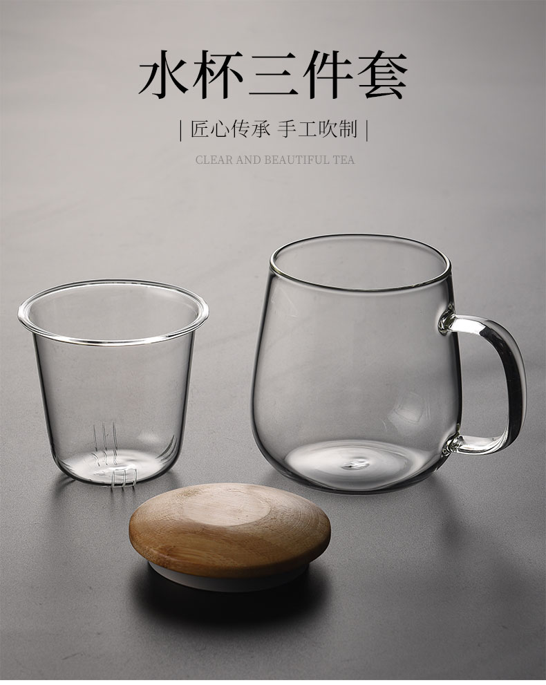 ✅Taza de vidrio gruesa de tres piezas, té resistente al calor, taza de té separada, taza de agua, hogar personal