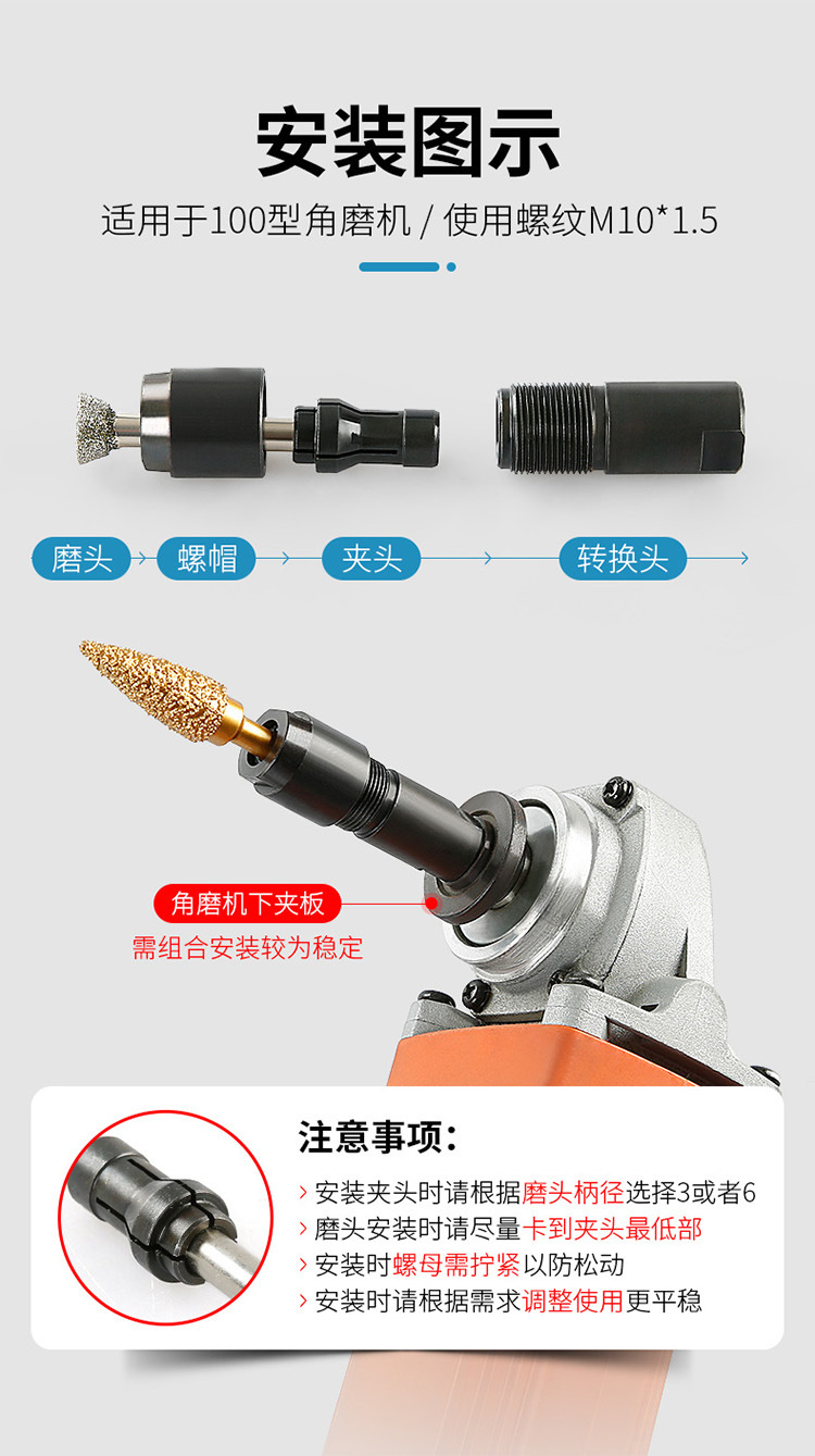Amoladora angular Modificación de rectificado directo Cabezal de conversión Máquina de rectificado Variante de amoladora eléctrica Cabezal de rectificado de piedra Herramientas de grabado Accesorios Daquan