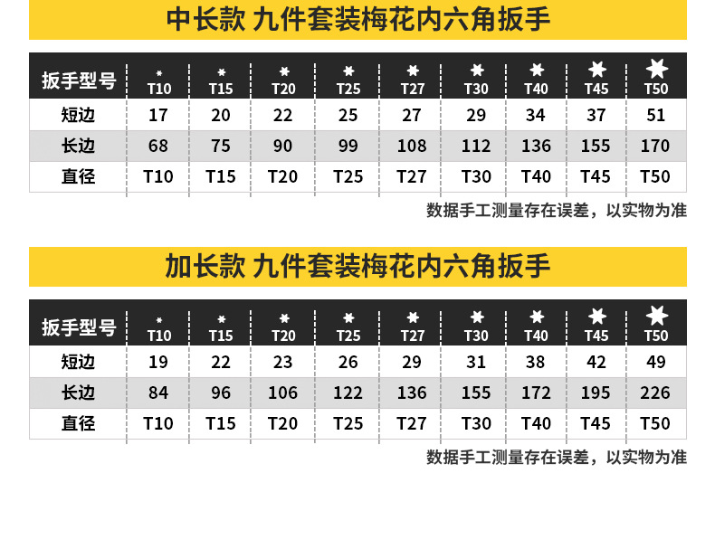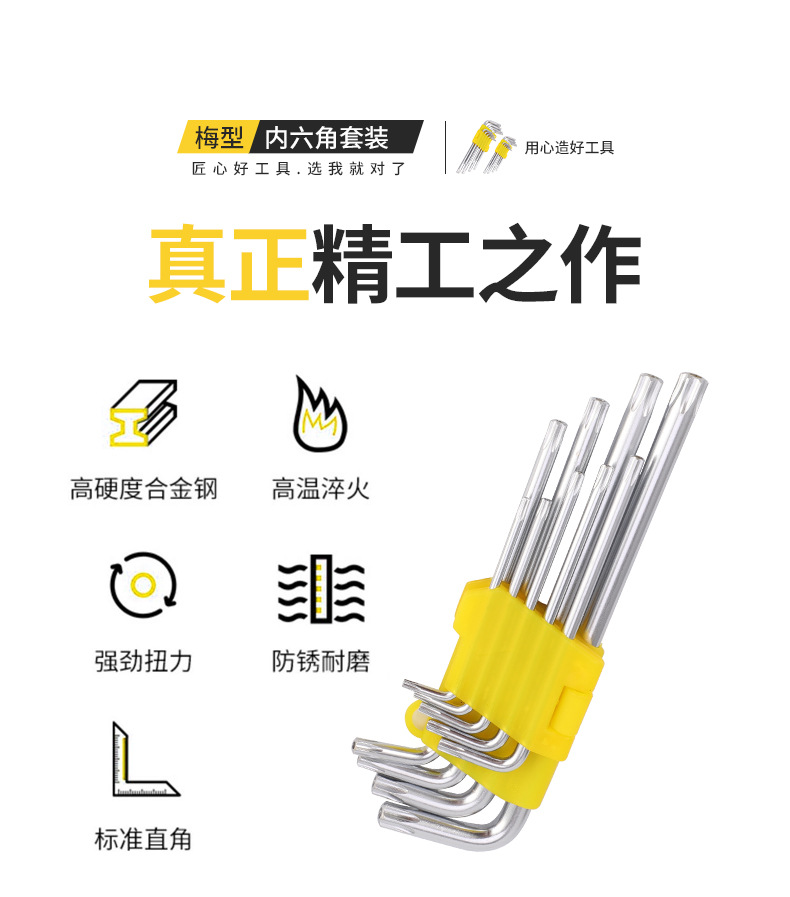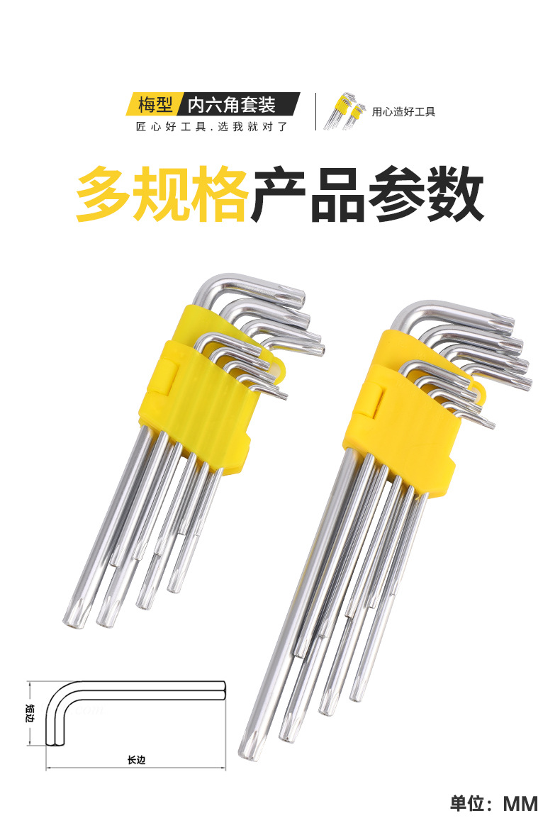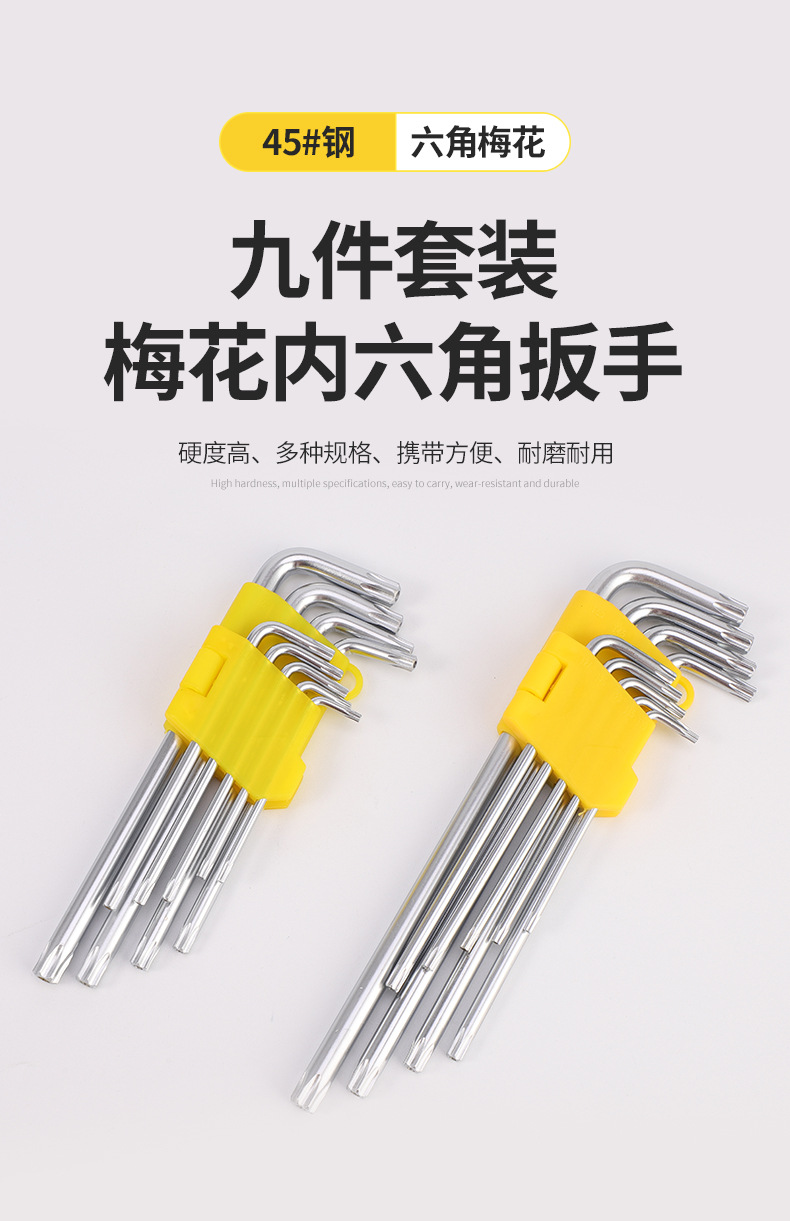 | Modelo de especificación | Llave hexagonal de flor de ciruelo de nueve piezas de longitud media,Llave hexagonal Plum Blossom de nueve piezas |