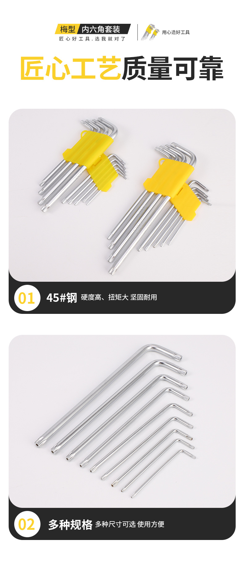 Juego de llaves hexagonales de flor de ciruelo al por mayor de fábrica, herramienta de llave hexagonal automática, llave torx extra larga